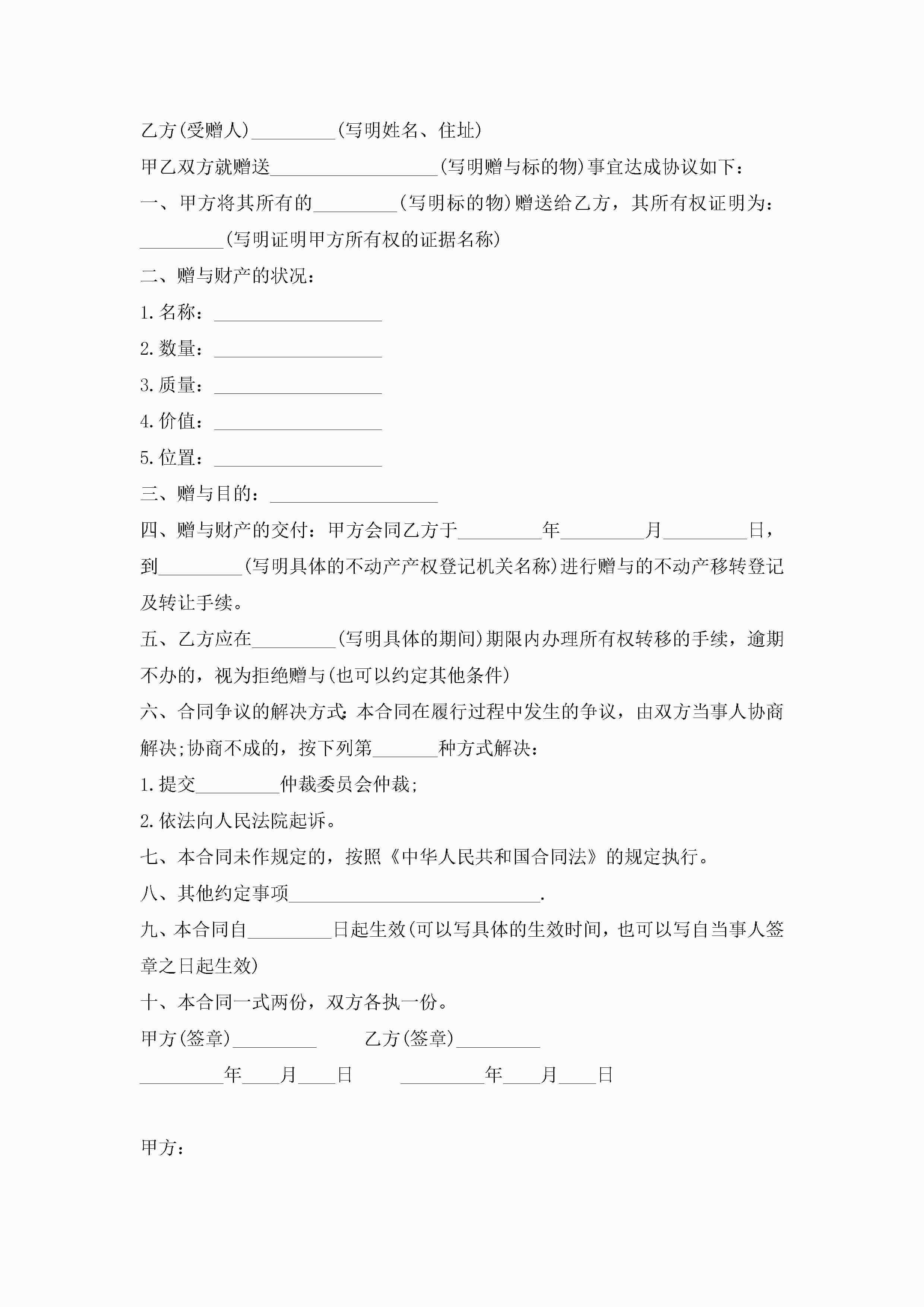 实用的赠与合同模板5篇jugei3月23日 01:34发布关注251 实用的赠与合同模板5篇此内容为付费资源,请付费后查看¥10.9 单篇文档限时特惠¥15个人会员开通企业会员开通立即下载无需登陆!可直接快捷下载单个模板付费资源© 版权声明THE ENDWord模板# 实用文档# 实用模板# 合同模板# 赠与合同 如有问题,可点击最底部“联系我们”联系客服 分享QQ空间微博QQ好友海报分享复制链接收藏