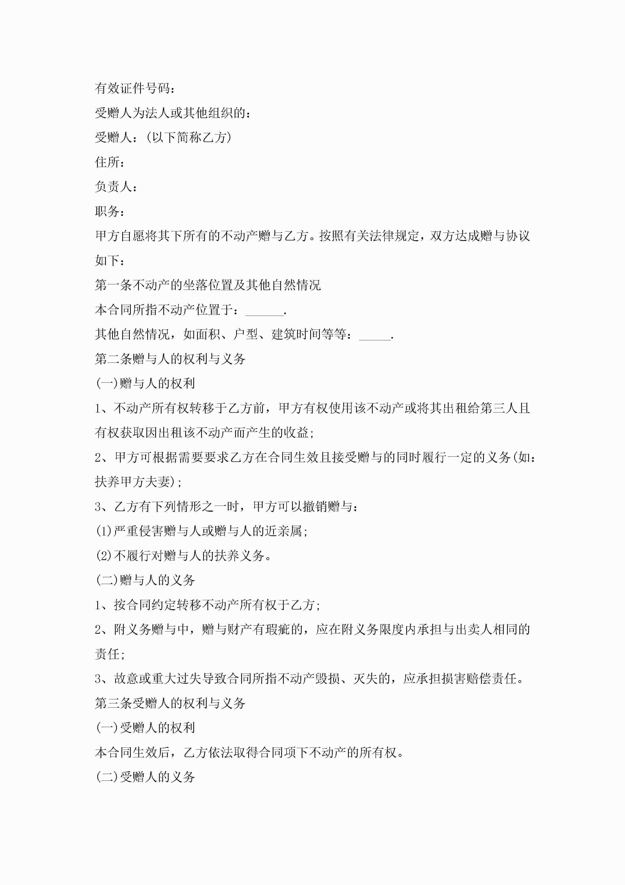 赠与合同格式模板5篇jugei3月23日 01:34发布关注217 赠与合同格式模板5篇此内容为付费资源,请付费后查看¥10.9 单篇文档限时特惠¥15个人会员开通企业会员开通立即下载无需登陆!可直接快捷下载单个模板付费资源© 版权声明THE ENDWord模板# 实用文档# 实用模板# 合同模板# 赠与合同 如有问题,可点击最底部“联系我们”联系客服 分享QQ空间微博QQ好友海报分享复制链接收藏