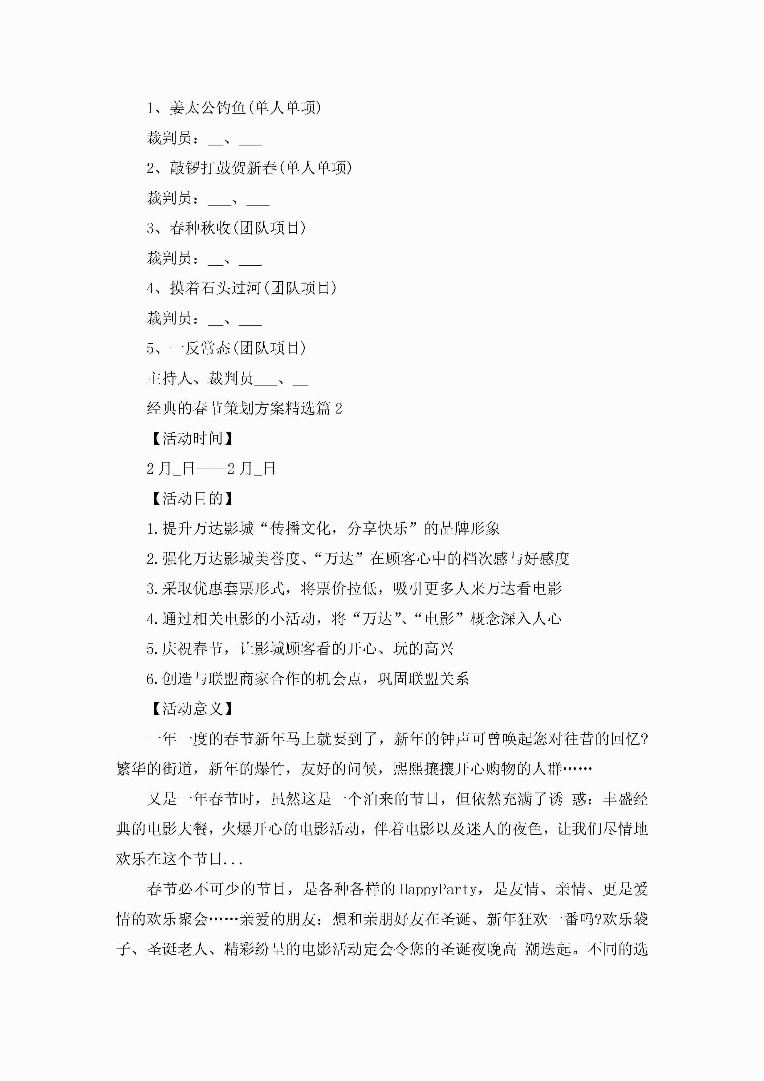 经典的春节策划方案范文5篇jugei3月23日 01:34发布关注417 经典的春节策划方案范文5篇此内容为付费资源,请付费后查看¥10.9 单篇文档限时特惠¥15个人会员开通企业会员开通立即下载无需登陆!可直接快捷下载单个模板付费资源© 版权声明THE ENDWord模板# 实用文档# 策划书# 策划方案# 经典的春节策划方案 如有问题,可点击最底部“联系我们”联系客服 分享QQ空间微博QQ好友海报分享复制链接收藏