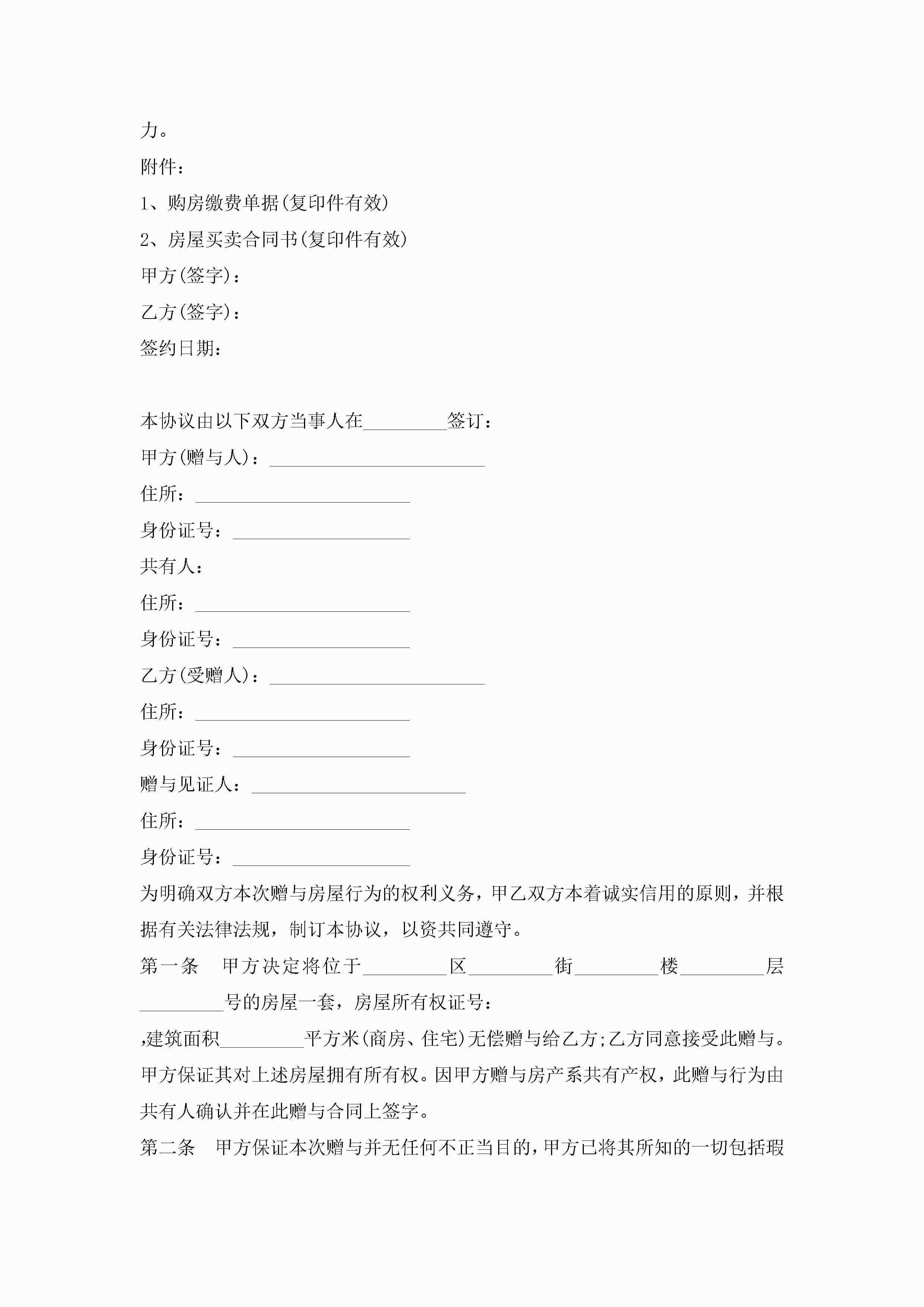 房屋无偿赠与合同范本模板3篇jugei3月23日 01:34发布关注259 房屋无偿赠与合同范本模板3篇此内容为付费资源,请付费后查看¥10.9 单篇文档限时特惠¥15个人会员开通企业会员开通立即下载无需登陆!可直接快捷下载单个模板付费资源© 版权声明THE ENDWord模板# 实用文档# 实用模板# 合同模板# 赠与合同 如有问题,可点击最底部“联系我们”联系客服 分享QQ空间微博QQ好友海报分享复制链接收藏