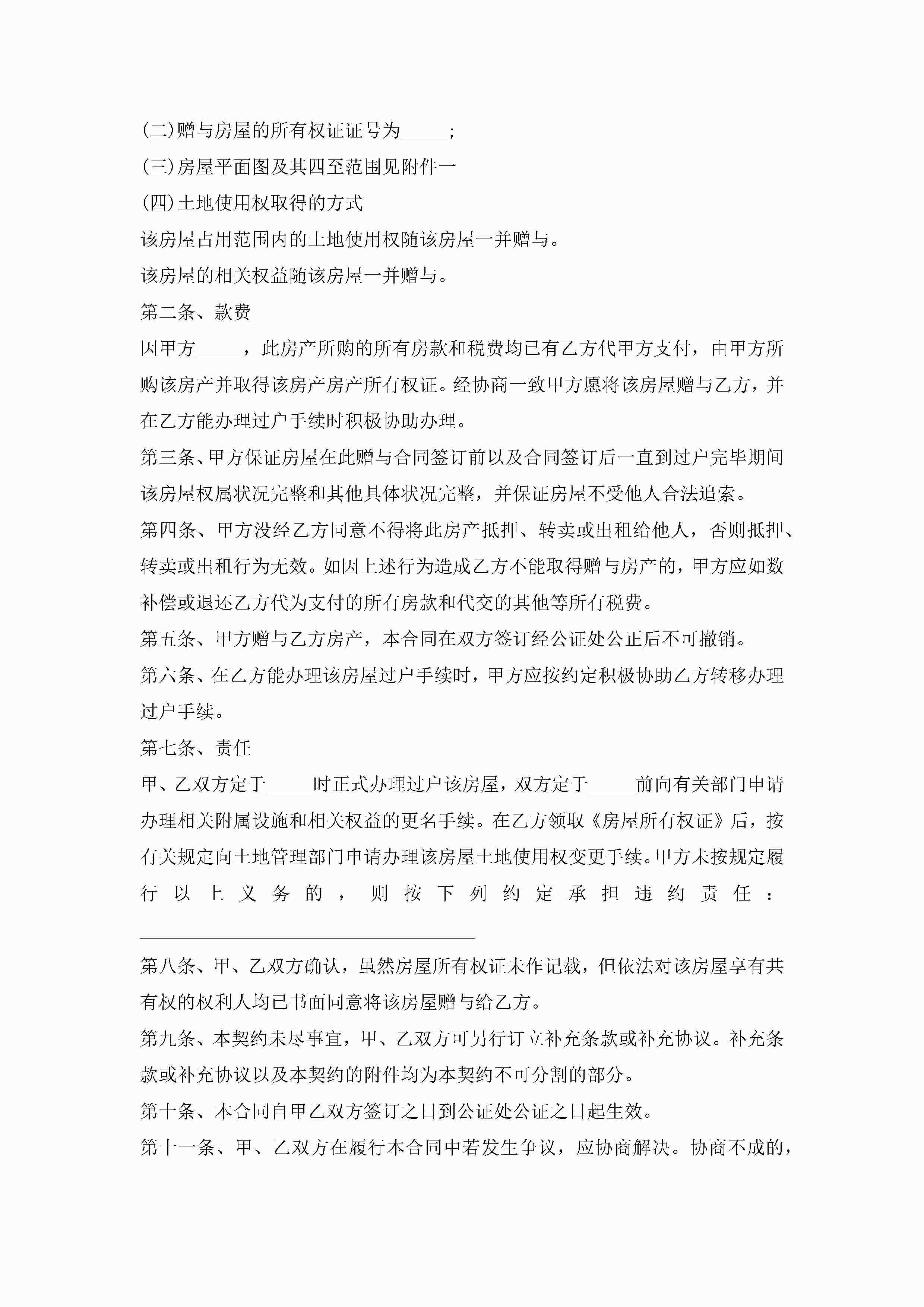 年房屋赠与合同范本格式模板jugei3月23日 01:34发布关注251 年房屋赠与合同范本格式模板此内容为付费资源,请付费后查看¥10.9 单篇文档限时特惠¥15个人会员开通企业会员开通立即下载无需登陆!可直接快捷下载单个模板付费资源© 版权声明THE ENDWord模板# 实用文档# 实用模板# 合同模板# 赠与合同 如有问题,可点击最底部“联系我们”联系客服 分享QQ空间微博QQ好友海报分享复制链接收藏
