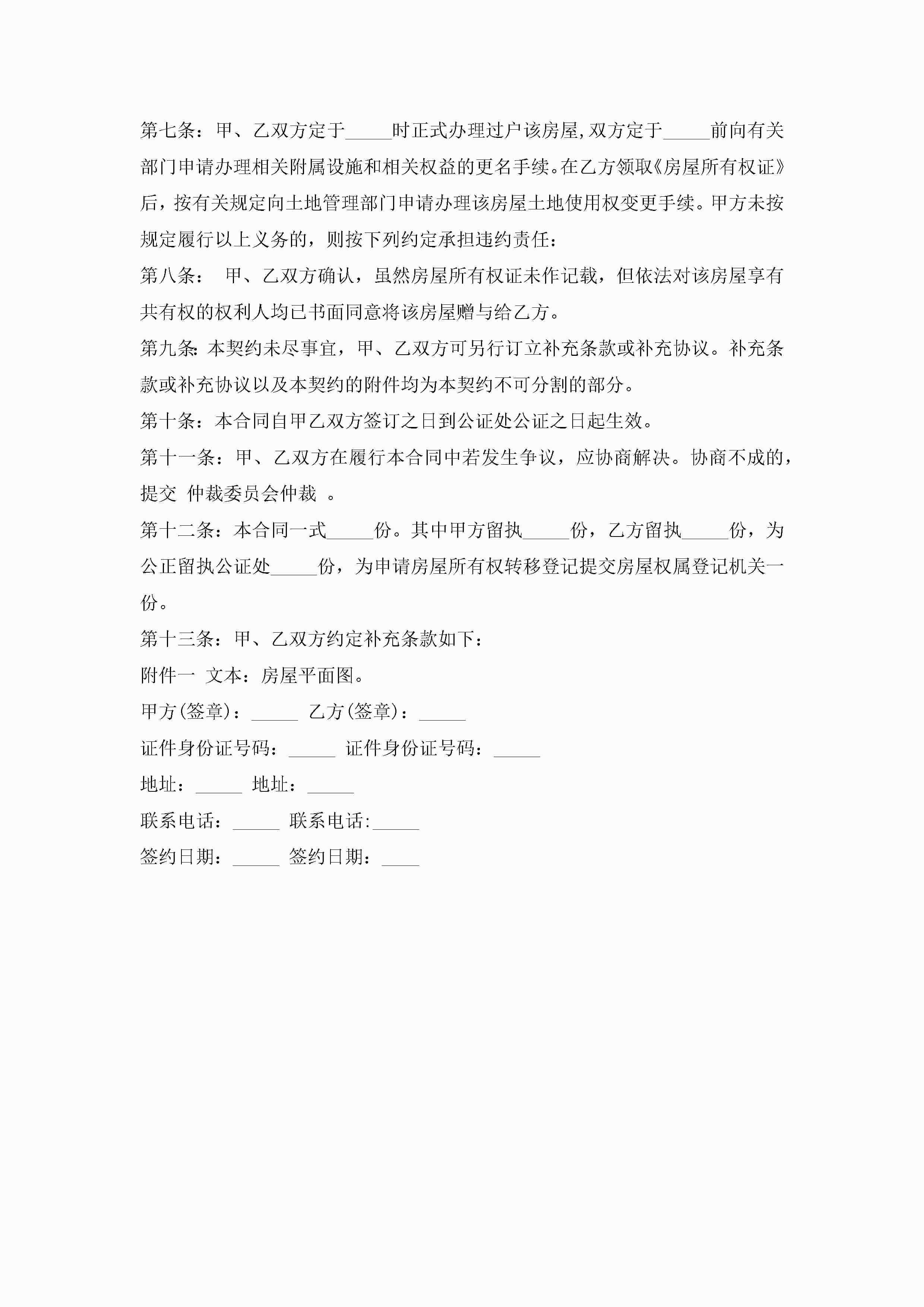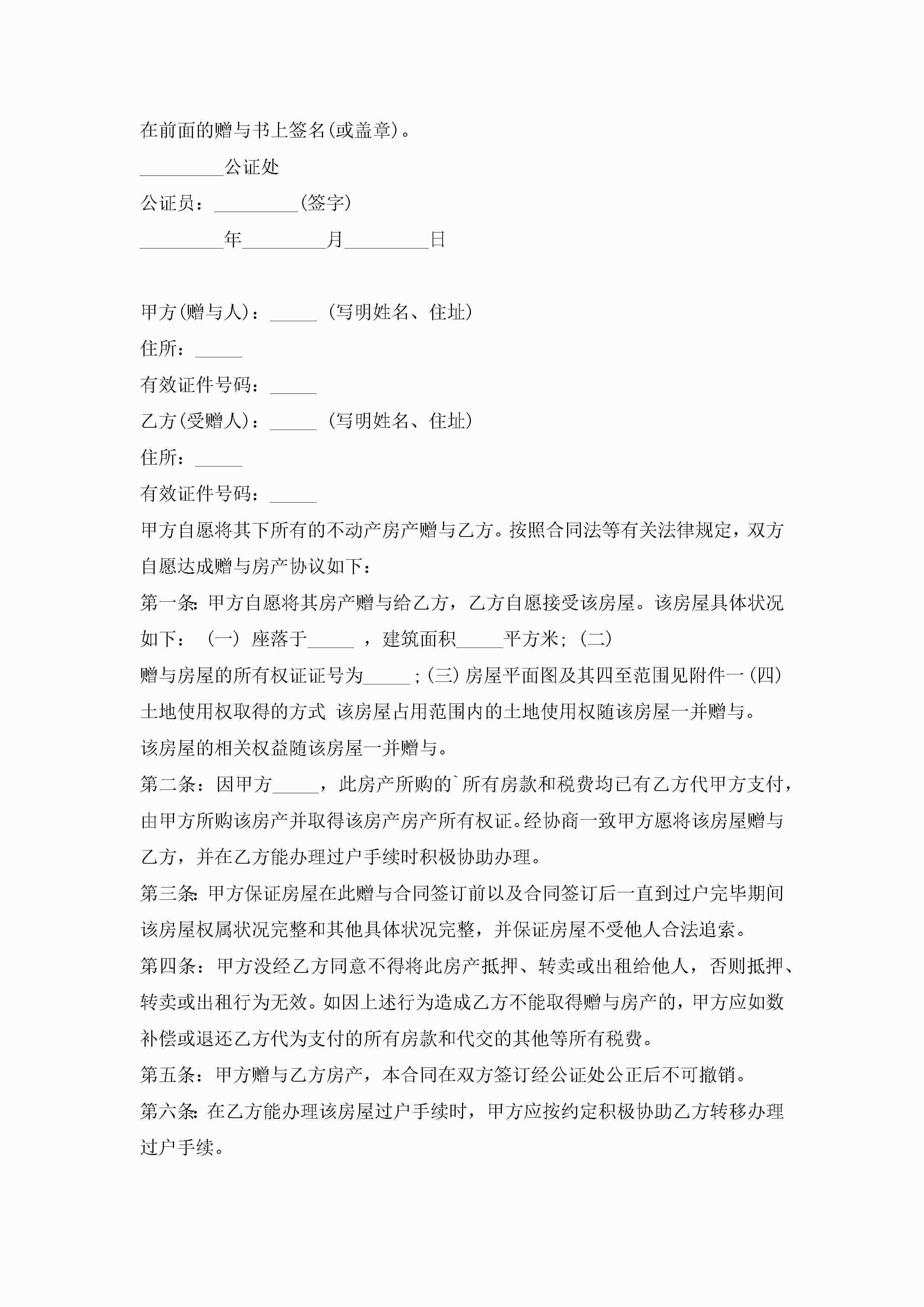 房屋的赠与合同协议模板jugei3月23日 01:34发布关注249 房屋的赠与合同协议模板此内容为付费资源,请付费后查看¥10.9 单篇文档限时特惠¥15个人会员开通企业会员开通立即下载无需登陆!可直接快捷下载单个模板付费资源© 版权声明THE ENDWord模板# 实用文档# 实用模板# 合同模板# 赠与合同 如有问题,可点击最底部“联系我们”联系客服 分享QQ空间微博QQ好友海报分享复制链接收藏