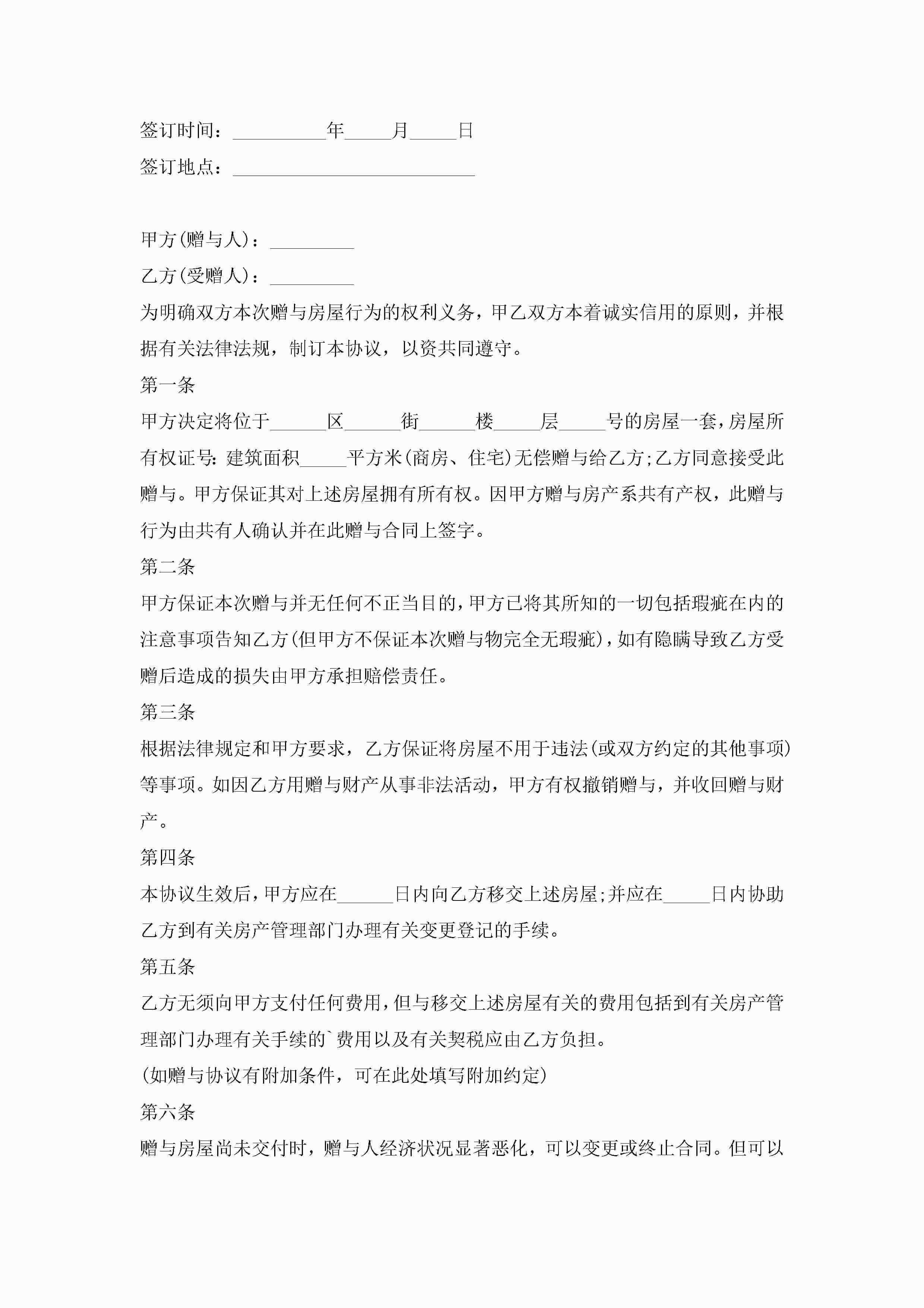 赠与房产合同范本模板范文jugei3月23日 01:34发布关注248 赠与房产合同范本模板范文此内容为付费资源,请付费后查看¥10.9 单篇文档限时特惠¥15个人会员开通企业会员开通立即下载无需登陆!可直接快捷下载单个模板付费资源© 版权声明THE ENDWord模板# 实用文档# 实用模板# 合同模板# 赠与合同 如有问题,可点击最底部“联系我们”联系客服 分享QQ空间微博QQ好友海报分享复制链接收藏