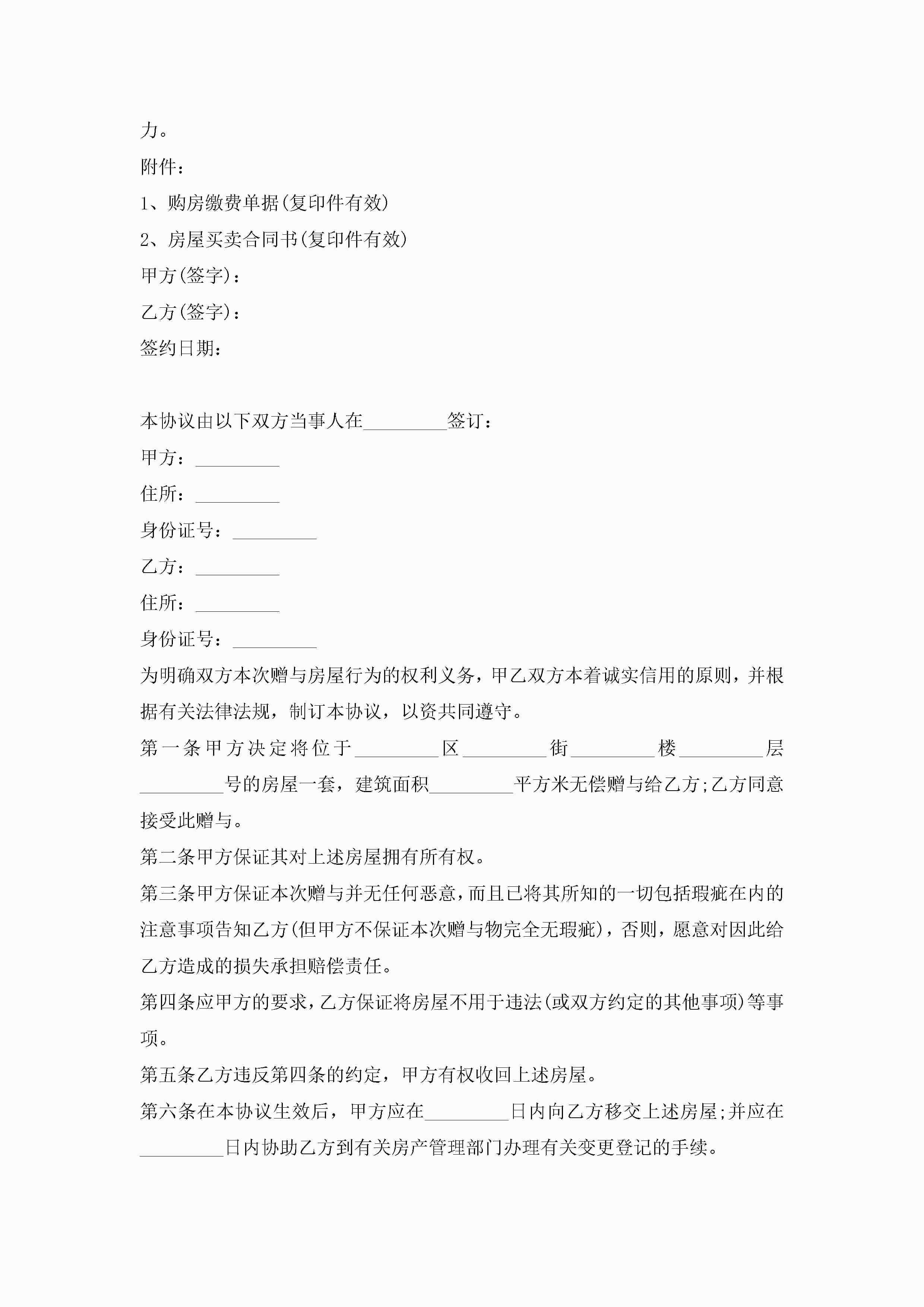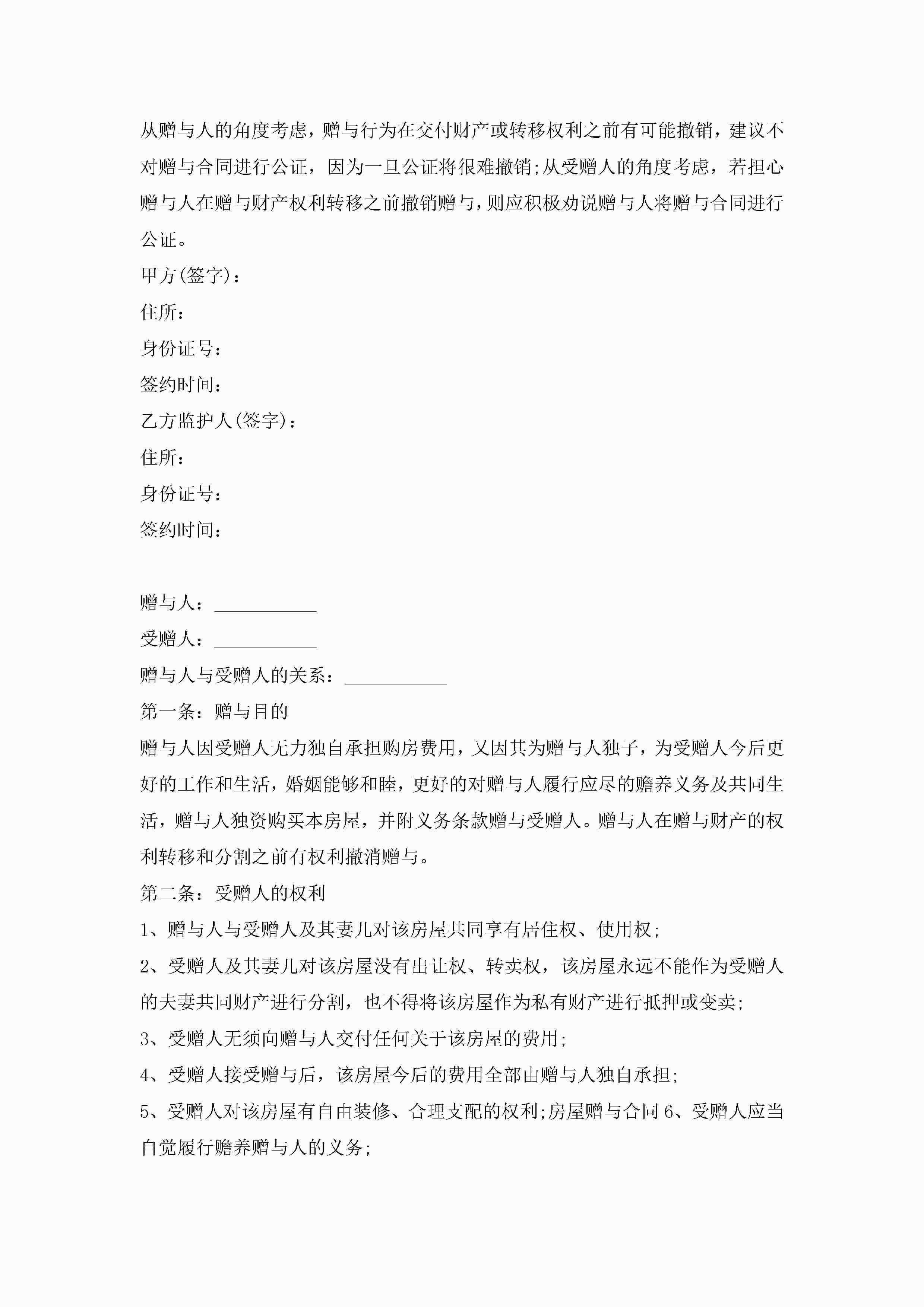 赠与合同通用模板5篇jugei3月23日 01:34发布关注224 赠与合同通用模板5篇此内容为付费资源,请付费后查看¥10.9 单篇文档限时特惠¥15个人会员开通企业会员开通立即下载无需登陆!可直接快捷下载单个模板付费资源© 版权声明THE ENDWord模板# 实用文档# 实用模板# 合同模板# 赠与合同 如有问题,可点击最底部“联系我们”联系客服 分享QQ空间微博QQ好友海报分享复制链接收藏