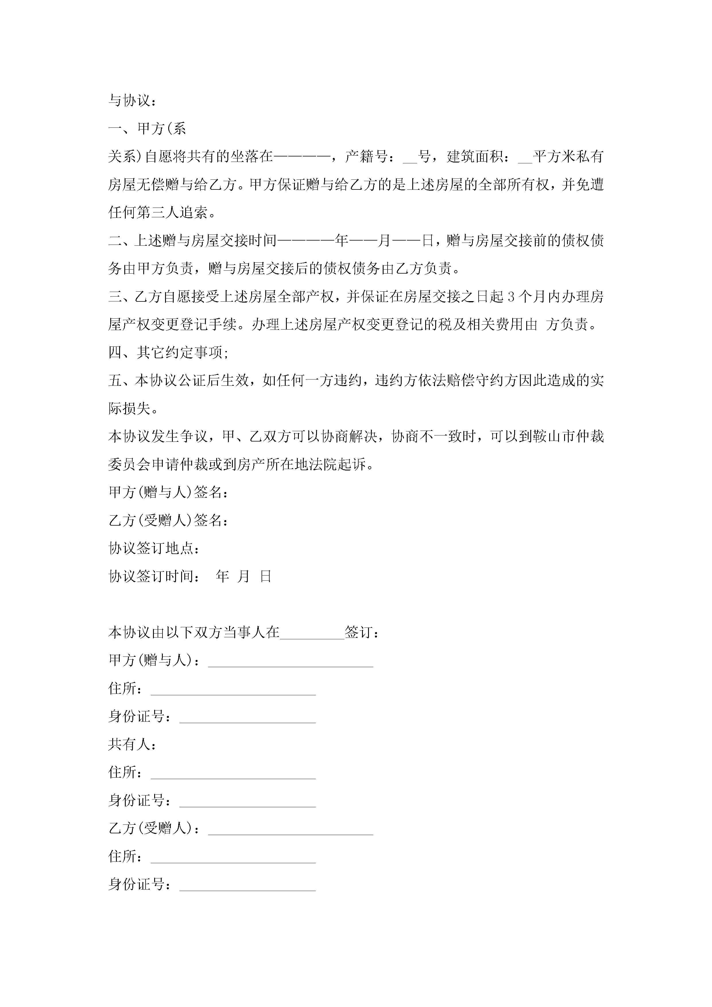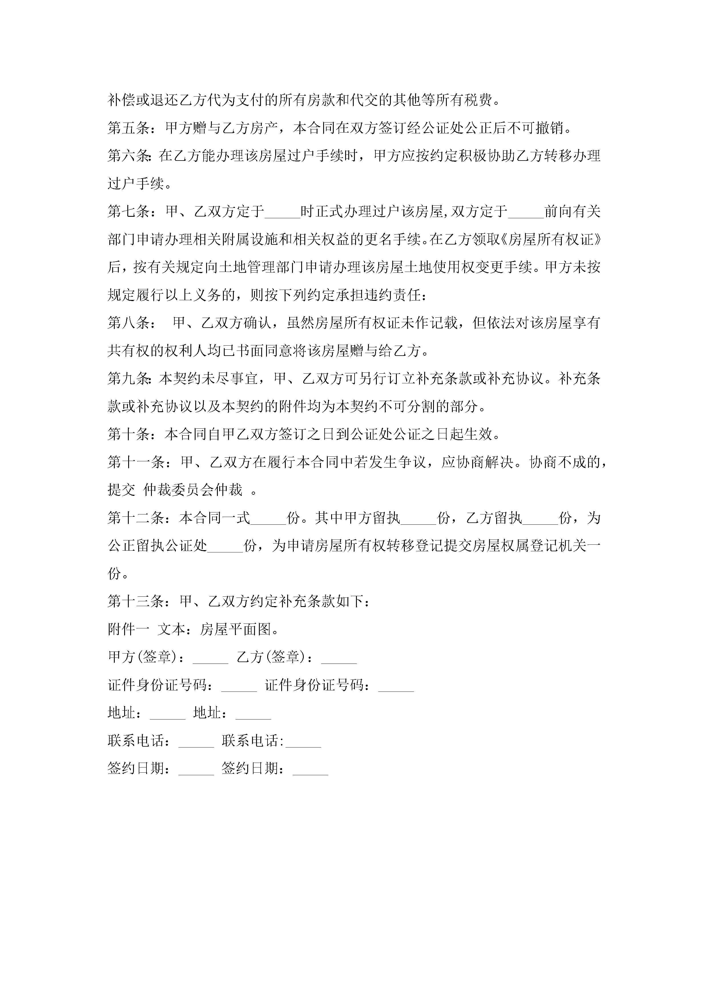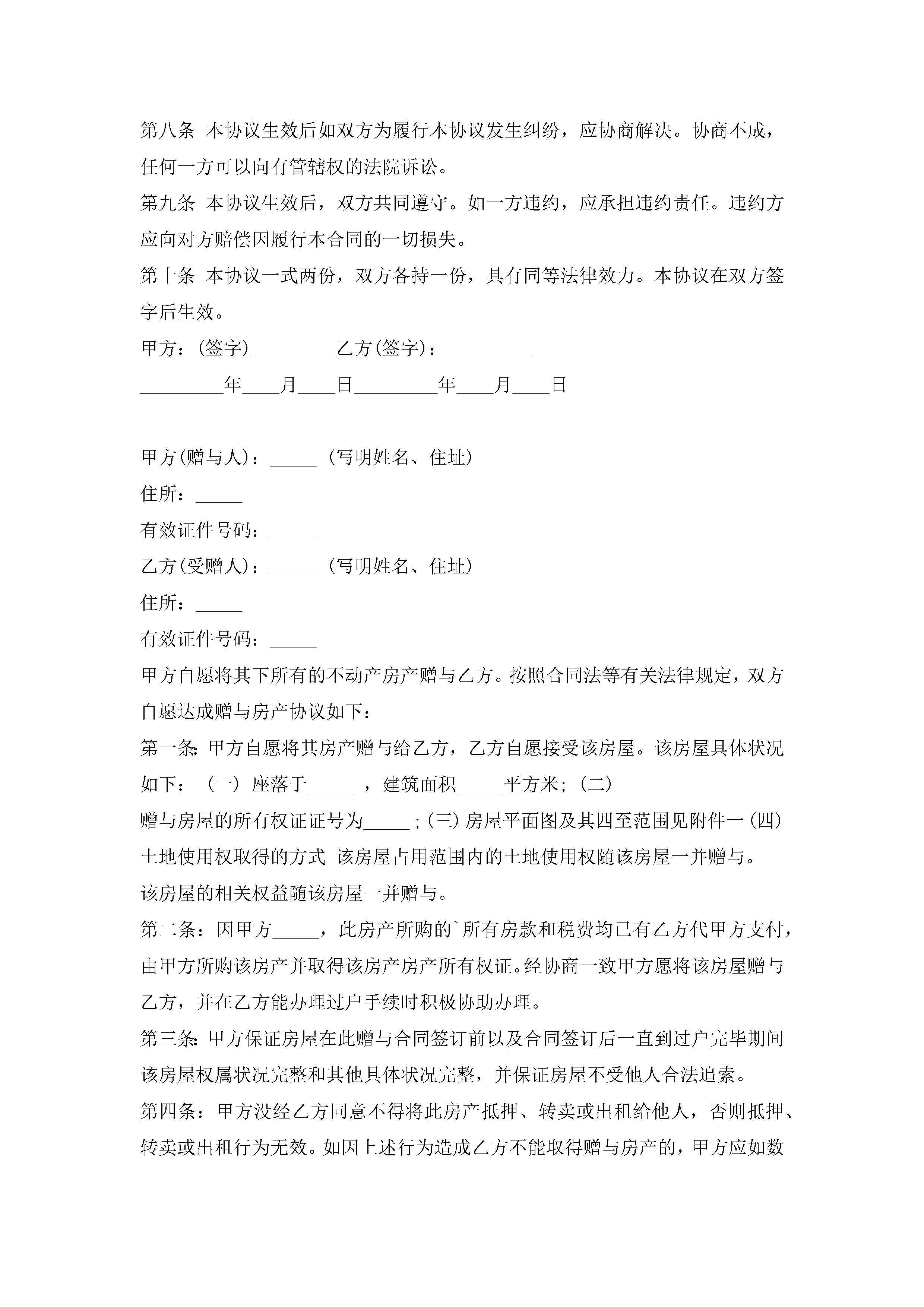 房屋赠与个人合同协议书模板jugei3月23日 01:34发布关注265 房屋赠与个人合同协议书模板此内容为付费资源,请付费后查看¥10.9 单篇文档限时特惠¥15个人会员开通企业会员开通立即下载无需登陆!可直接快捷下载单个模板付费资源© 版权声明THE ENDWord模板# 实用文档# 实用模板# 合同模板# 赠与合同 如有问题,可点击最底部“联系我们”联系客服 分享QQ空间微博QQ好友海报分享复制链接收藏