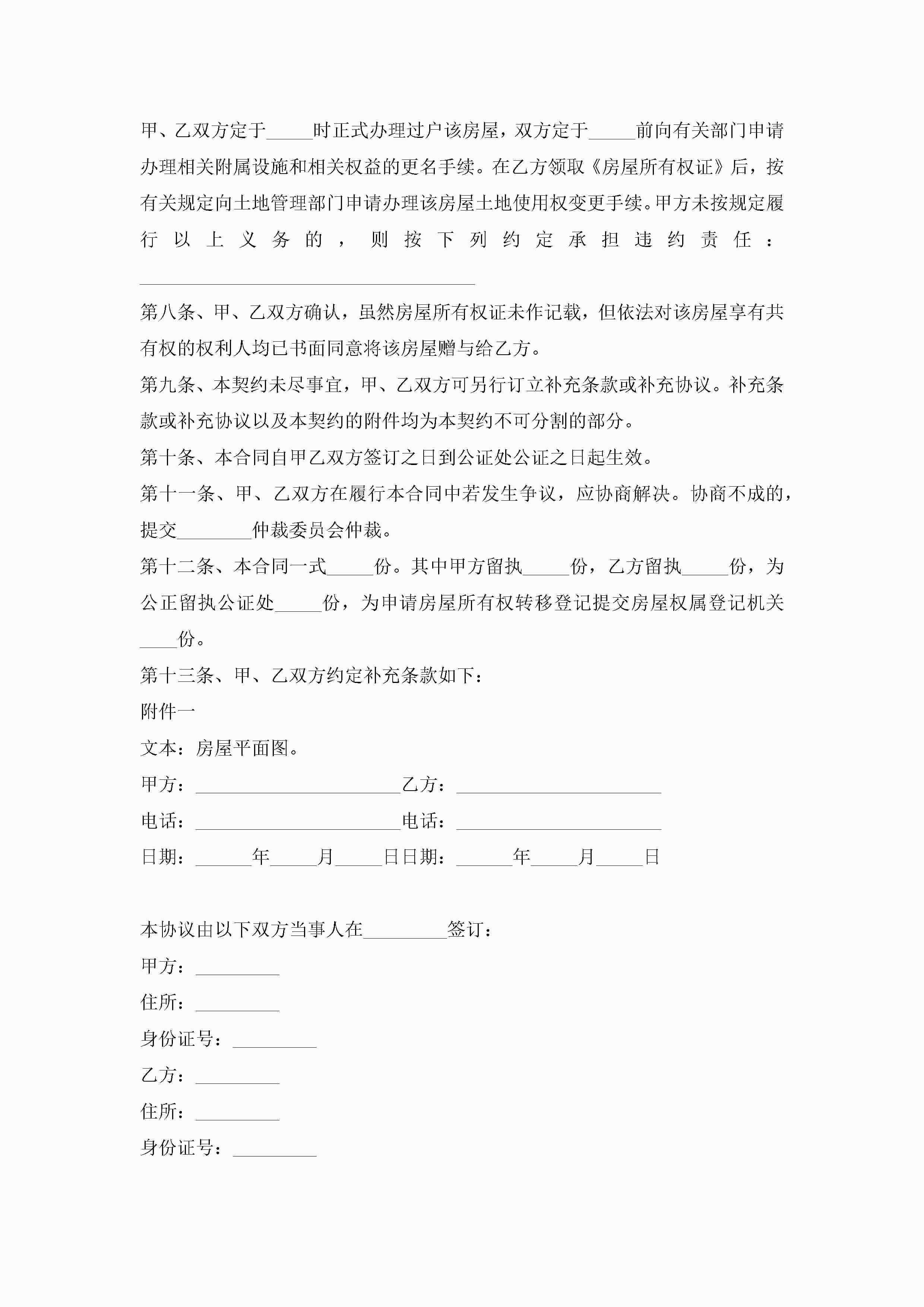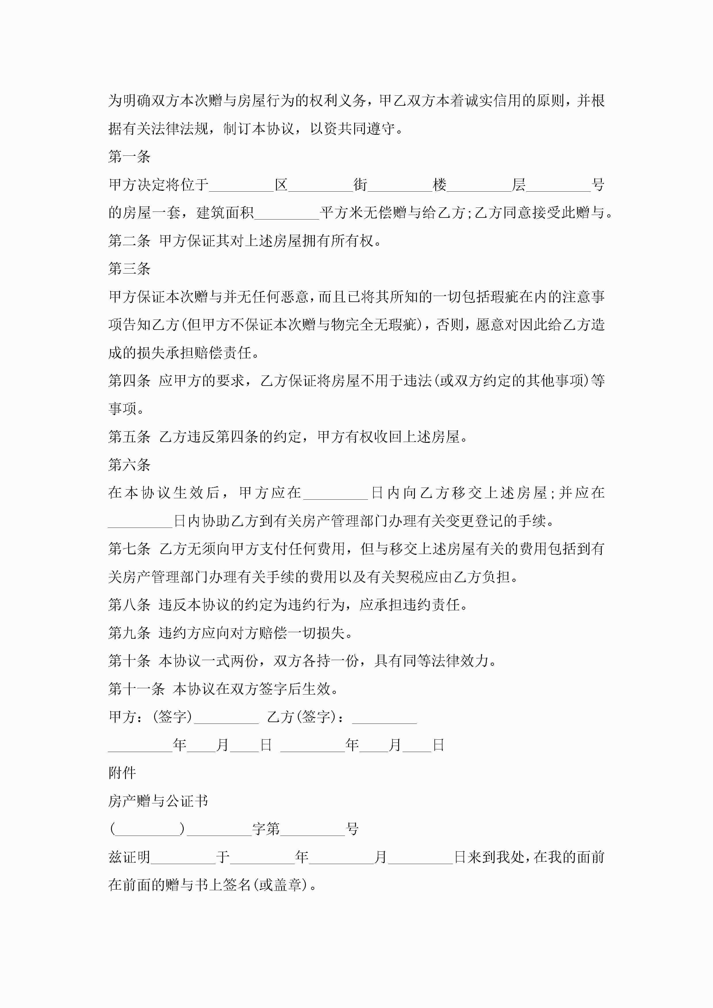 年房屋赠与合同协议书3篇jugei3月23日 01:34发布关注207 年房屋赠与合同协议书3篇此内容为付费资源,请付费后查看¥10.9 单篇文档限时特惠¥15个人会员开通企业会员开通立即下载无需登陆!可直接快捷下载单个模板付费资源© 版权声明THE ENDWord模板# 实用文档# 实用模板# 合同模板# 赠与合同 如有问题,可点击最底部“联系我们”联系客服 分享QQ空间微博QQ好友海报分享复制链接收藏