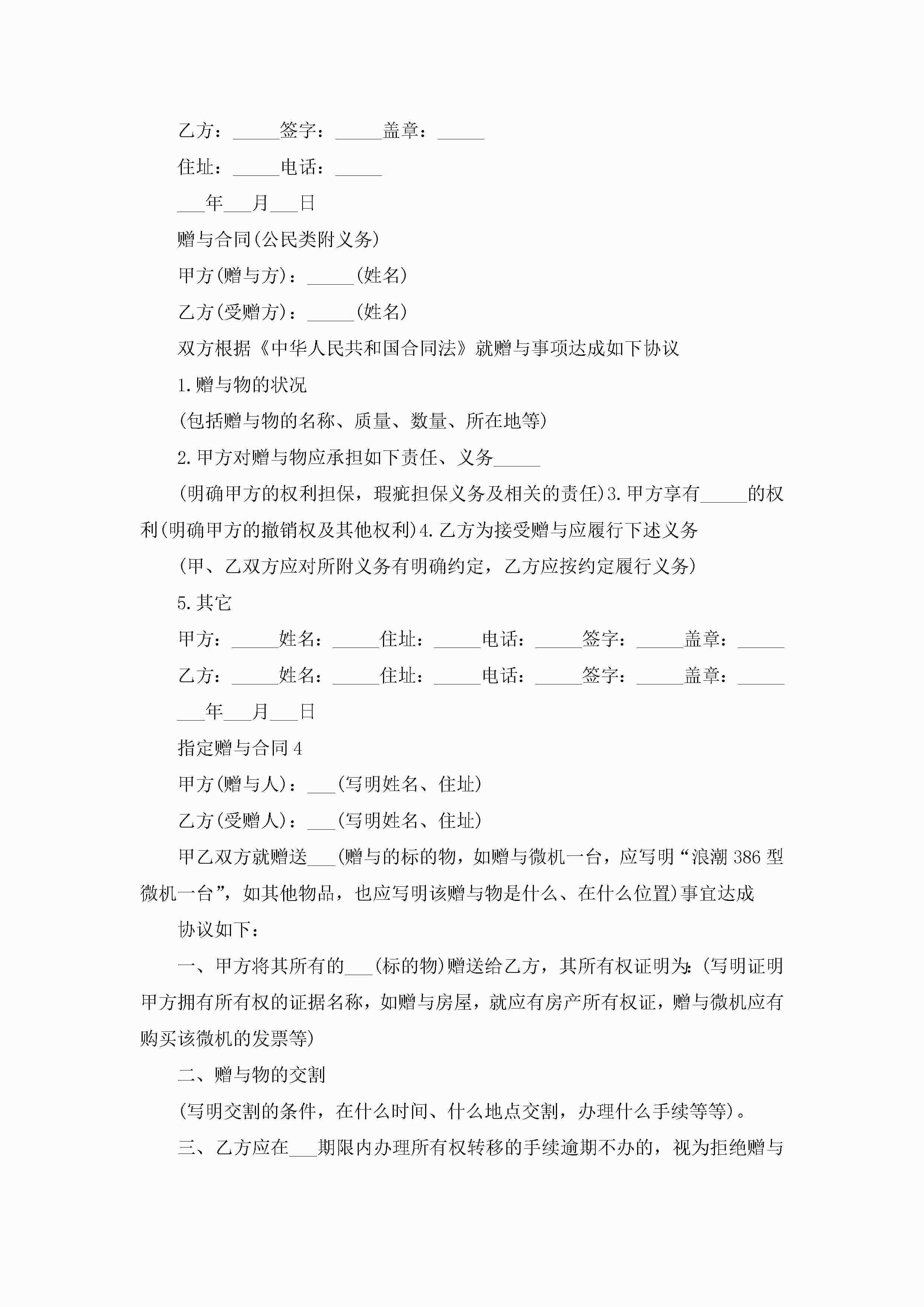 指定赠与合同模板5篇jugei3月23日 01:34发布关注253 指定赠与合同模板5篇此内容为付费资源,请付费后查看¥10.9 单篇文档限时特惠¥15个人会员开通企业会员开通立即下载无需登陆!可直接快捷下载单个模板付费资源© 版权声明THE ENDWord模板# 实用文档# 实用模板# 合同模板# 赠与合同 如有问题,可点击最底部“联系我们”联系客服 分享QQ空间微博QQ好友海报分享复制链接收藏