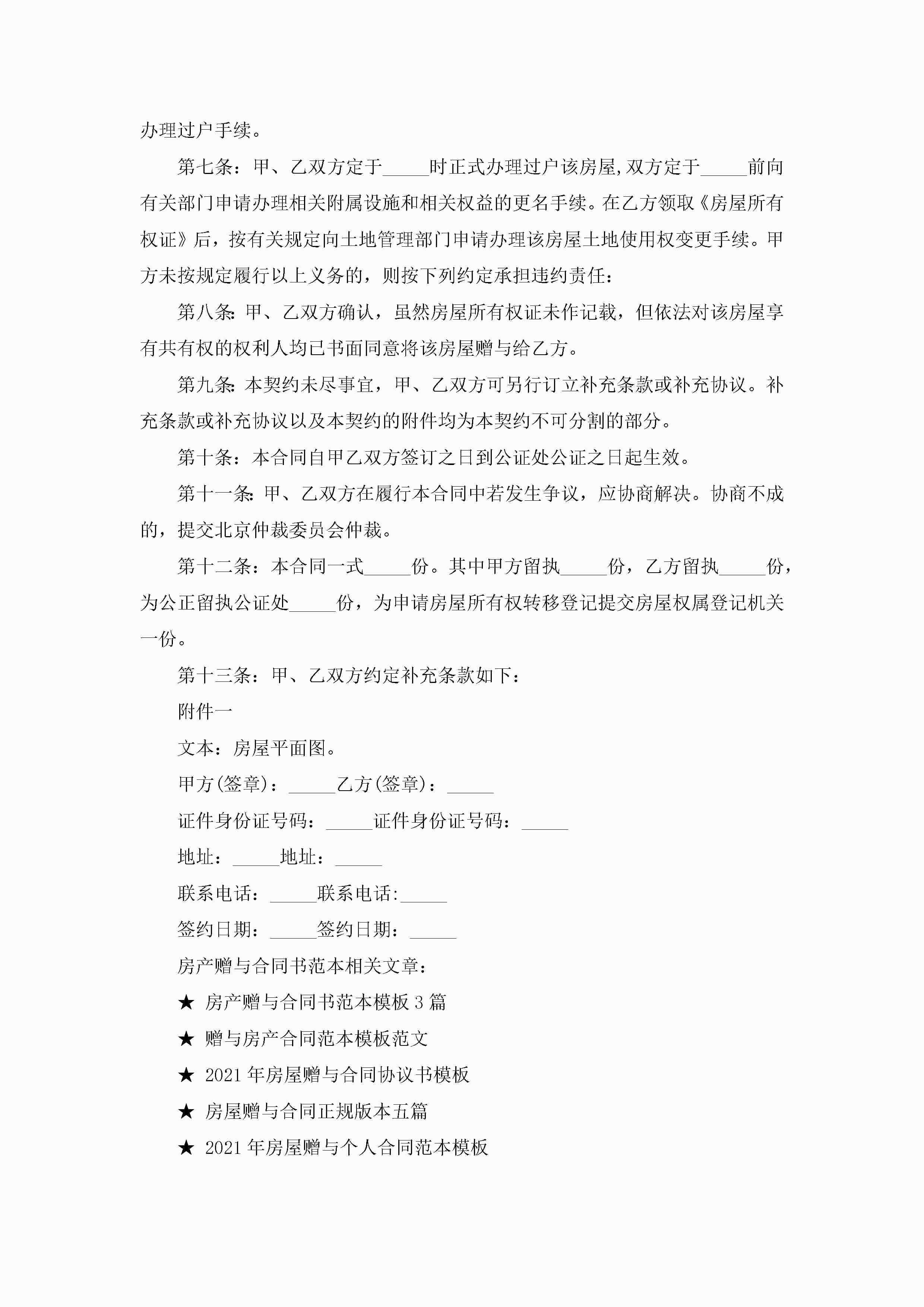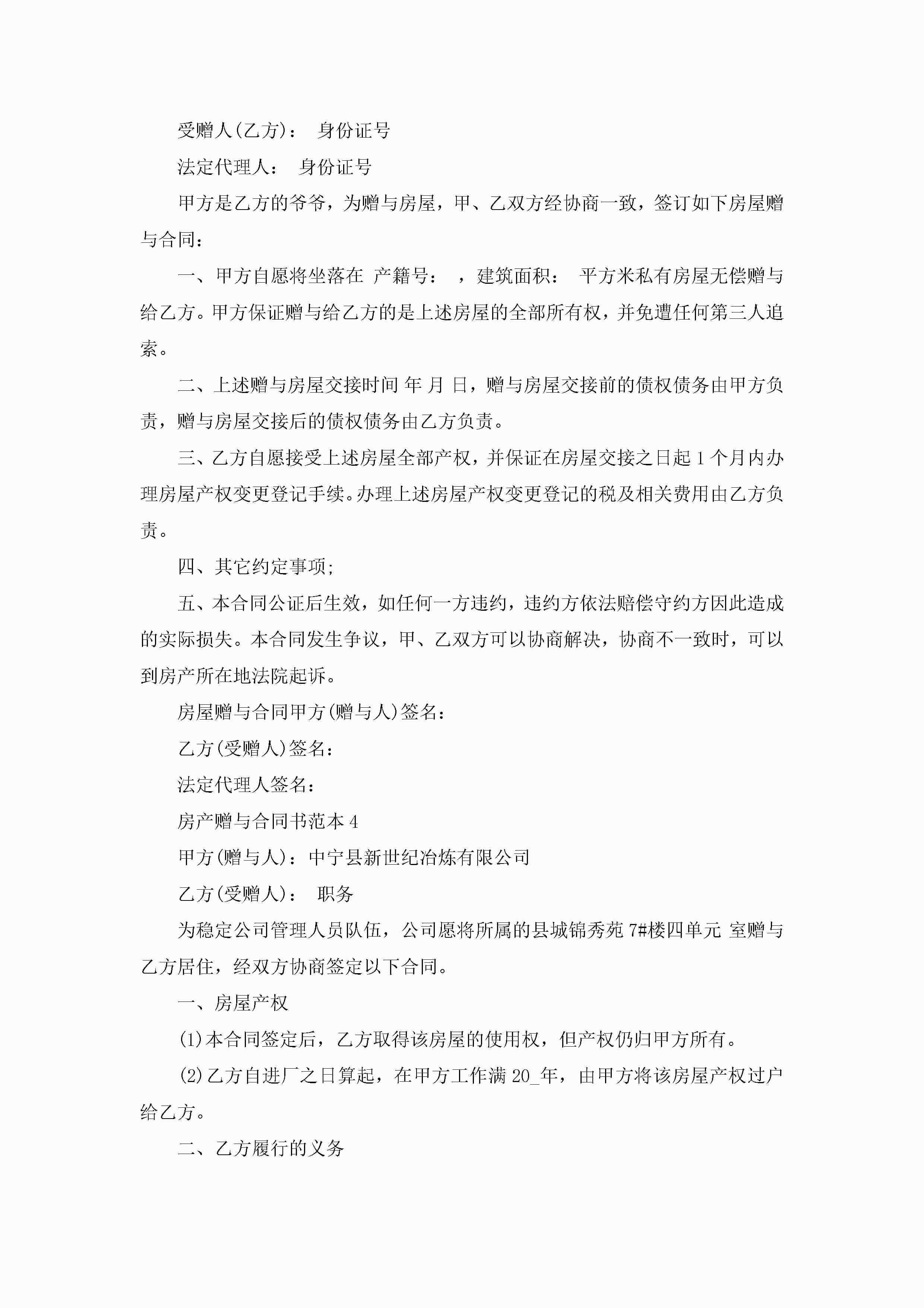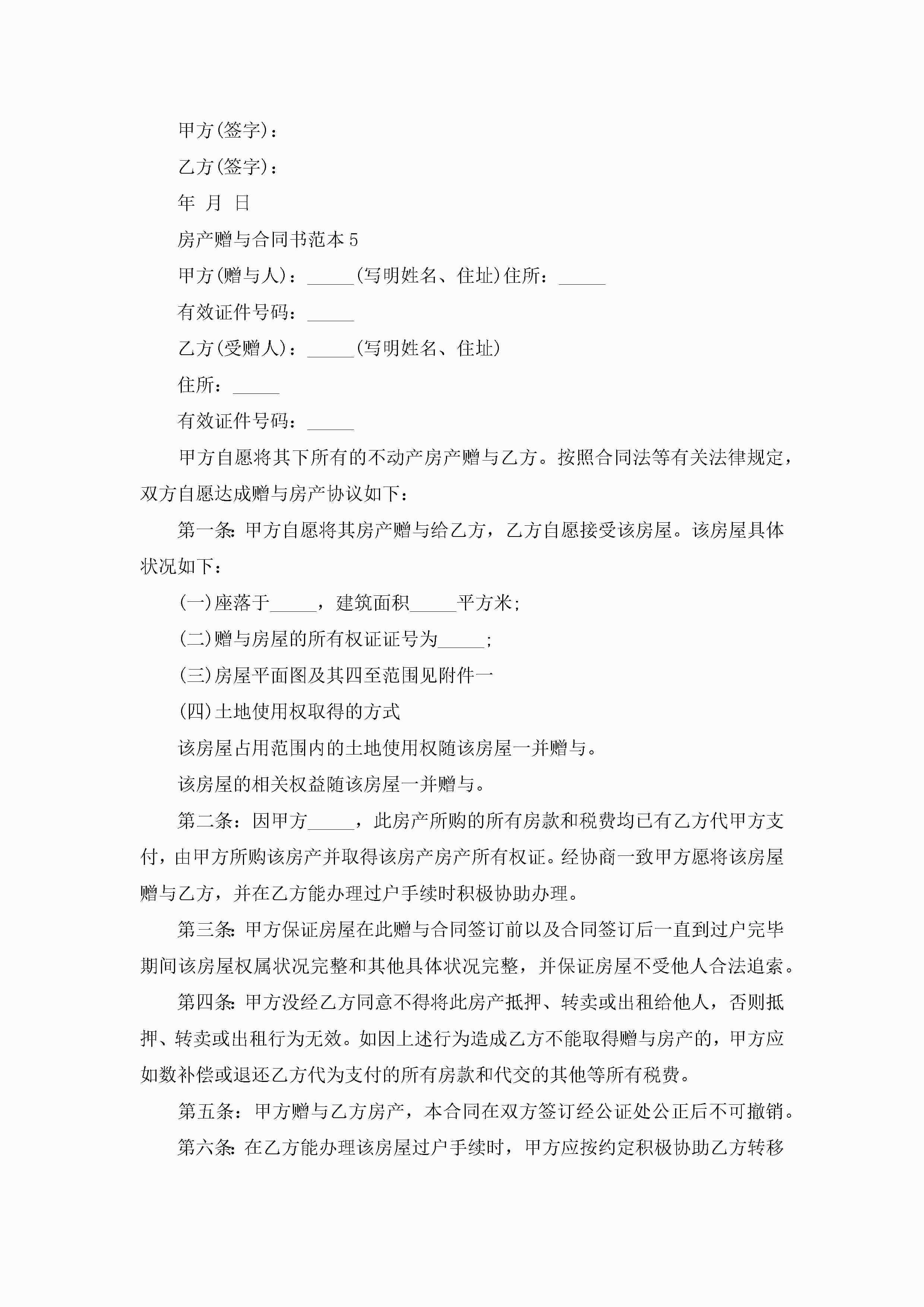 房产赠与合同书范本5篇jugei3月23日 01:34发布关注259 房产赠与合同书范本5篇此内容为付费资源,请付费后查看¥10.9 单篇文档限时特惠¥15个人会员开通企业会员开通立即下载无需登陆!可直接快捷下载单个模板付费资源© 版权声明THE ENDWord模板# 实用文档# 实用模板# 合同模板# 赠与合同 如有问题,可点击最底部“联系我们”联系客服 分享QQ空间微博QQ好友海报分享复制链接收藏