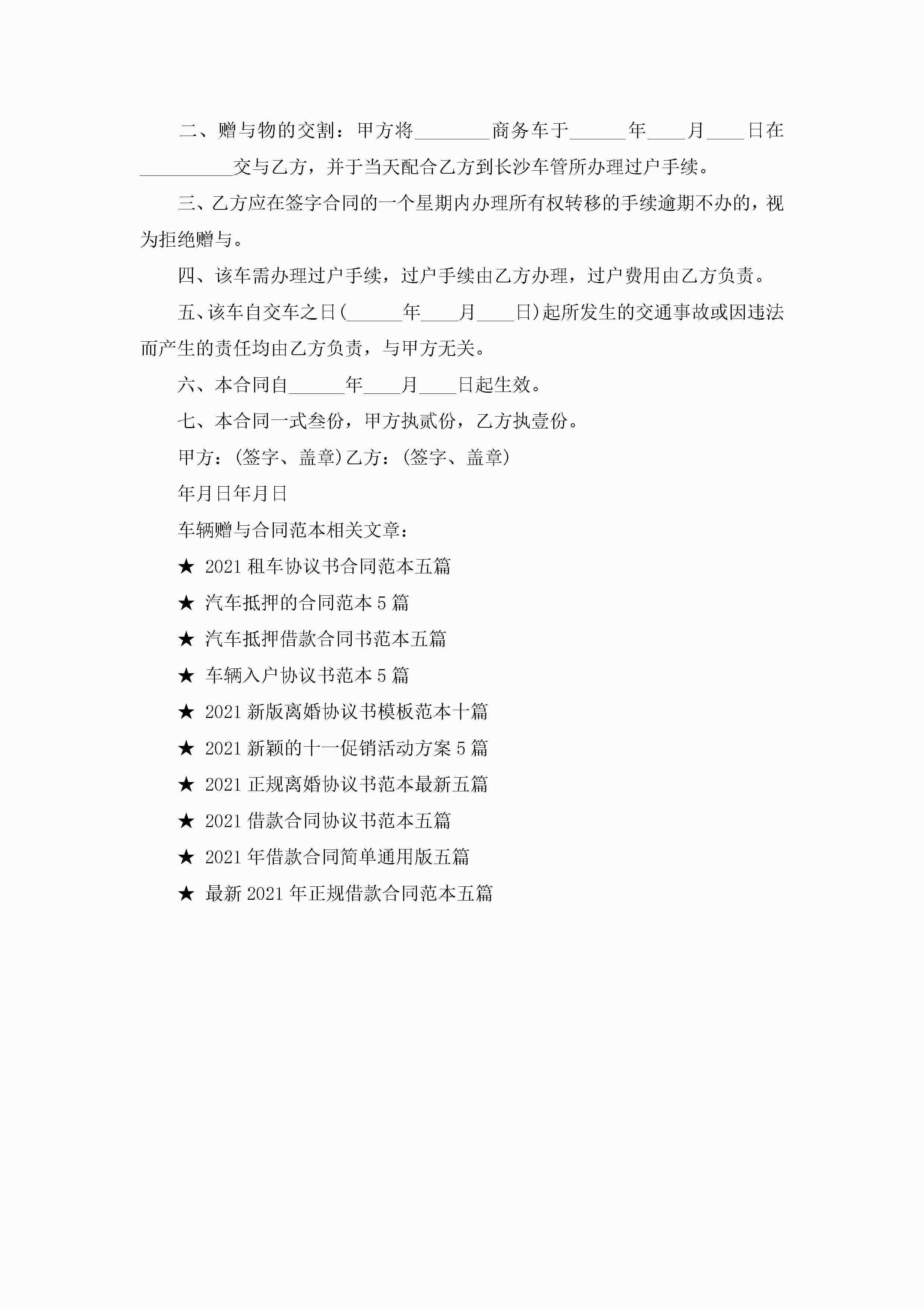车辆赠与合同范本5篇jugei3月23日 01:34发布关注324 车辆赠与合同范本5篇此内容为付费资源,请付费后查看¥10.9 单篇文档限时特惠¥15个人会员开通企业会员开通立即下载无需登陆!可直接快捷下载单个模板付费资源© 版权声明THE ENDWord模板# 实用文档# 实用模板# 合同模板# 赠与合同 如有问题,可点击最底部“联系我们”联系客服 分享QQ空间微博QQ好友海报分享复制链接收藏