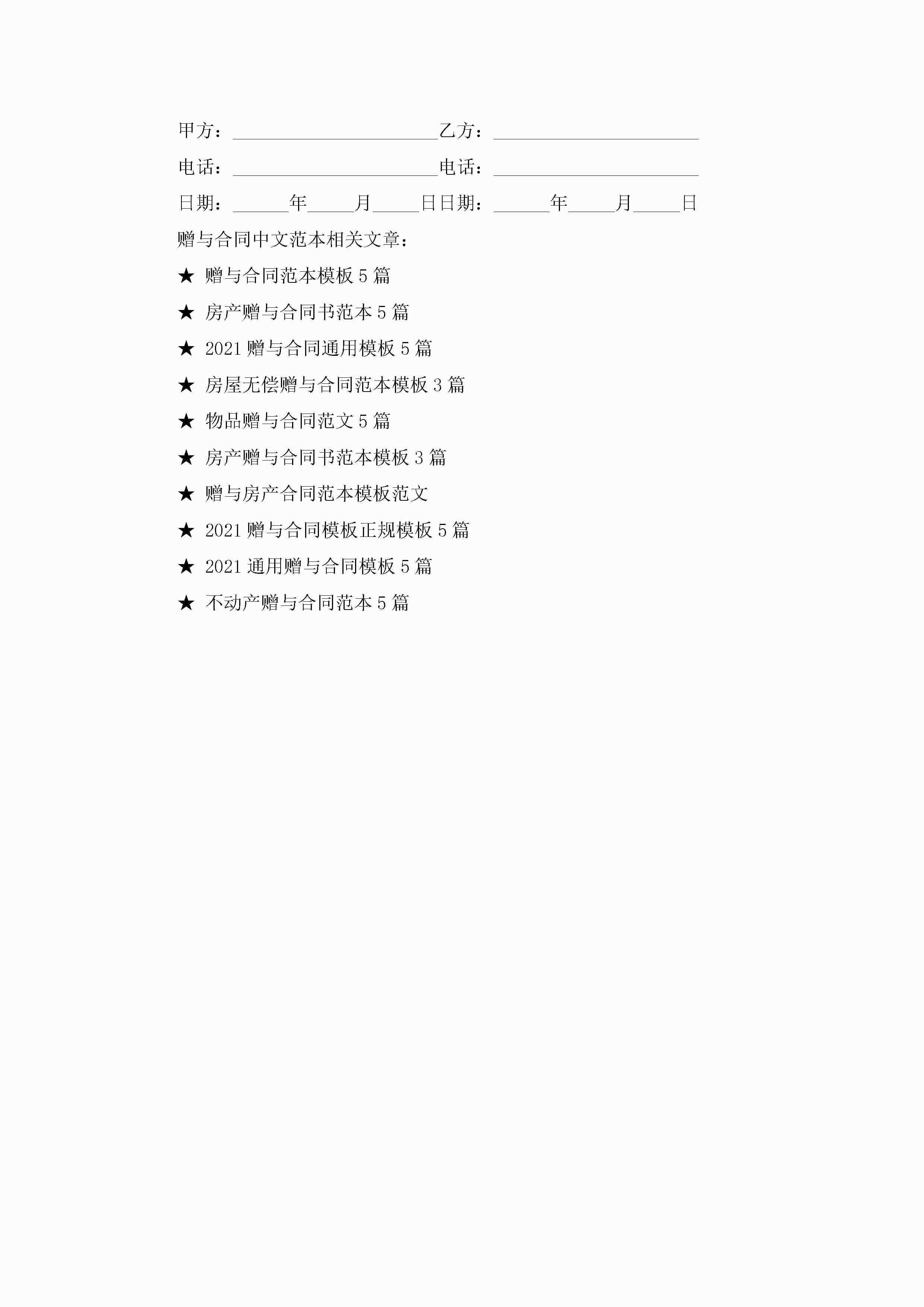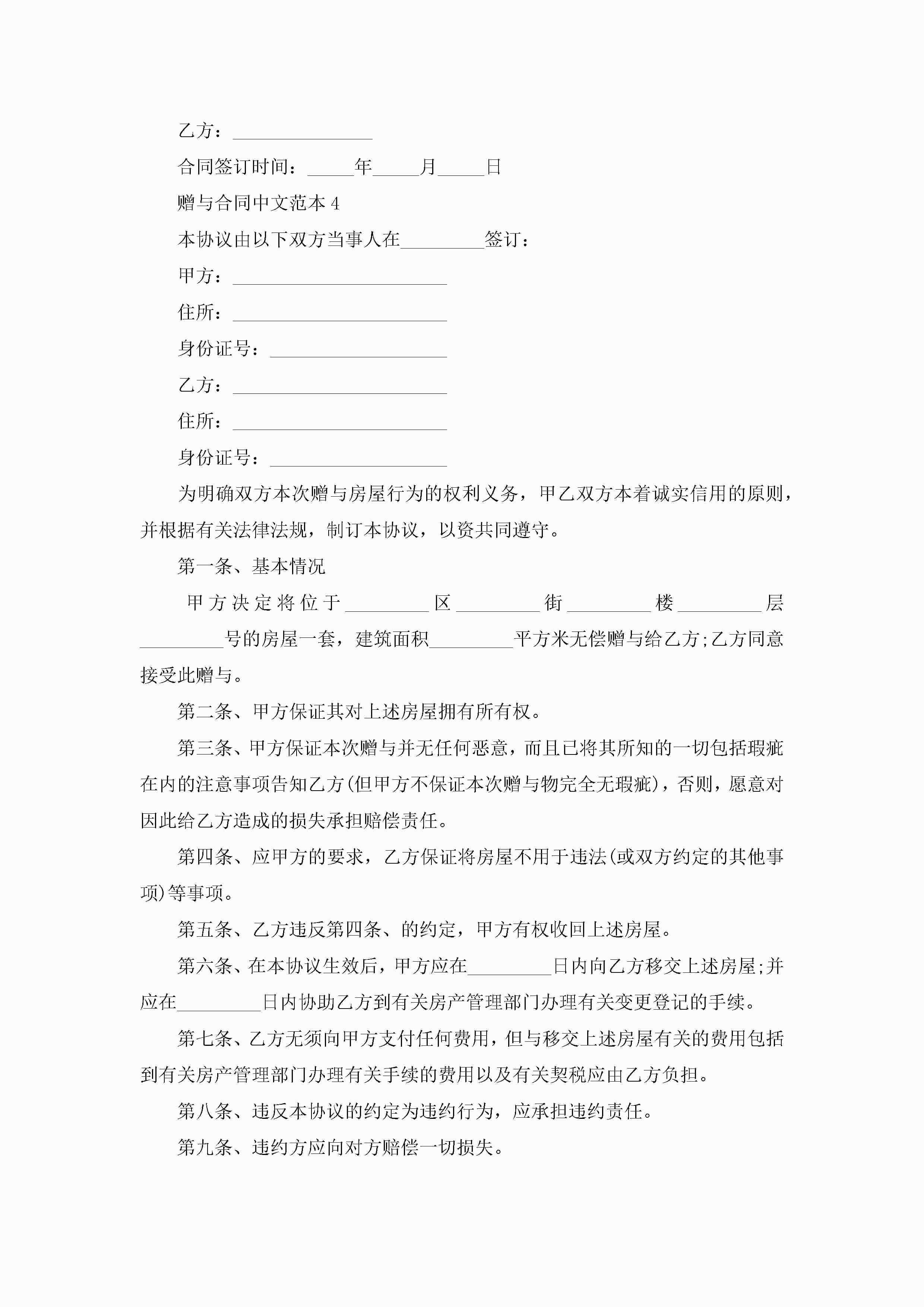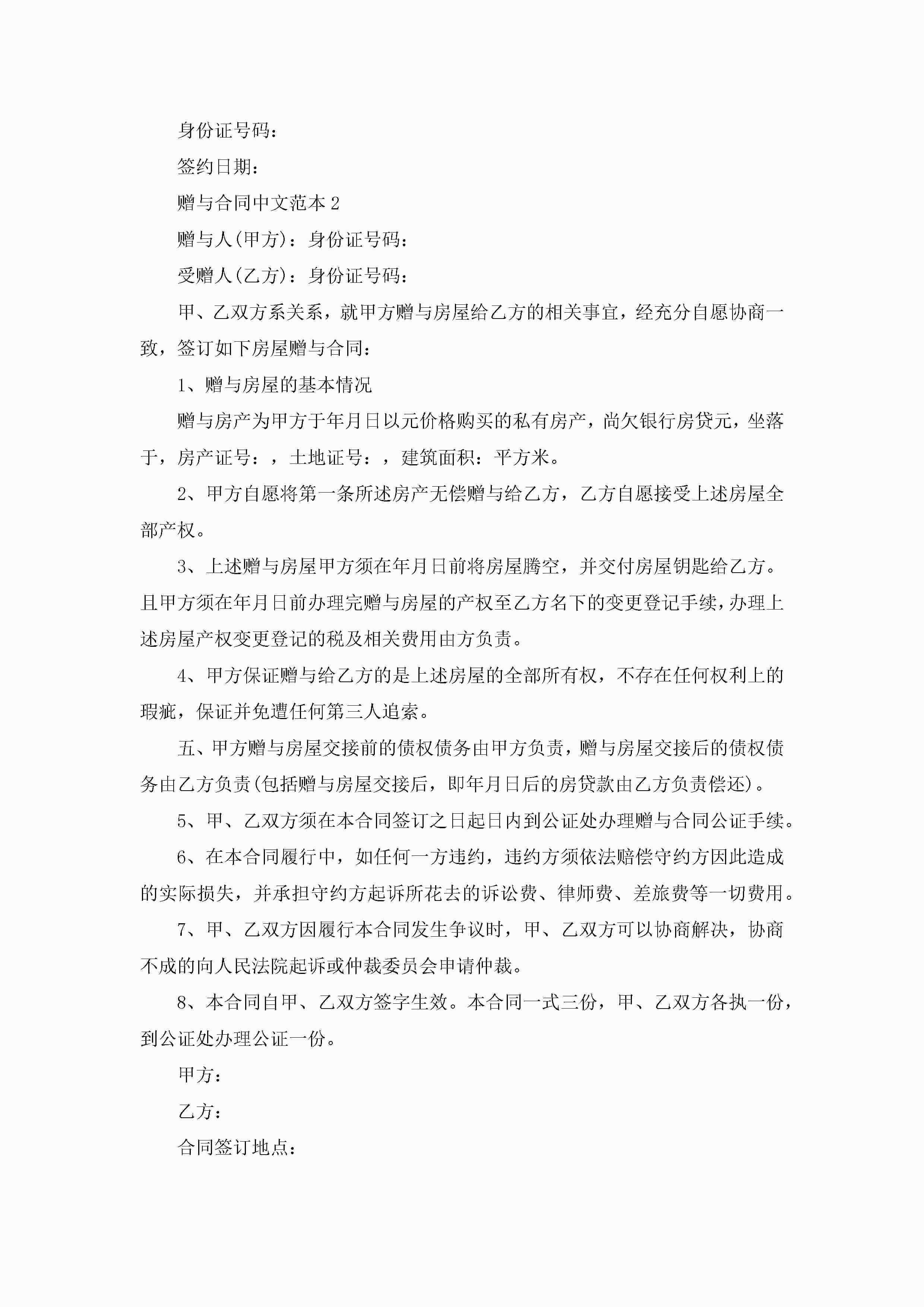赠与合同中文范本5篇jugei3月23日 01:34发布关注224 赠与合同中文范本5篇此内容为付费资源,请付费后查看¥10.9 单篇文档限时特惠¥15个人会员开通企业会员开通立即下载无需登陆!可直接快捷下载单个模板付费资源© 版权声明THE ENDWord模板# 实用文档# 实用模板# 合同模板# 赠与合同 如有问题,可点击最底部“联系我们”联系客服 分享QQ空间微博QQ好友海报分享复制链接收藏