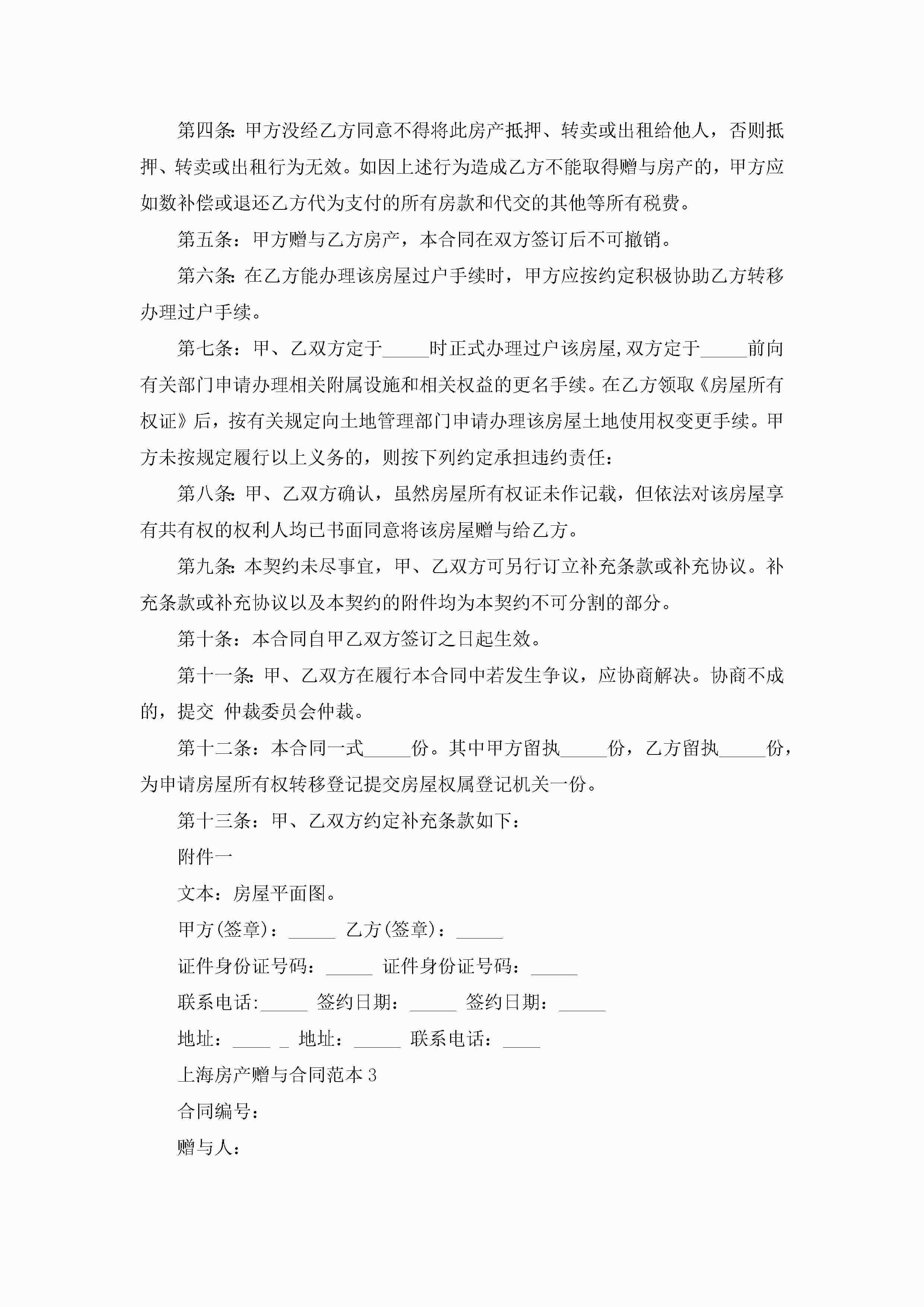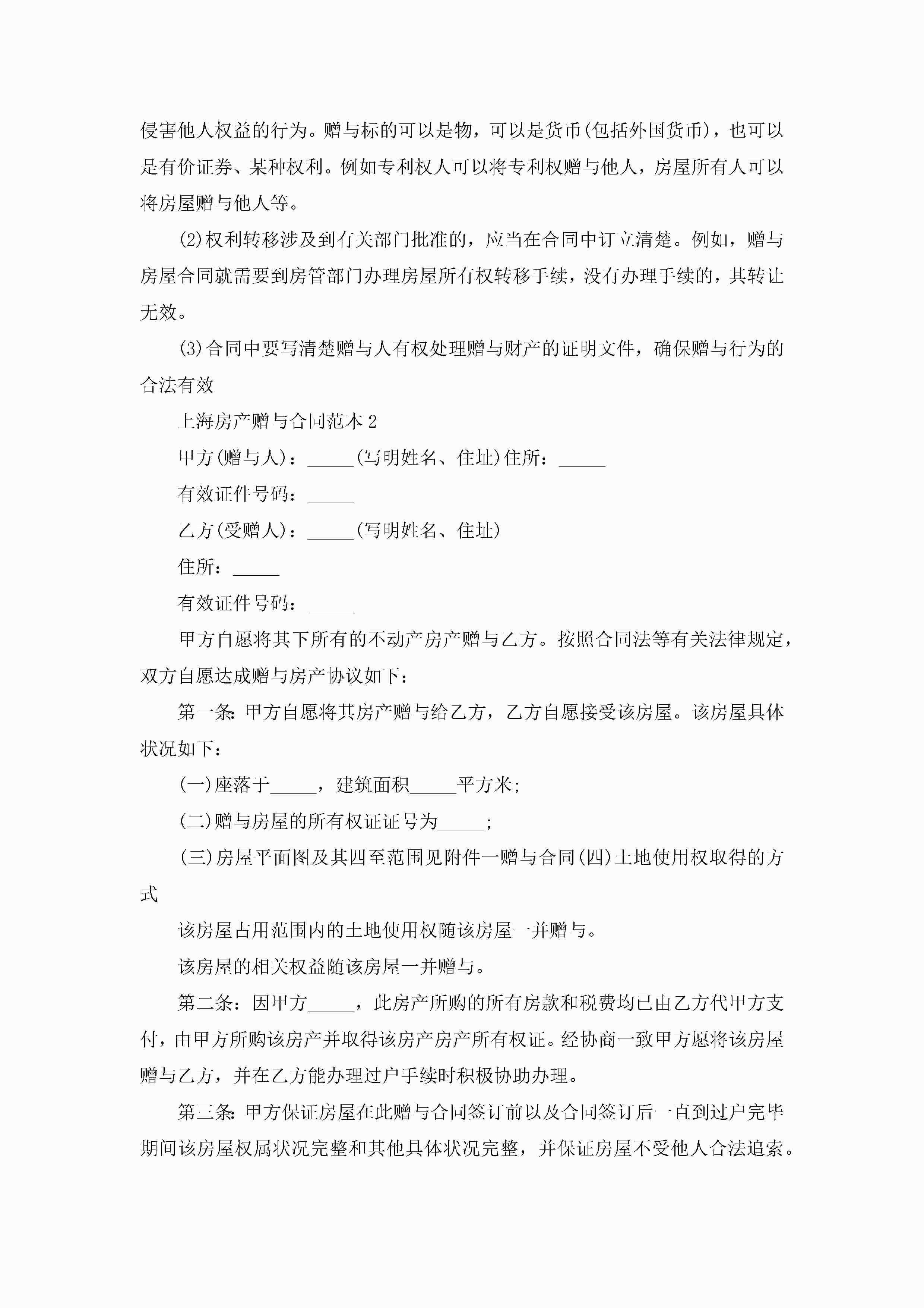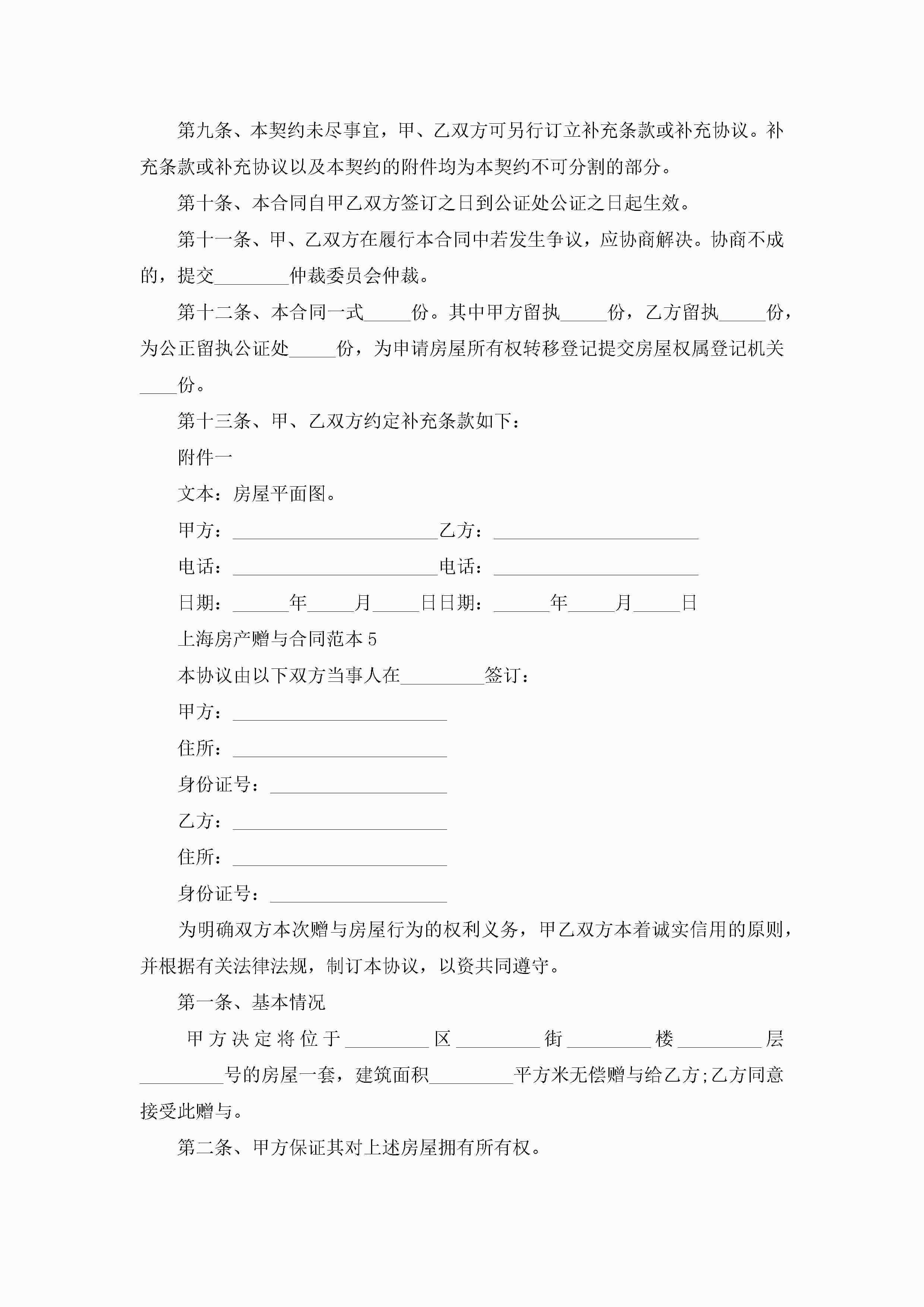 上海房产赠与合同范本5篇jugei3月23日 01:34发布关注243 上海房产赠与合同范本5篇此内容为付费资源,请付费后查看¥10.9 单篇文档限时特惠¥15个人会员开通企业会员开通立即下载无需登陆!可直接快捷下载单个模板付费资源© 版权声明THE ENDWord模板# 实用文档# 实用模板# 合同模板# 赠与合同 如有问题,可点击最底部“联系我们”联系客服 分享QQ空间微博QQ好友海报分享复制链接收藏