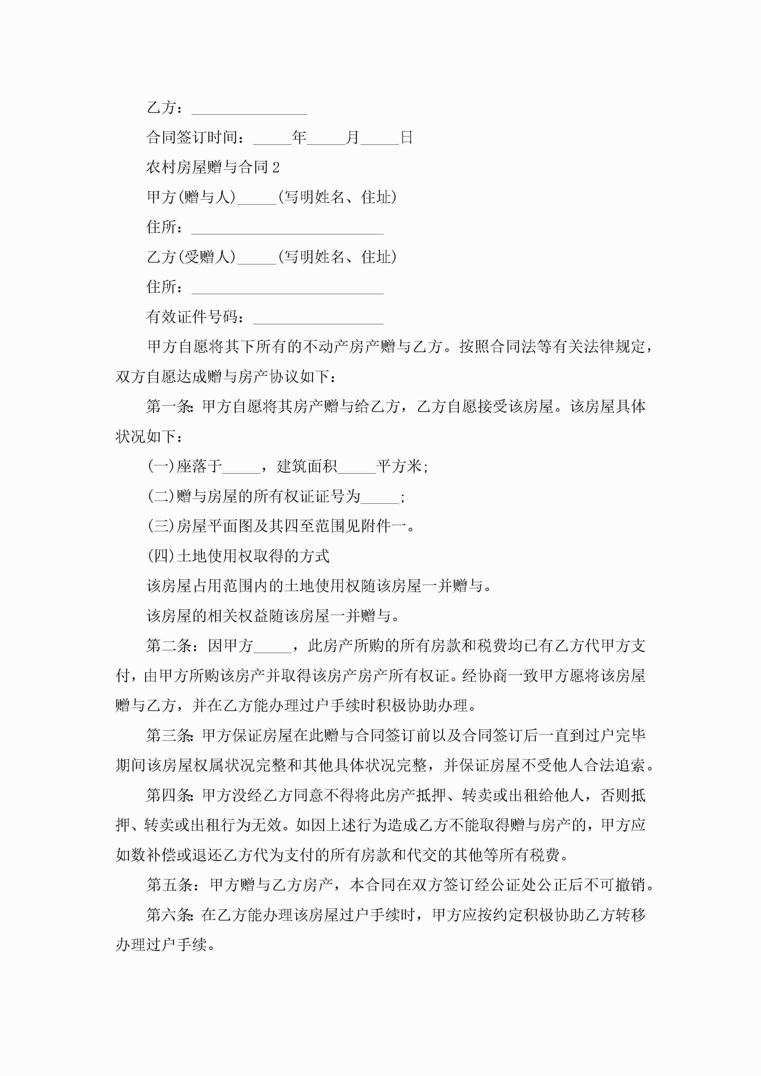 关于农村房屋赠与合同5篇jugei3月23日 01:34发布关注261 关于农村房屋赠与合同5篇此内容为付费资源,请付费后查看¥10.9 单篇文档限时特惠¥15个人会员开通企业会员开通立即下载无需登陆!可直接快捷下载单个模板付费资源© 版权声明THE ENDWord模板# 实用文档# 实用模板# 合同模板# 赠与合同 如有问题,可点击最底部“联系我们”联系客服 分享QQ空间微博QQ好友海报分享复制链接收藏