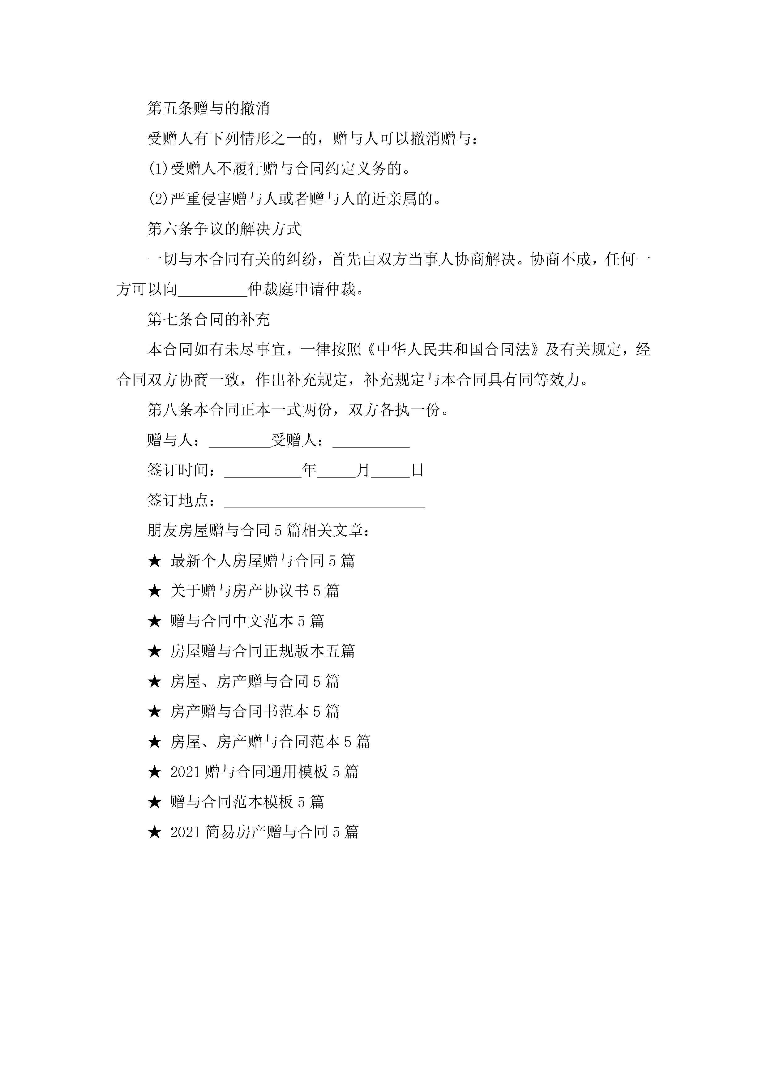 关于朋友房屋赠与合同5篇jugei3月23日 01:34发布关注198 关于朋友房屋赠与合同5篇此内容为付费资源,请付费后查看¥10.9 单篇文档限时特惠¥15个人会员开通企业会员开通立即下载无需登陆!可直接快捷下载单个模板付费资源© 版权声明THE ENDWord模板# 实用文档# 实用模板# 合同模板# 赠与合同 如有问题,可点击最底部“联系我们”联系客服 分享QQ空间微博QQ好友海报分享复制链接收藏