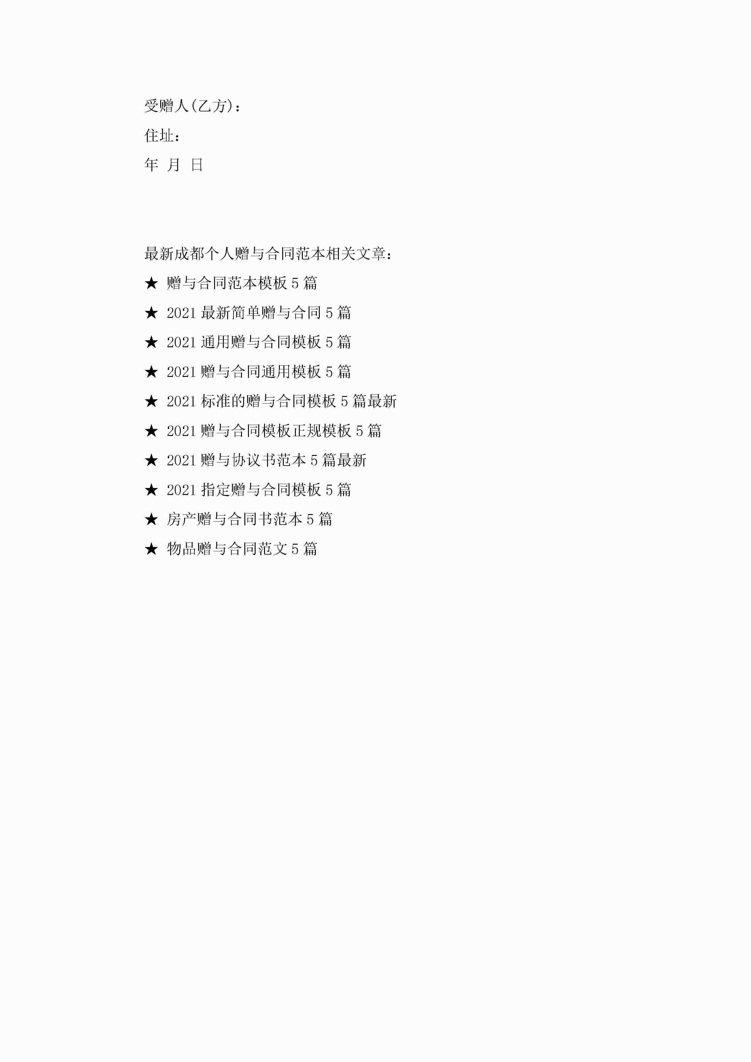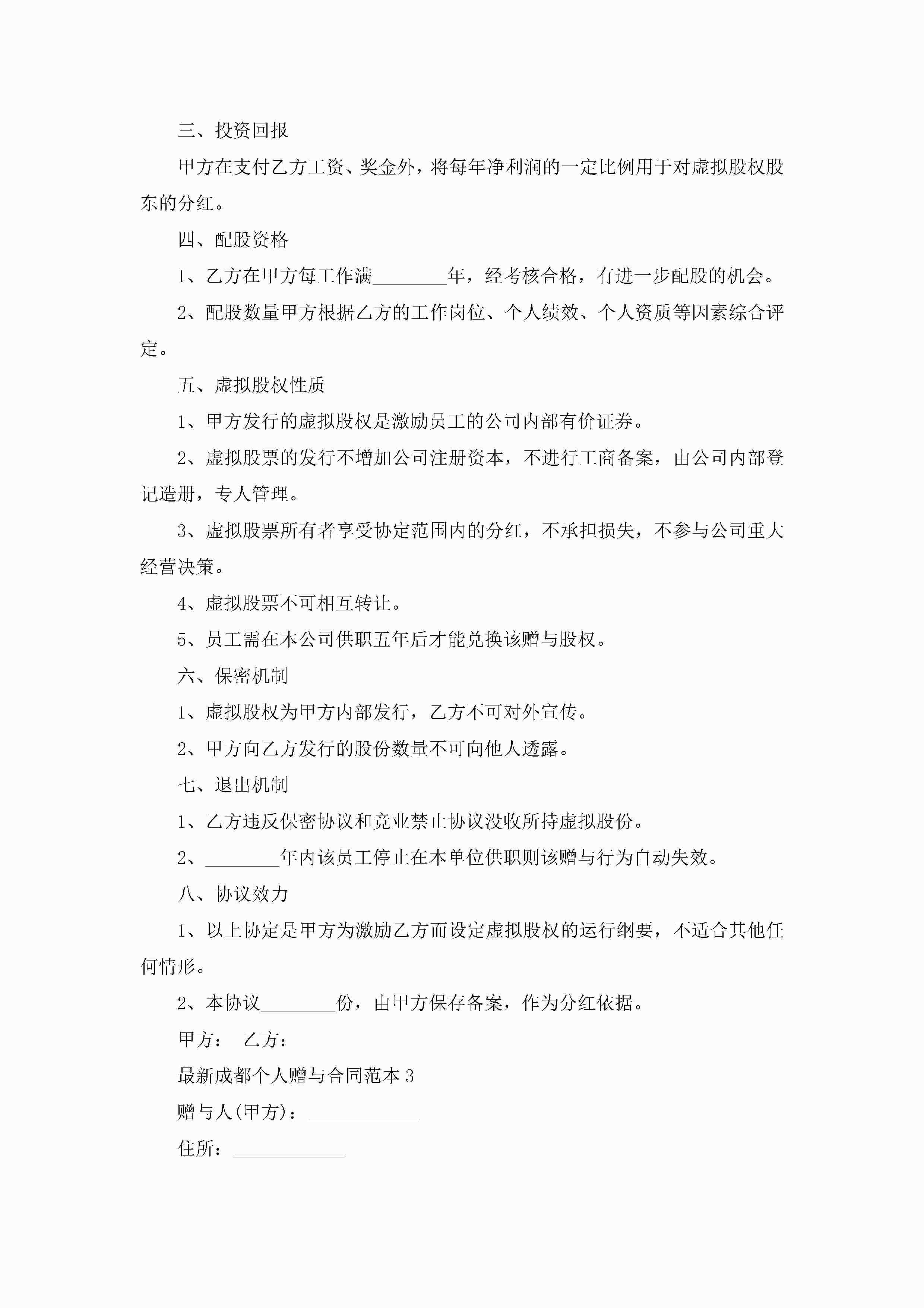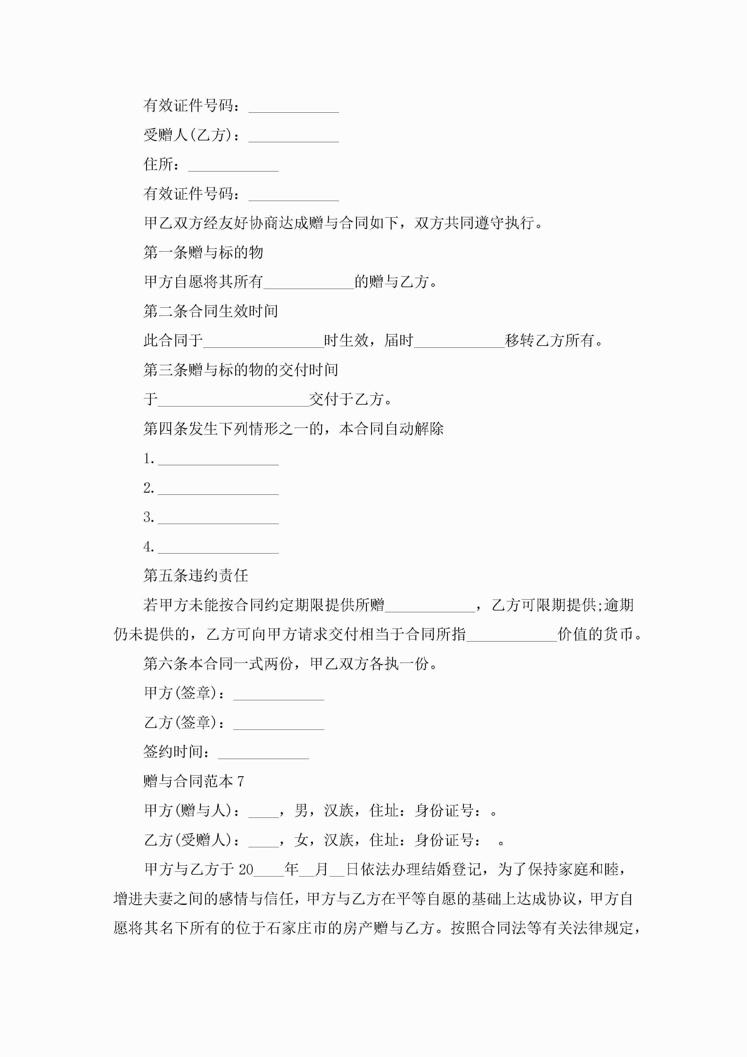 最新成都个人赠与合同范本5篇jugei3月23日 01:34发布关注237 最新成都个人赠与合同范本5篇此内容为付费资源,请付费后查看¥10.9 单篇文档限时特惠¥15个人会员开通企业会员开通立即下载无需登陆!可直接快捷下载单个模板付费资源© 版权声明THE ENDWord模板# 实用文档# 实用模板# 合同模板# 赠与合同 如有问题,可点击最底部“联系我们”联系客服 分享QQ空间微博QQ好友海报分享复制链接收藏
