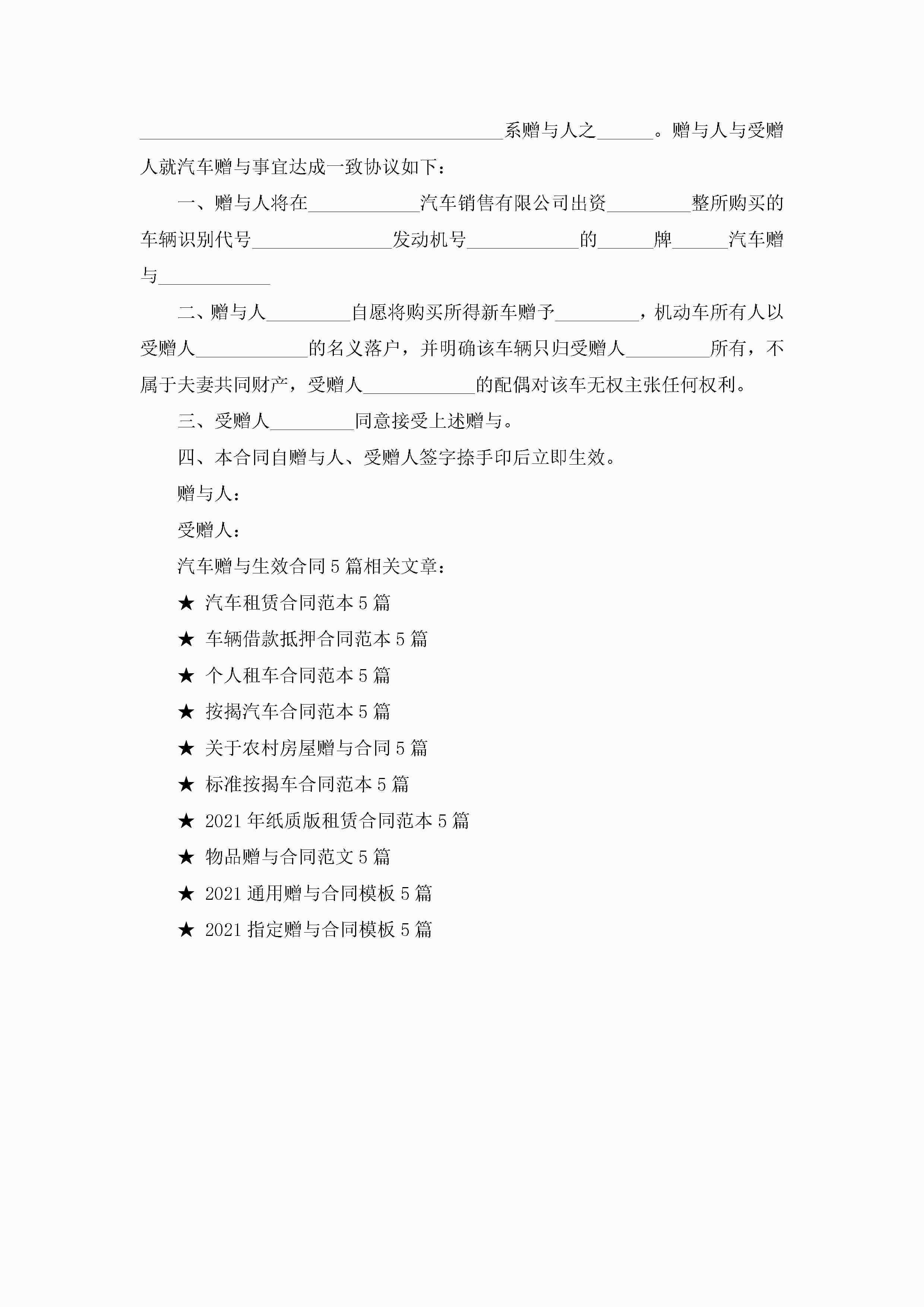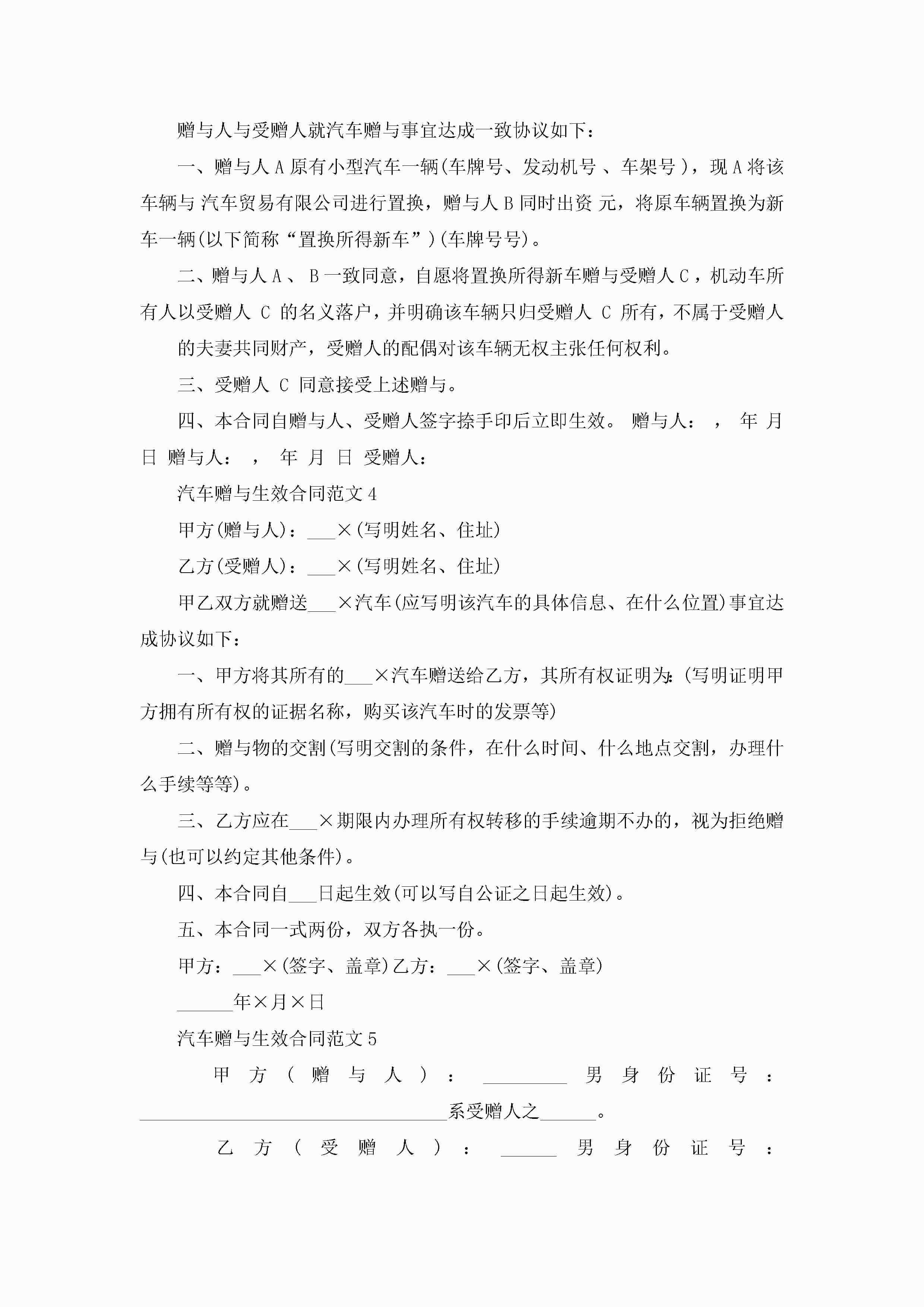 汽车赠与生效合同范文5篇jugei3月23日 01:34发布关注280 汽车赠与生效合同范文5篇此内容为付费资源,请付费后查看¥10.9 单篇文档限时特惠¥15个人会员开通企业会员开通立即下载无需登陆!可直接快捷下载单个模板付费资源© 版权声明THE ENDWord模板# 实用文档# 实用模板# 合同模板# 赠与合同 如有问题,可点击最底部“联系我们”联系客服 分享QQ空间微博QQ好友海报分享复制链接收藏