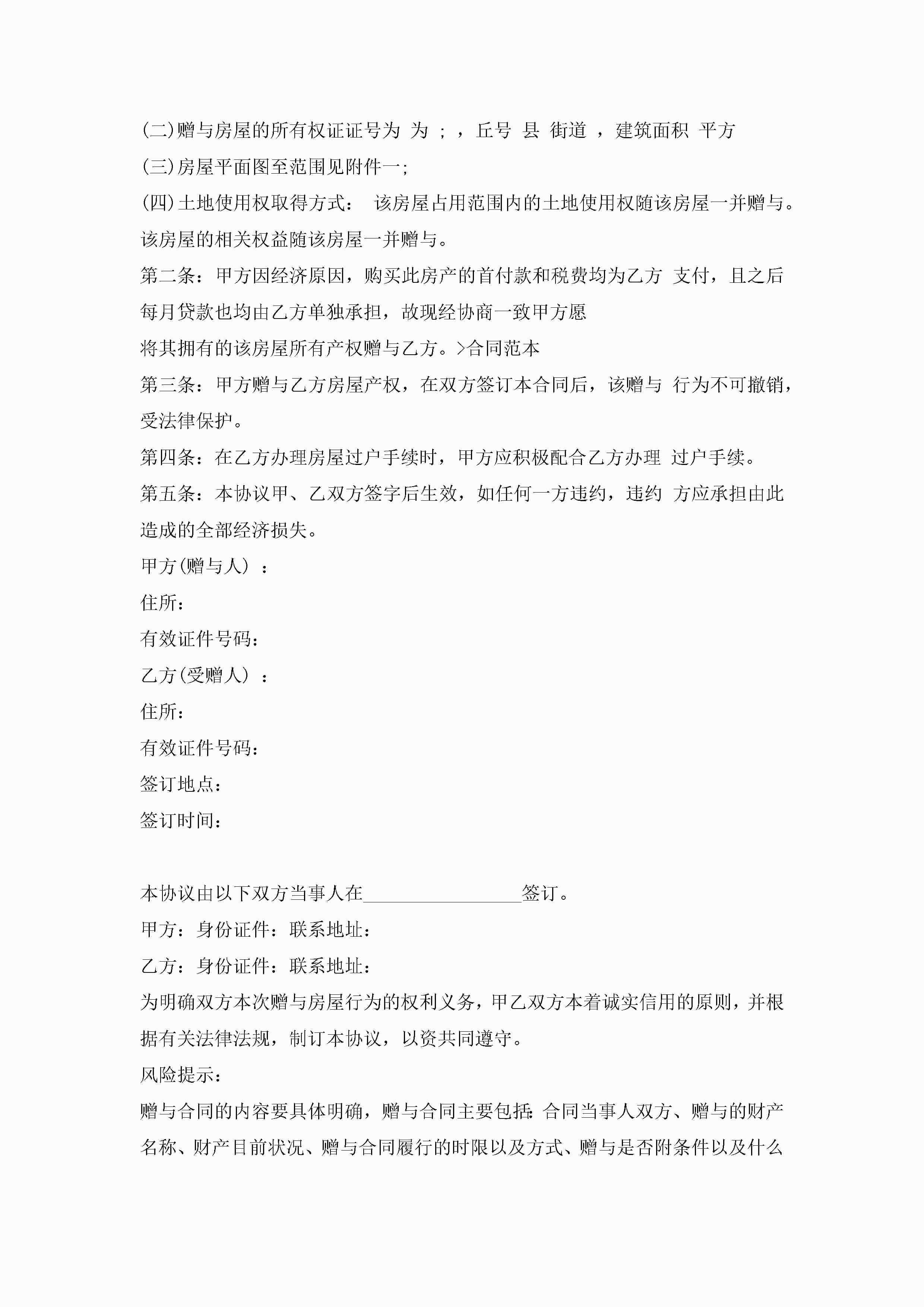全国通用赠与合同范文5篇jugei3月23日 01:34发布关注206 全国通用赠与合同范文5篇此内容为付费资源,请付费后查看¥10.9 单篇文档限时特惠¥15个人会员开通企业会员开通立即下载无需登陆!可直接快捷下载单个模板付费资源© 版权声明THE ENDWord模板# 实用文档# 实用模板# 合同模板# 赠与合同 如有问题,可点击最底部“联系我们”联系客服 分享QQ空间微博QQ好友海报分享复制链接收藏