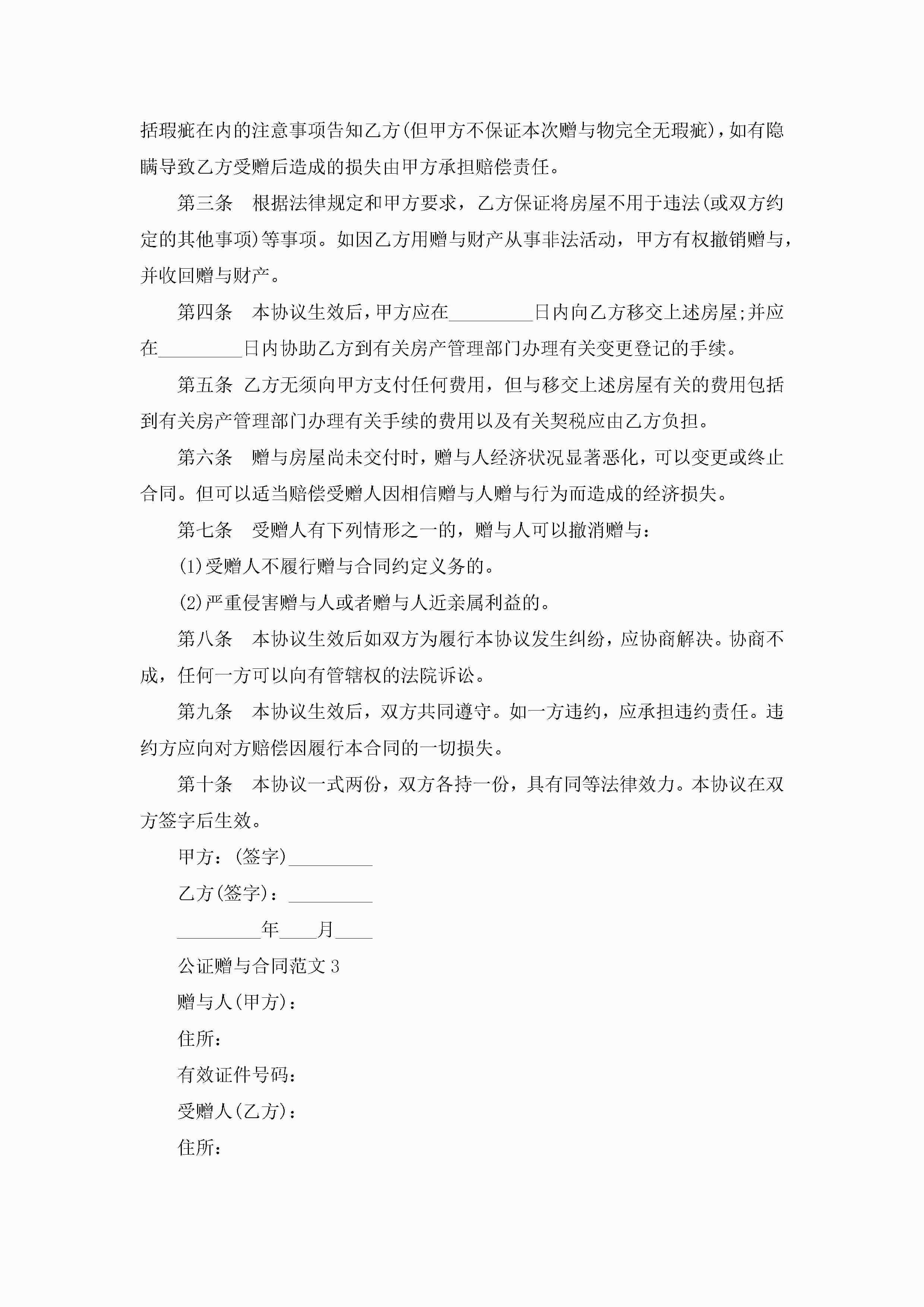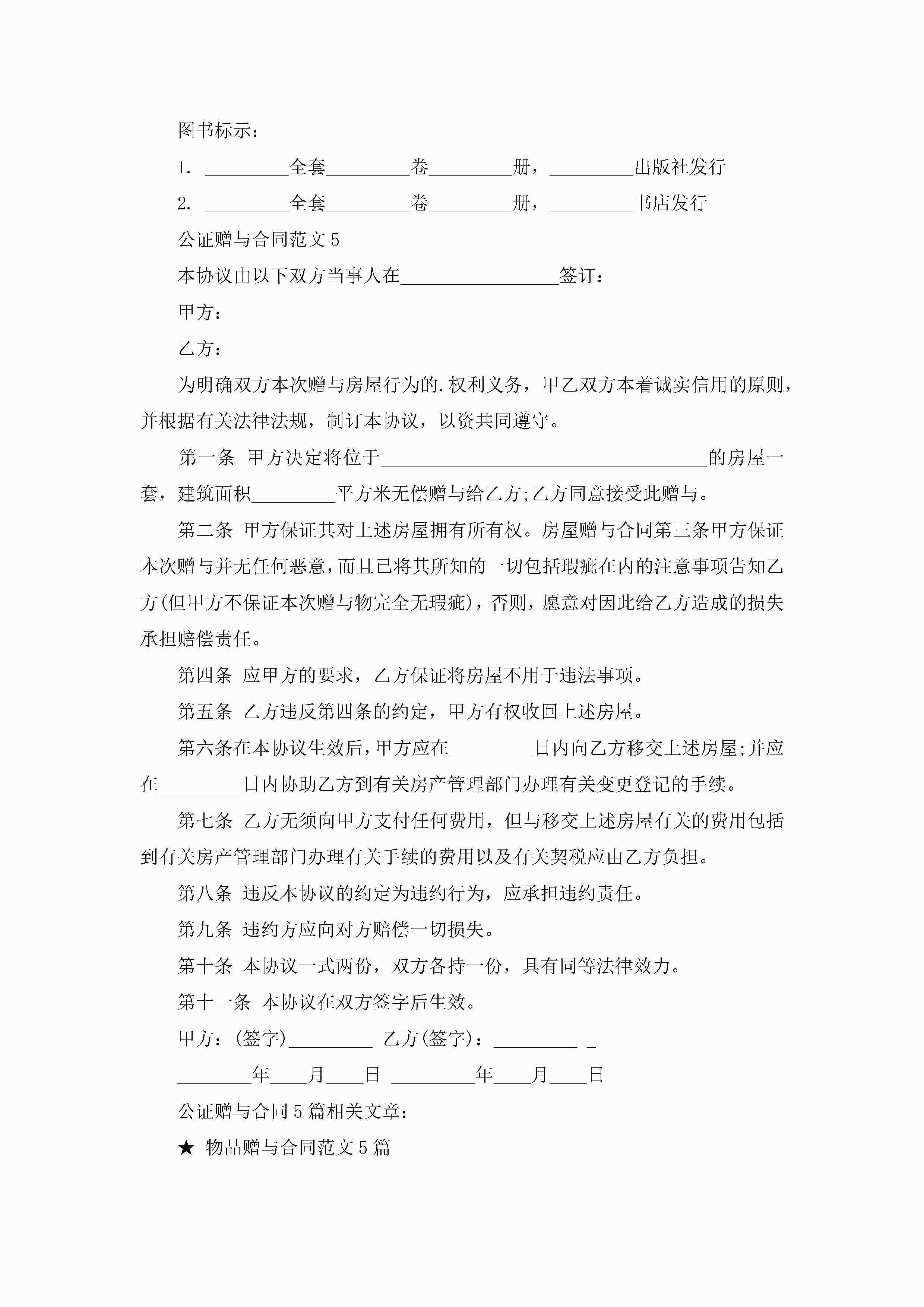 公证赠与合同范文5篇jugei3月23日 01:34发布关注202 公证赠与合同范文5篇此内容为付费资源,请付费后查看¥10.9 单篇文档限时特惠¥15个人会员开通企业会员开通立即下载无需登陆!可直接快捷下载单个模板付费资源© 版权声明THE ENDWord模板# 实用文档# 实用模板# 合同模板# 赠与合同 如有问题,可点击最底部“联系我们”联系客服 分享QQ空间微博QQ好友海报分享复制链接收藏