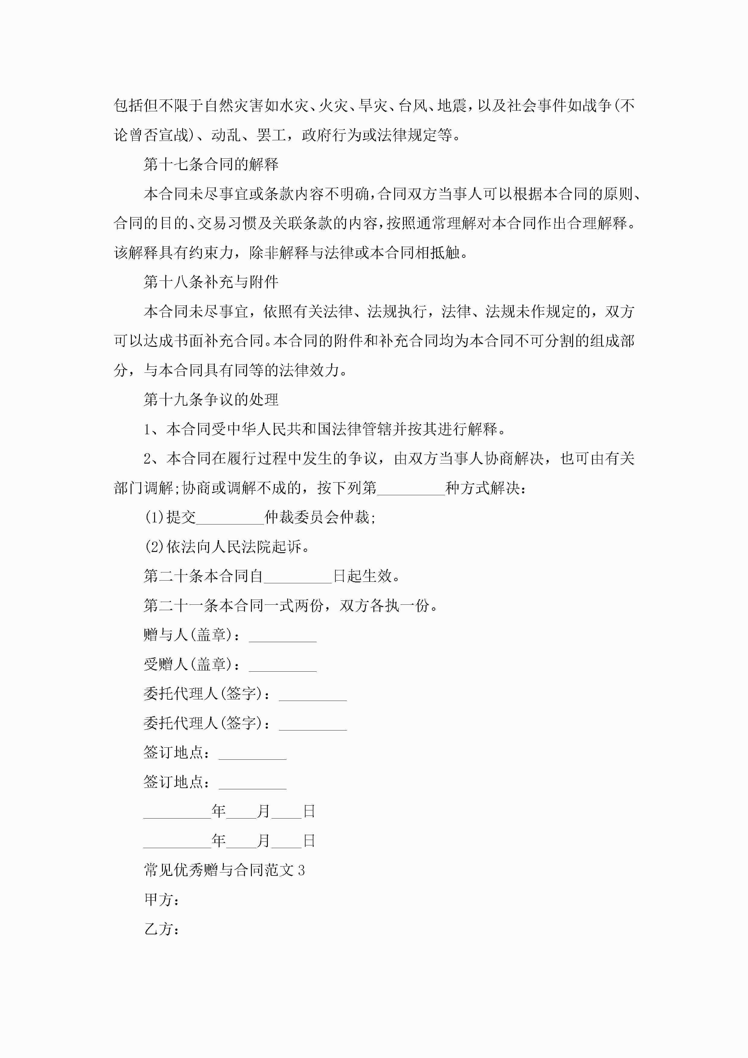常见优秀赠与合同范文5篇jugei3月23日 01:34发布关注242 常见优秀赠与合同范文5篇此内容为付费资源,请付费后查看¥10.9 单篇文档限时特惠¥15个人会员开通企业会员开通立即下载无需登陆!可直接快捷下载单个模板付费资源© 版权声明THE ENDWord模板# 实用文档# 实用模板# 合同模板# 赠与合同 如有问题,可点击最底部“联系我们”联系客服 分享QQ空间微博QQ好友海报分享复制链接收藏