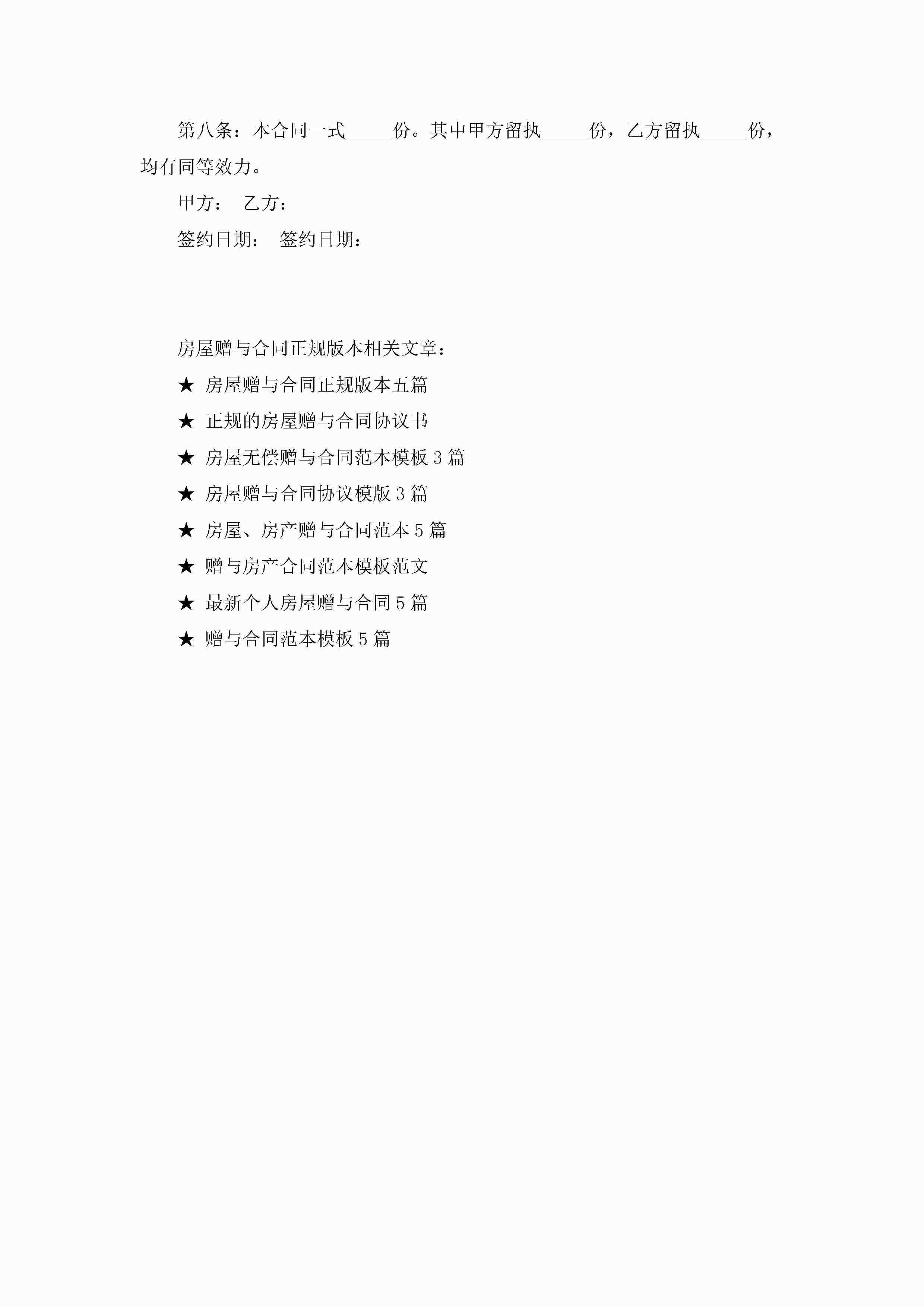 房屋赠与合同正规版本五篇jugei3月23日 01:34发布关注210 房屋赠与合同正规版本五篇此内容为付费资源,请付费后查看¥10.9 单篇文档限时特惠¥15个人会员开通企业会员开通立即下载无需登陆!可直接快捷下载单个模板付费资源© 版权声明THE ENDWord模板# 实用文档# 实用模板# 合同模板# 赠与合同 如有问题,可点击最底部“联系我们”联系客服 分享QQ空间微博QQ好友海报分享复制链接收藏