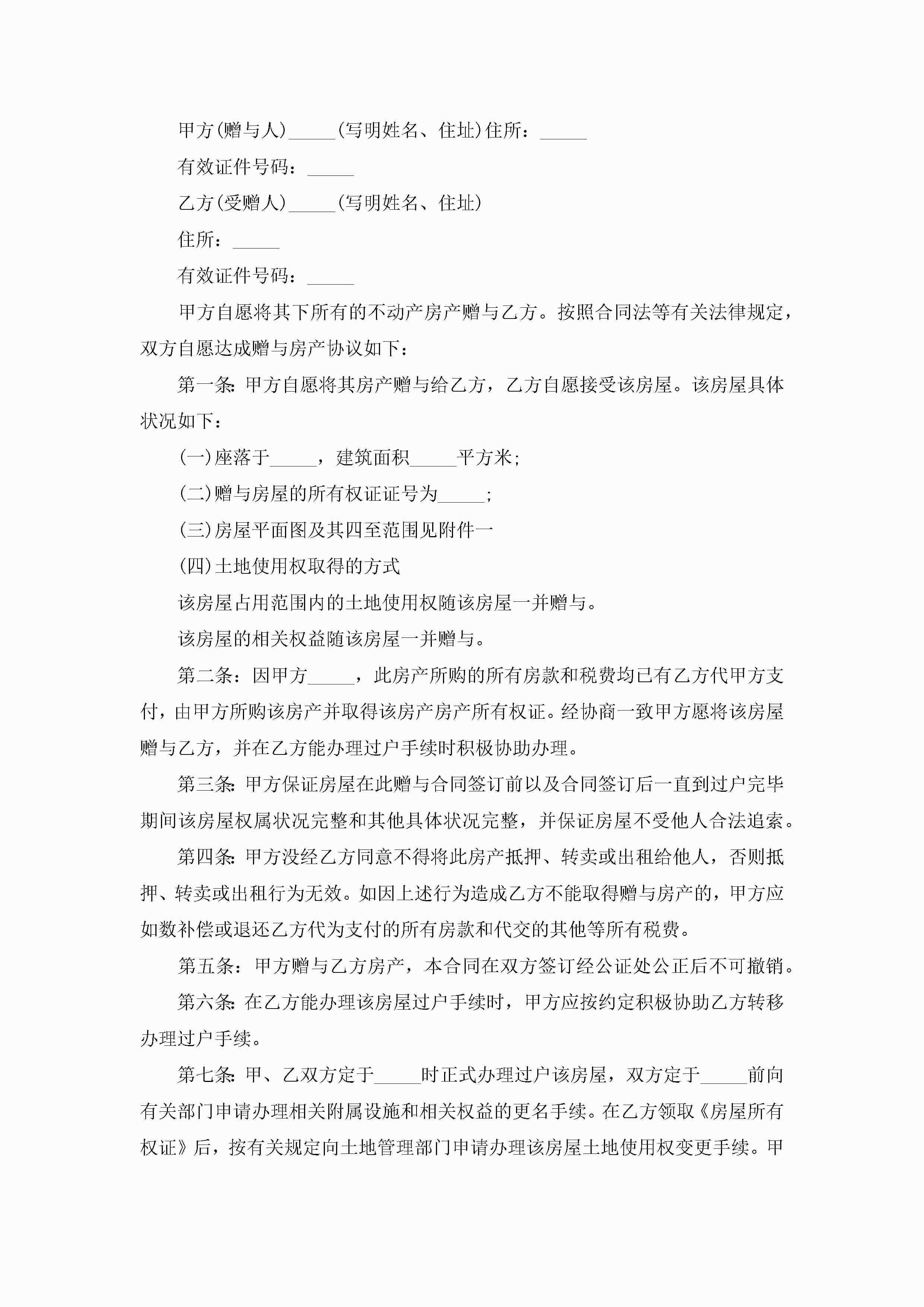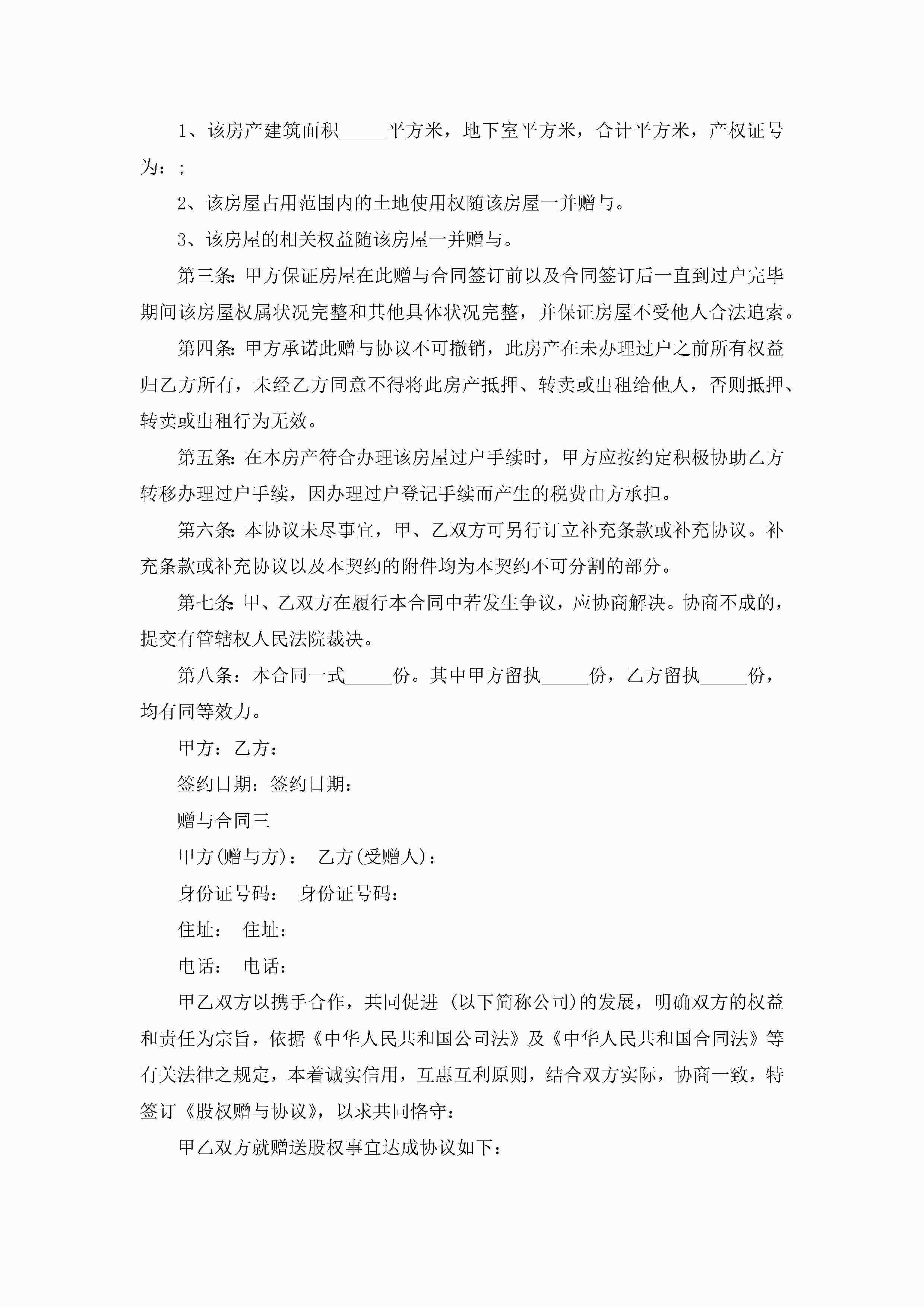 赠与合同范本模板5篇jugei3月23日 01:34发布关注228 赠与合同范本模板5篇此内容为付费资源,请付费后查看¥10.9 单篇文档限时特惠¥15个人会员开通企业会员开通立即下载无需登陆!可直接快捷下载单个模板付费资源© 版权声明THE ENDWord模板# 实用文档# 实用模板# 合同模板# 赠与合同 如有问题,可点击最底部“联系我们”联系客服 分享QQ空间微博QQ好友海报分享复制链接收藏