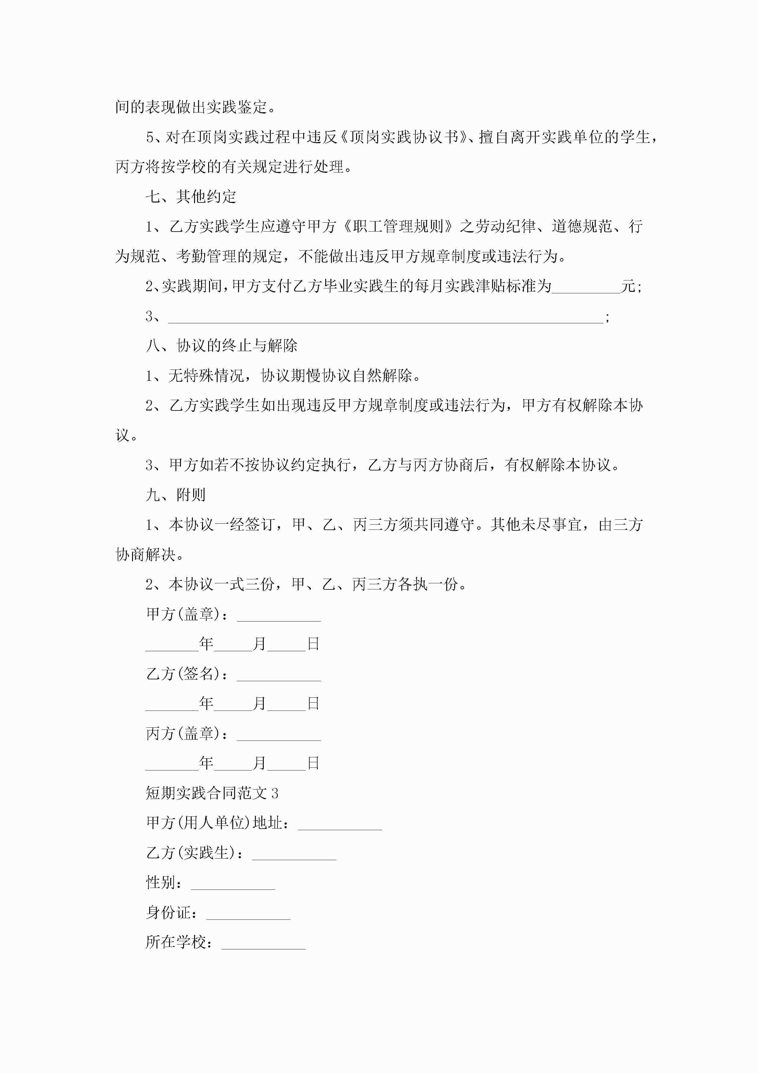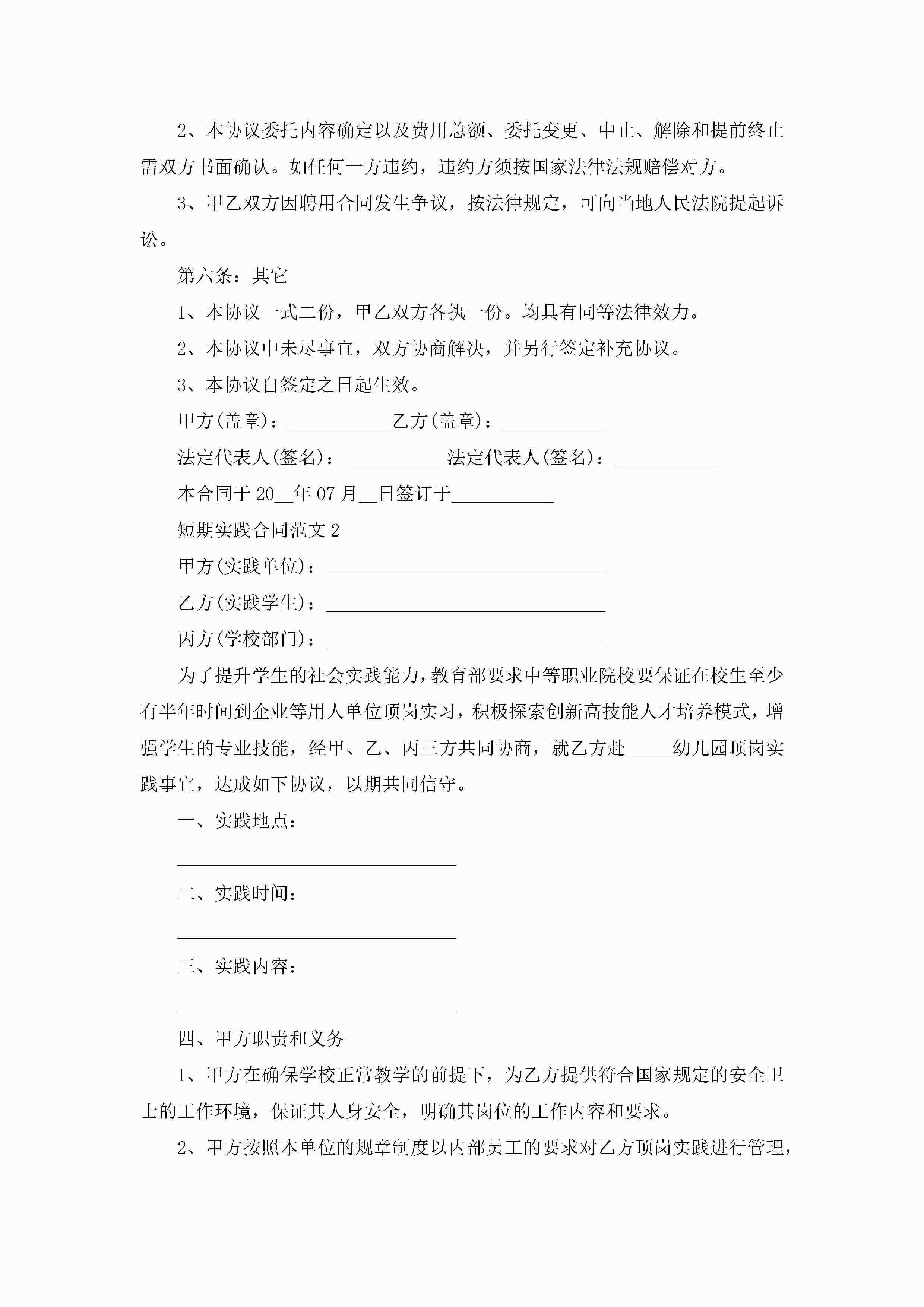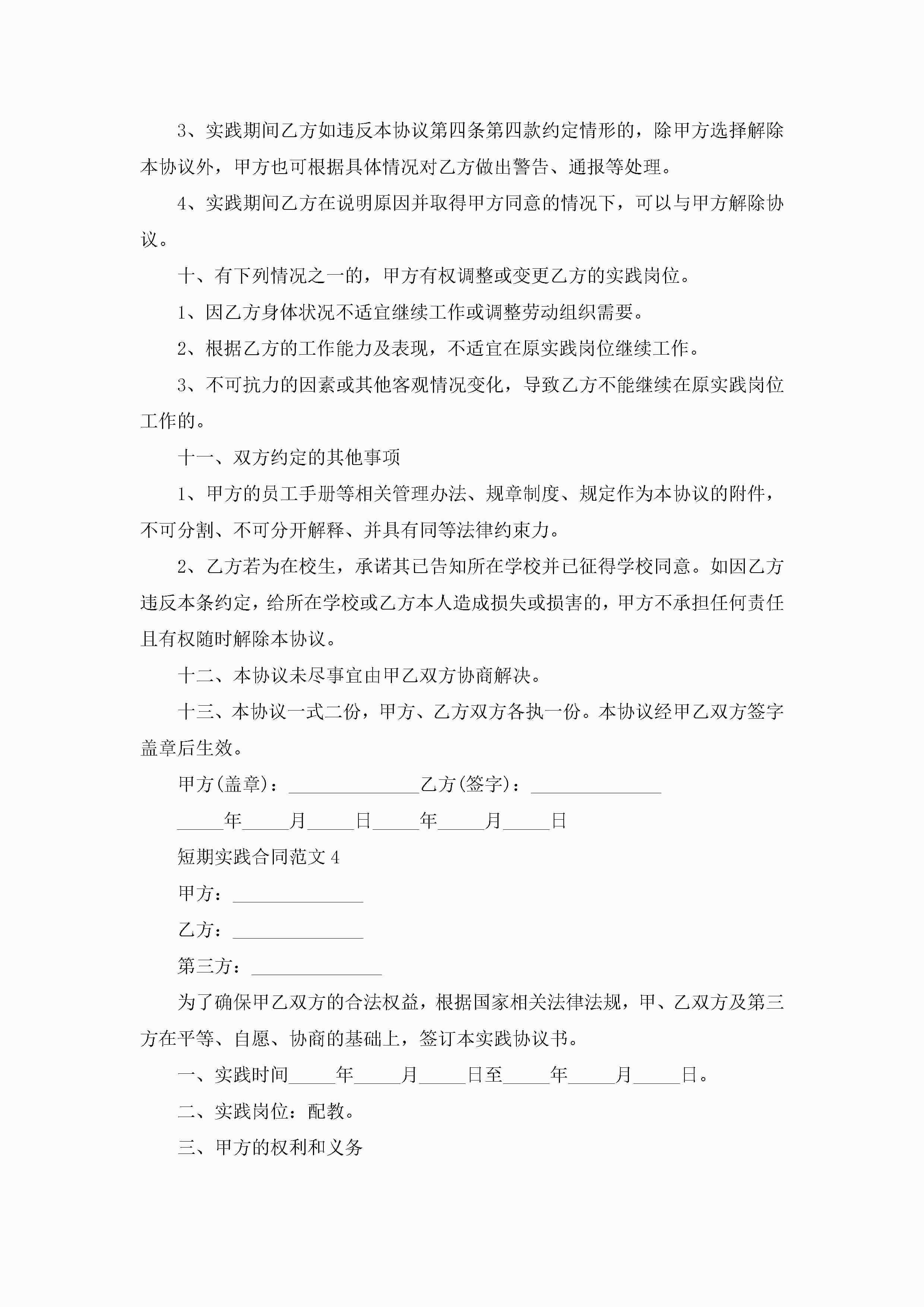 短期实践合同范文5篇jugei3月23日 01:34发布关注219 短期实践合同范文5篇此内容为付费资源,请付费后查看¥10.9 单篇文档限时特惠¥15个人会员开通企业会员开通立即下载无需登陆!可直接快捷下载单个模板付费资源© 版权声明THE ENDWord模板# 实用文档# 实用模板# 合同模板# 实践合同 如有问题,可点击最底部“联系我们”联系客服 分享QQ空间微博QQ好友海报分享复制链接收藏