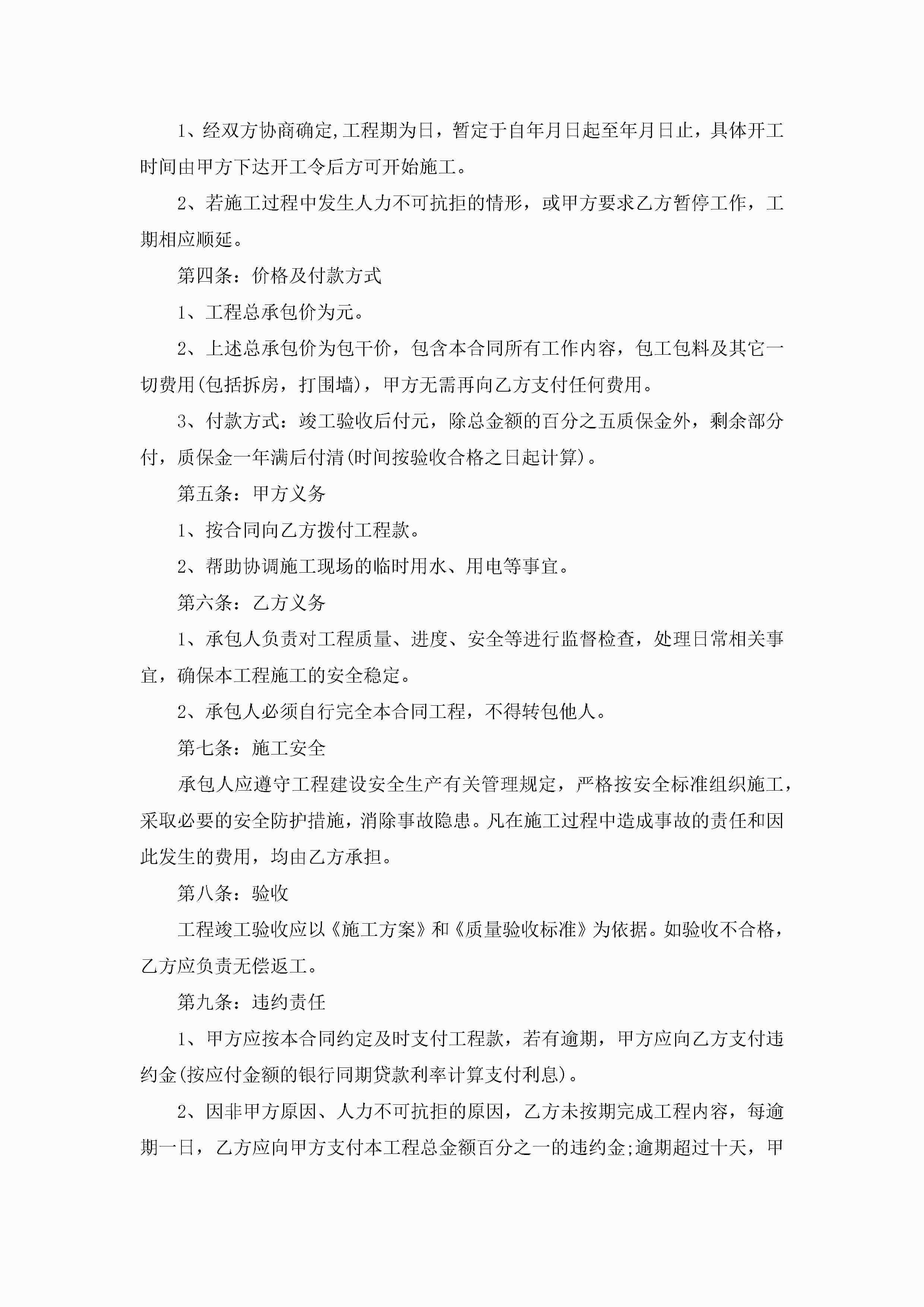 工程总承包合同示范文本范文jugei3月23日 01:35发布关注282 工程总承包合同示范文本范文此内容为付费资源,请付费后查看¥10.9 单篇文档限时特惠¥15个人会员开通企业会员开通立即下载无需登陆!可直接快捷下载单个模板付费资源© 版权声明THE ENDWord模板# 实用文档# 实用模板# 合同模板# 承包合同 如有问题,可点击最底部“联系我们”联系客服 分享QQ空间微博QQ好友海报分享复制链接收藏