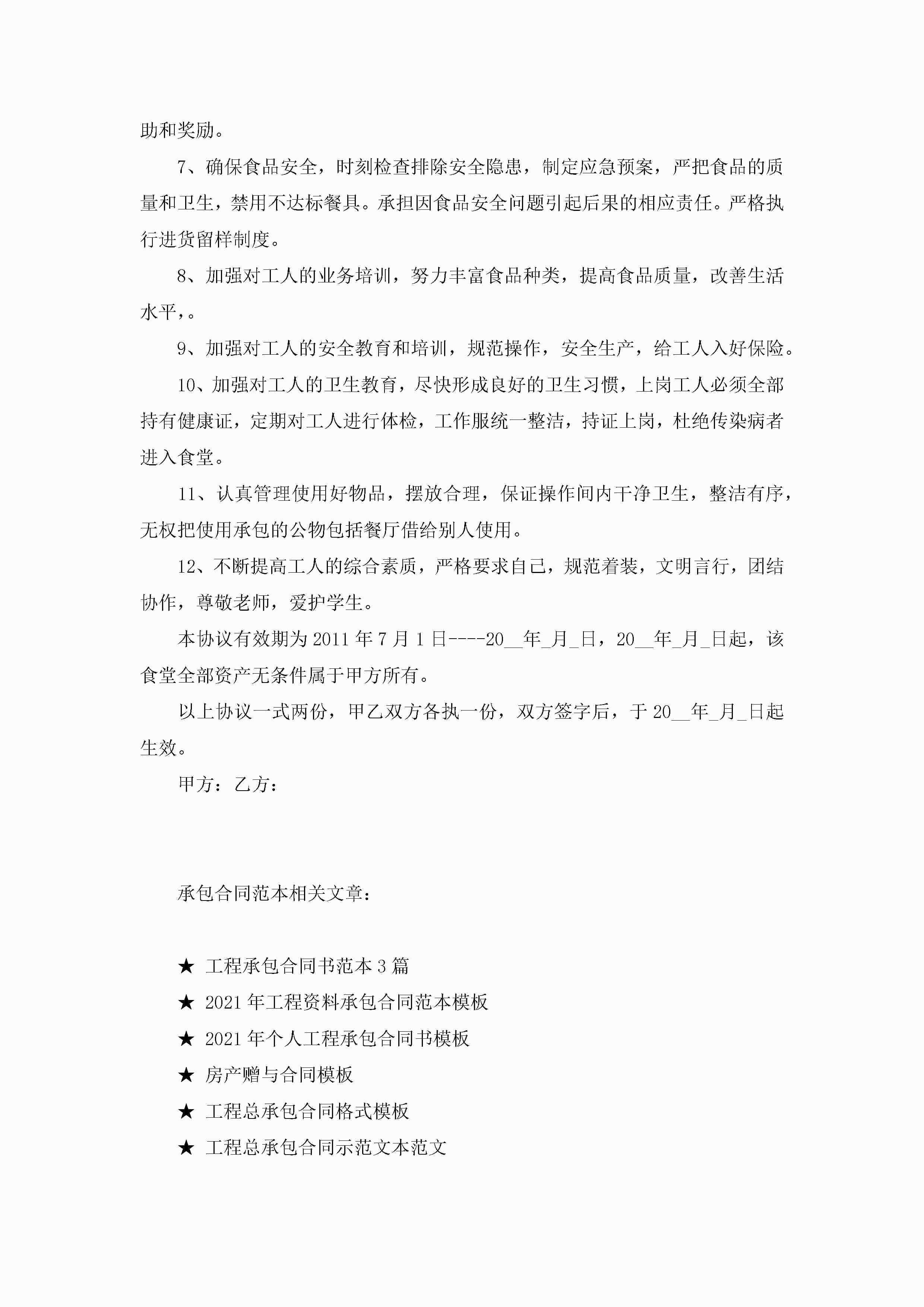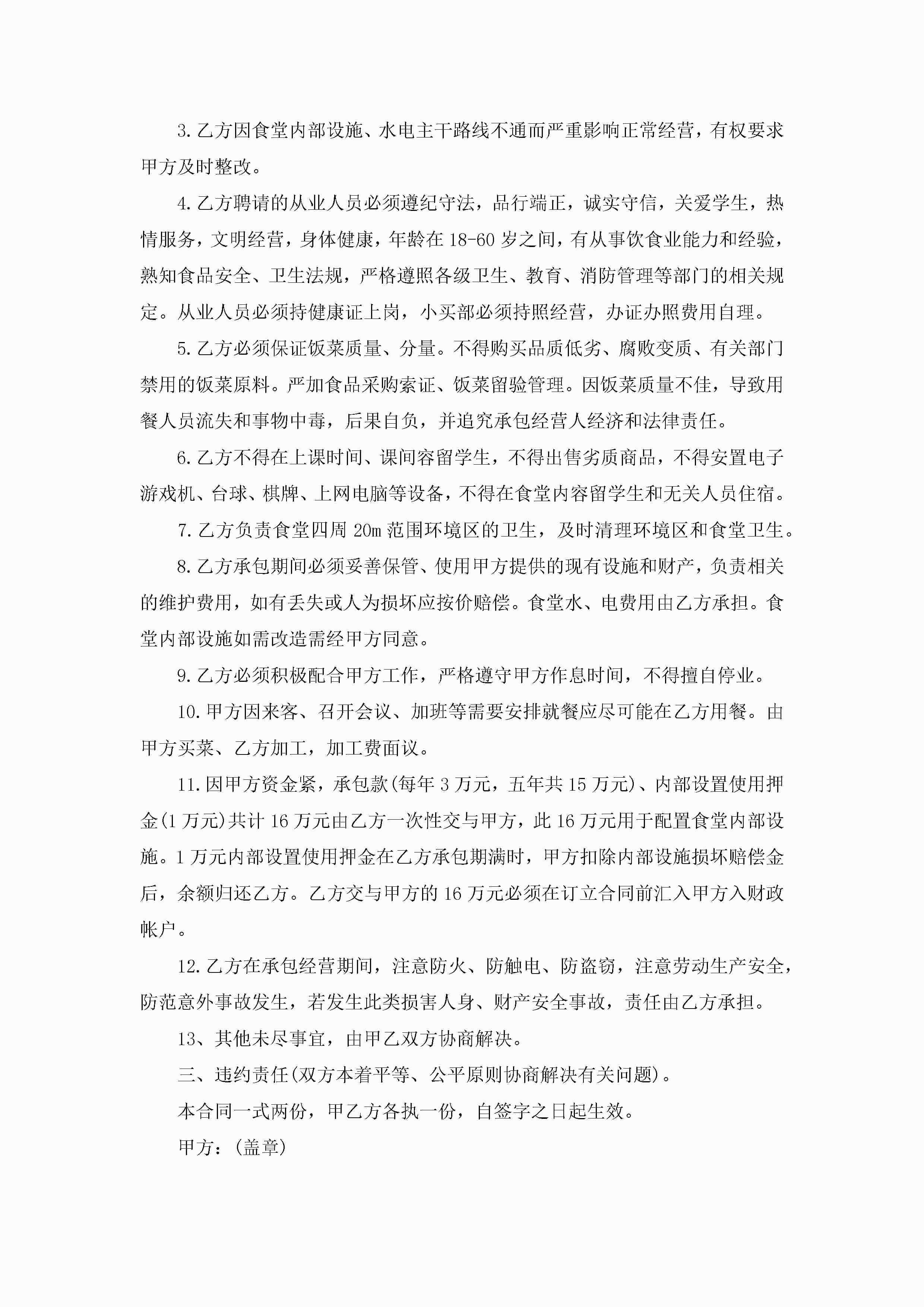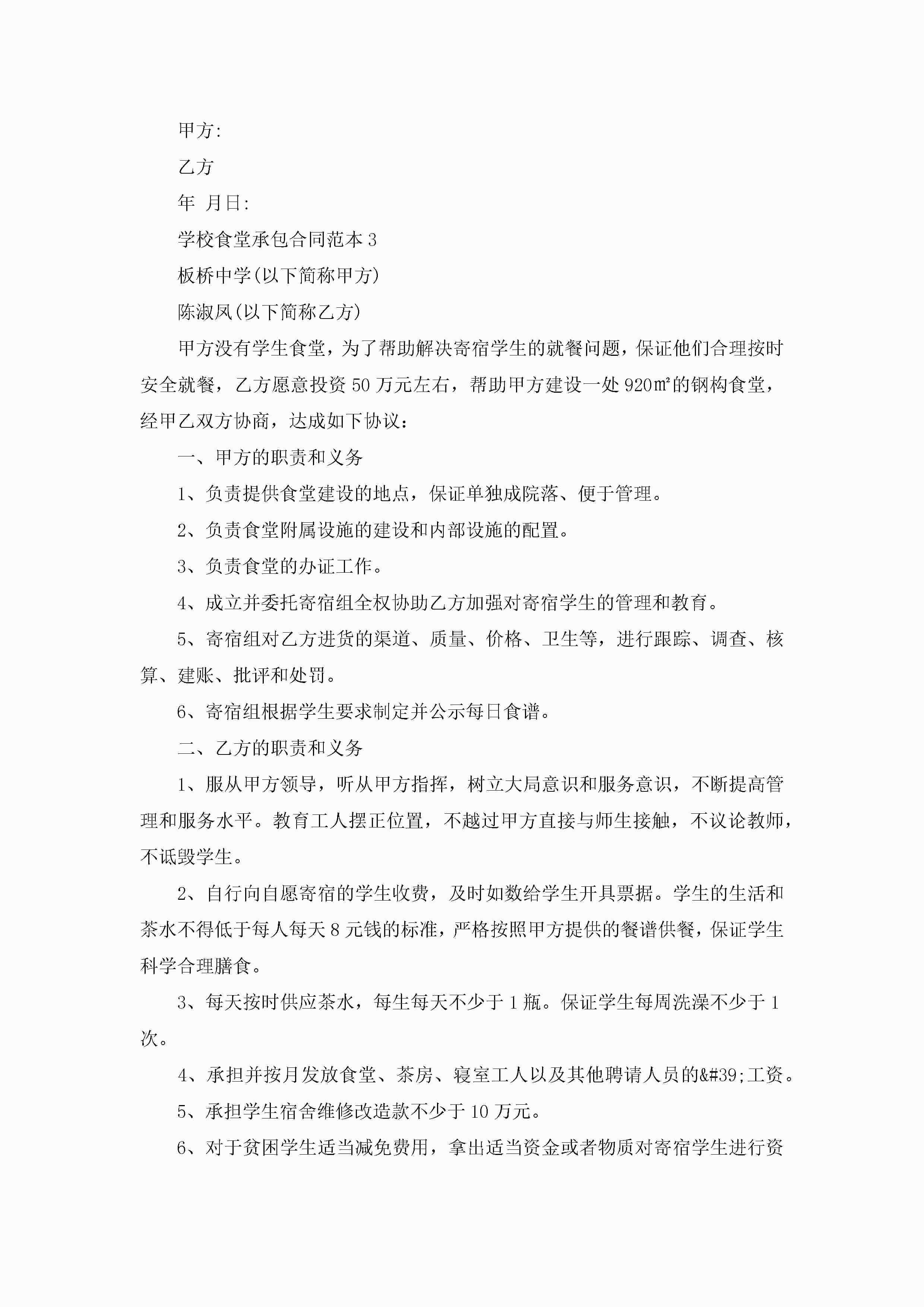 学校食堂承包合同范本模板jugei3月23日 01:35发布关注245 学校食堂承包合同范本模板此内容为付费资源,请付费后查看¥10.9 单篇文档限时特惠¥15个人会员开通企业会员开通立即下载无需登陆!可直接快捷下载单个模板付费资源© 版权声明THE ENDWord模板# 实用文档# 实用模板# 合同模板# 承包合同 如有问题,可点击最底部“联系我们”联系客服 分享QQ空间微博QQ好友海报分享复制链接收藏