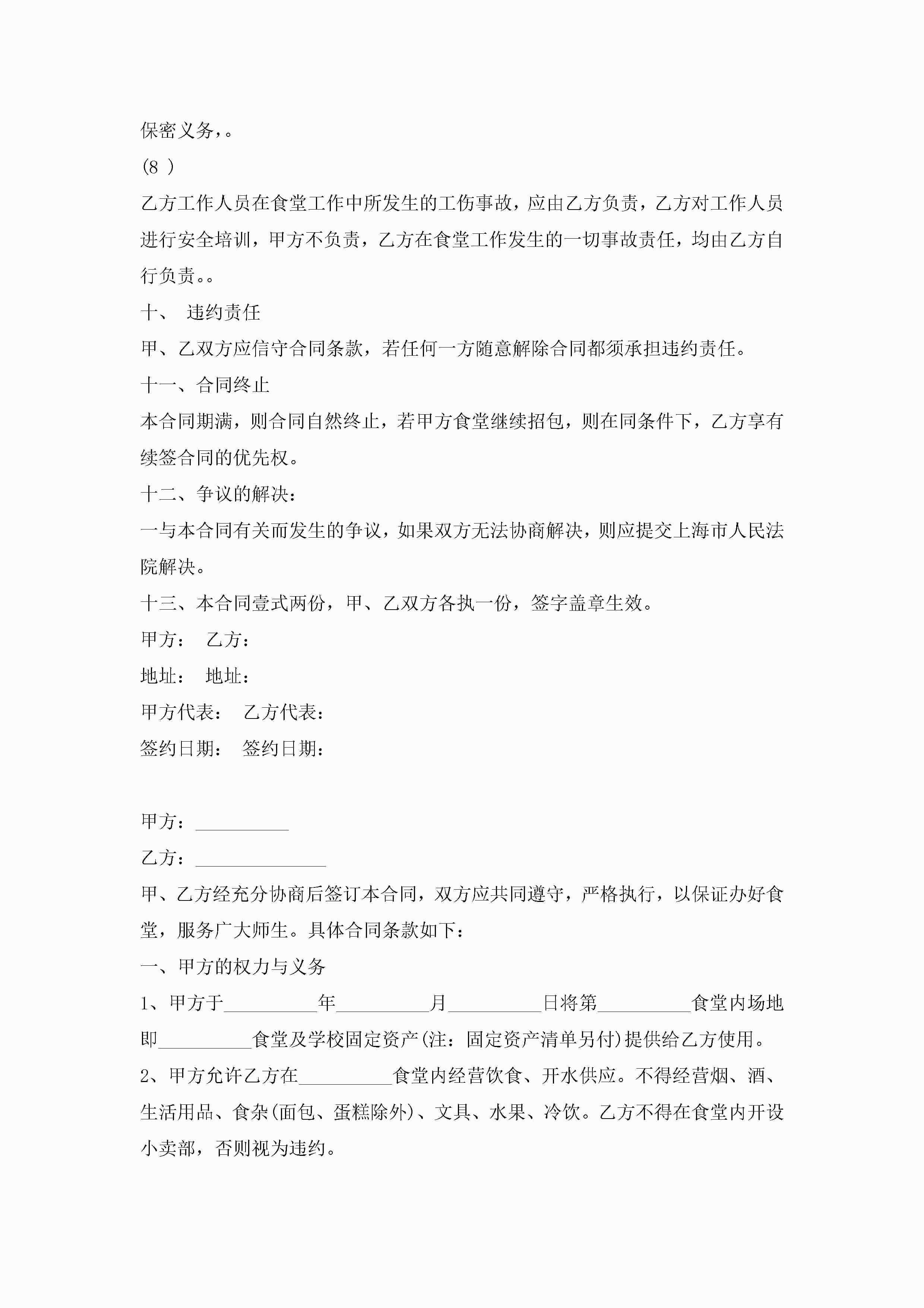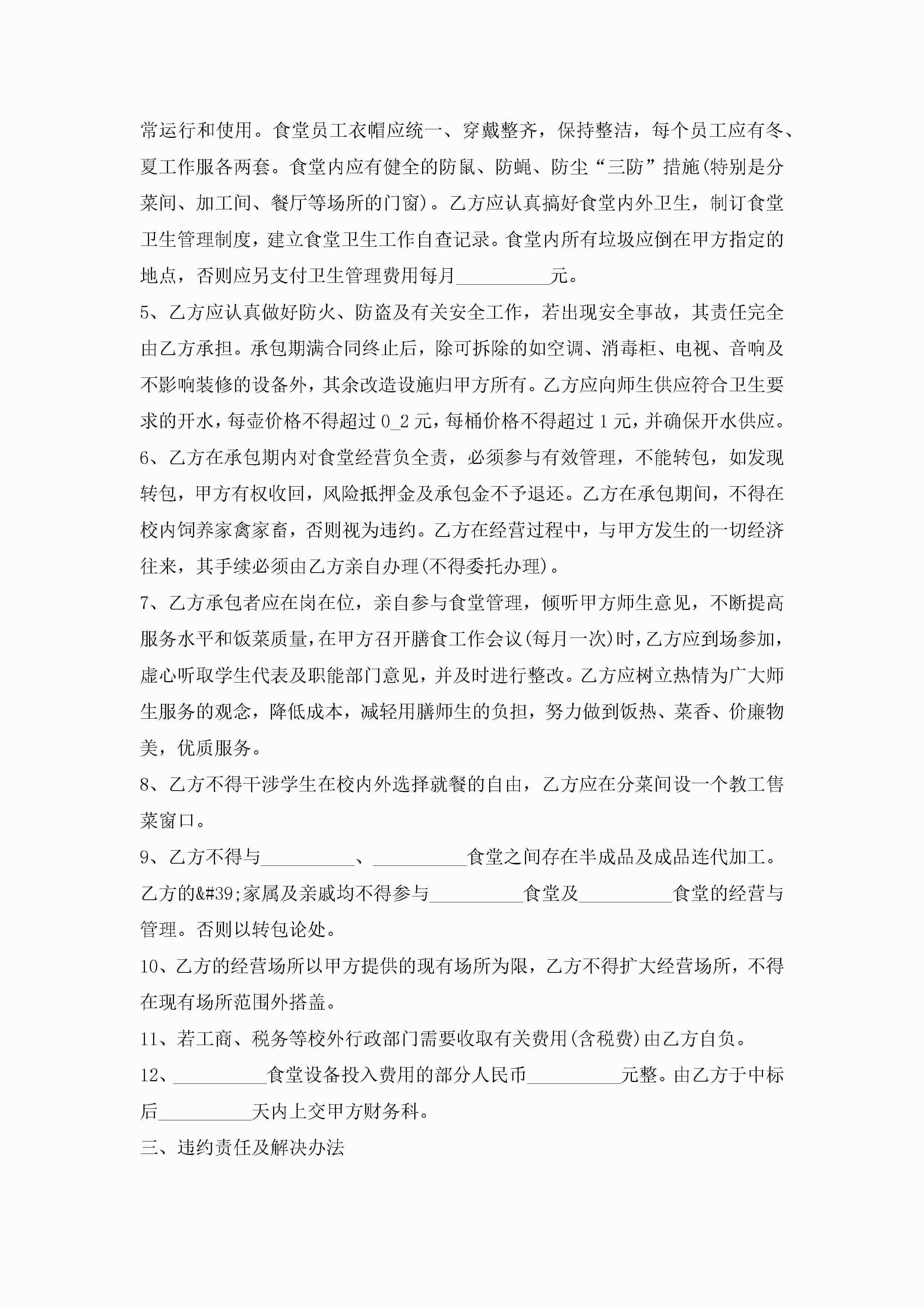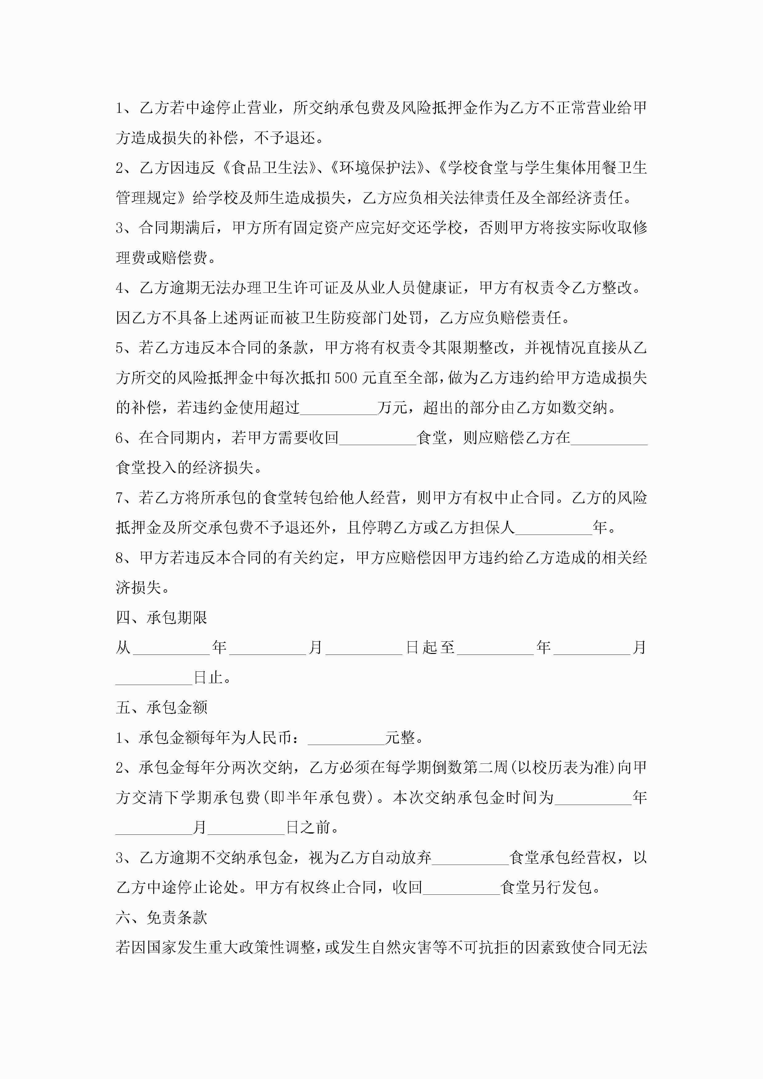 食堂承包长期合同范本模板jugei3月23日 01:35发布关注195 食堂承包长期合同范本模板此内容为付费资源,请付费后查看¥10.9 单篇文档限时特惠¥15个人会员开通企业会员开通立即下载无需登陆!可直接快捷下载单个模板付费资源© 版权声明THE ENDWord模板# 实用文档# 实用模板# 合同模板# 承包合同 如有问题,可点击最底部“联系我们”联系客服 分享QQ空间微博QQ好友海报分享复制链接收藏