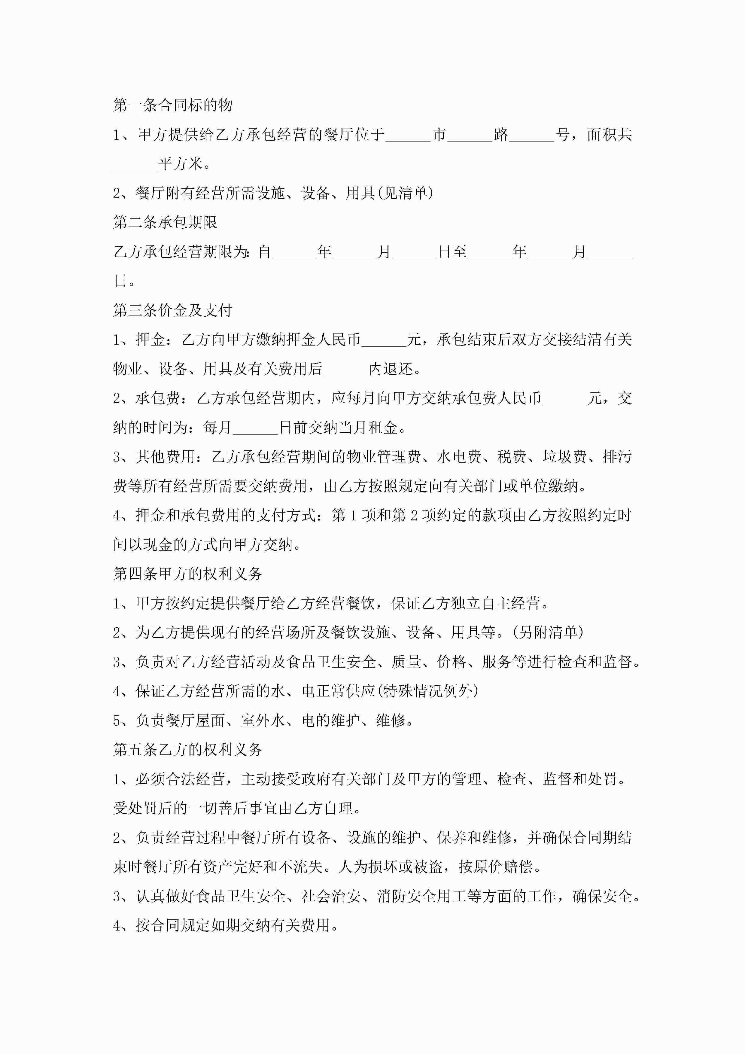 食堂承包合同协议书范本5篇jugei3月23日 01:35发布关注270 食堂承包合同协议书范本5篇此内容为付费资源,请付费后查看¥10.9 单篇文档限时特惠¥15个人会员开通企业会员开通立即下载无需登陆!可直接快捷下载单个模板付费资源© 版权声明THE ENDWord模板# 实用文档# 实用模板# 合同模板# 承包合同 如有问题,可点击最底部“联系我们”联系客服 分享QQ空间微博QQ好友海报分享复制链接收藏