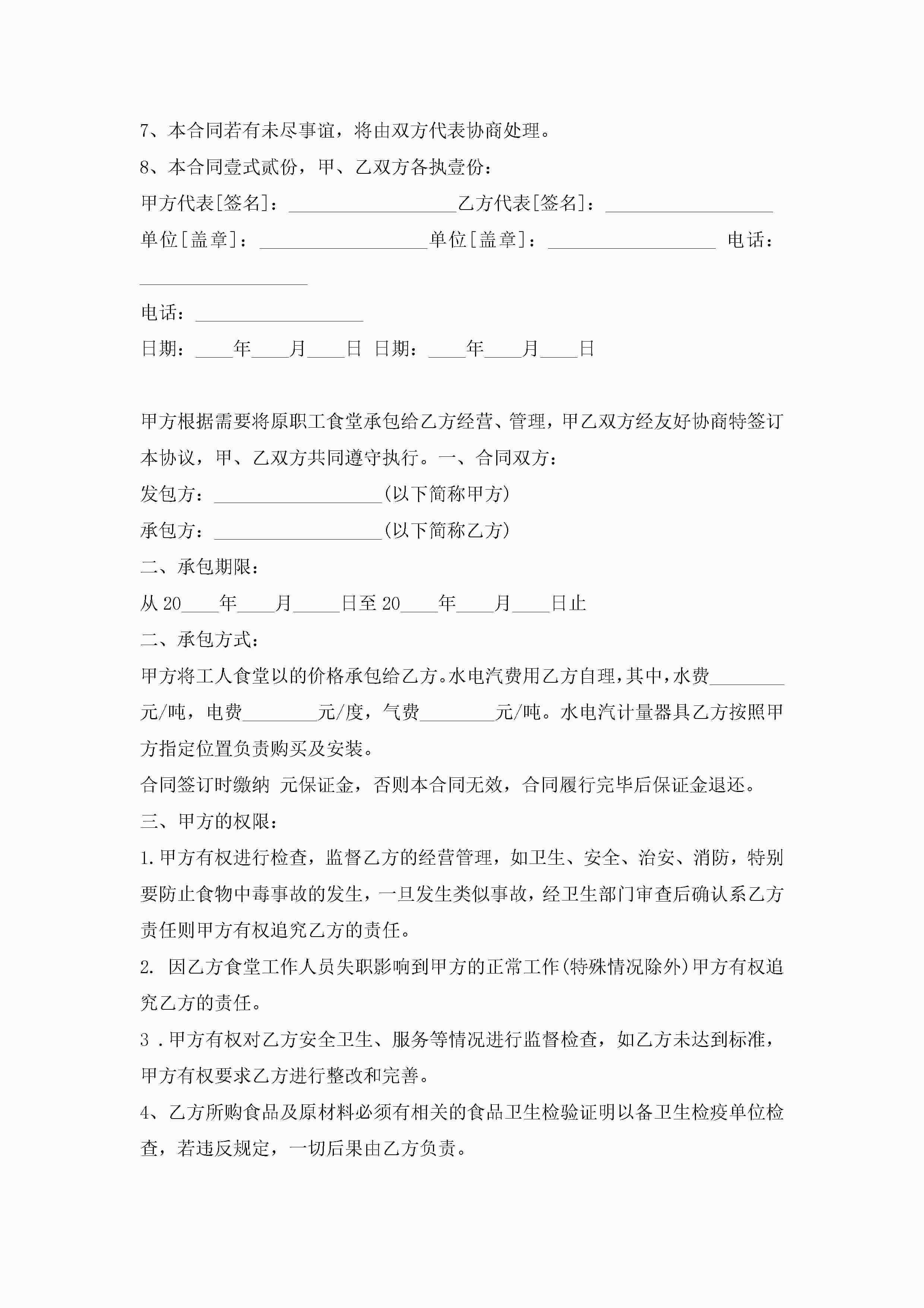 餐饮公司食堂承包合同3篇模板jugei3月23日 01:35发布关注199 餐饮公司食堂承包合同3篇模板此内容为付费资源,请付费后查看¥10.9 单篇文档限时特惠¥15个人会员开通企业会员开通立即下载无需登陆!可直接快捷下载单个模板付费资源© 版权声明THE ENDWord模板# 实用文档# 实用模板# 合同模板# 承包合同 如有问题,可点击最底部“联系我们”联系客服 分享QQ空间微博QQ好友海报分享复制链接收藏