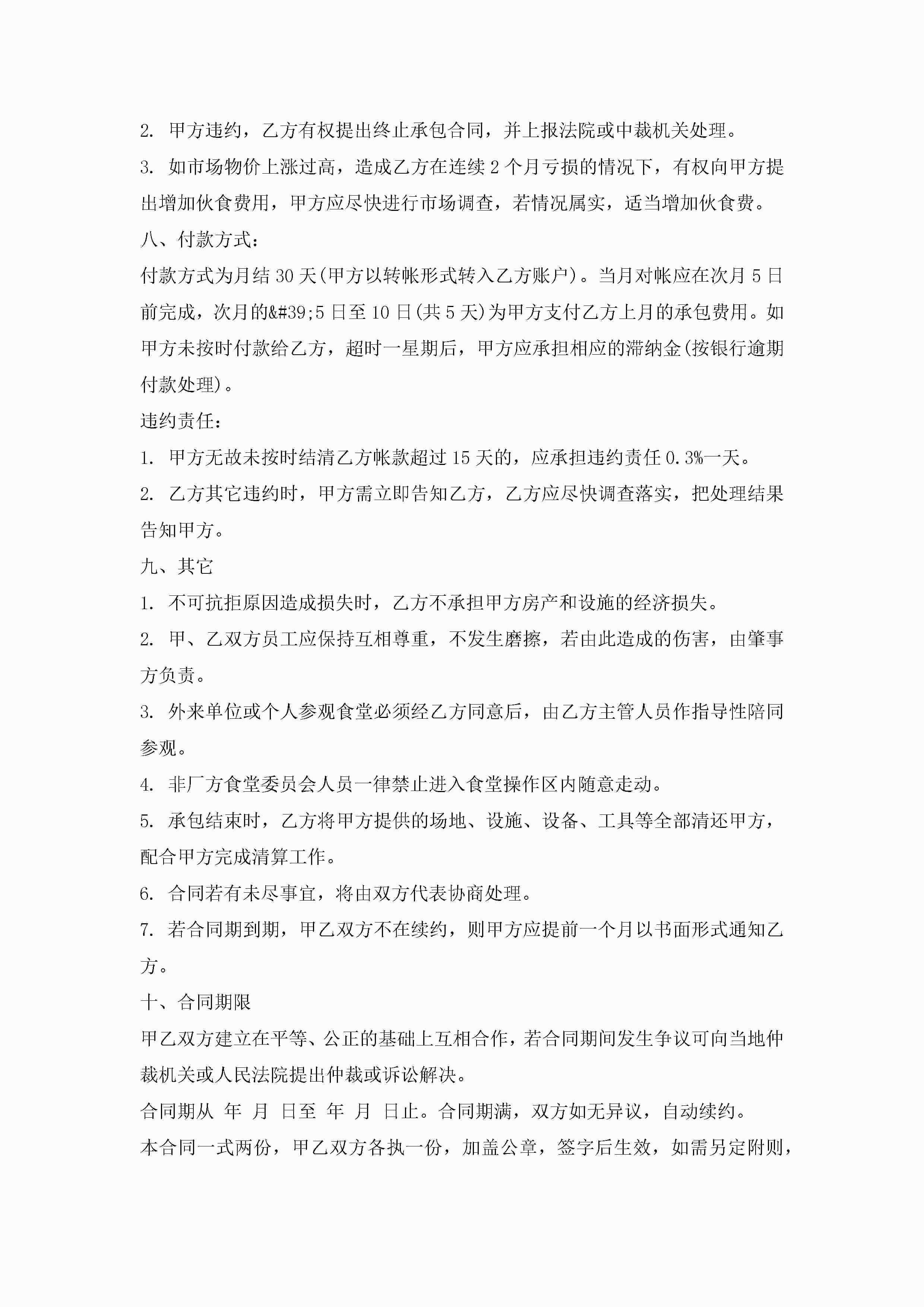 饭堂承包合同协议书3篇jugei3月23日 01:35发布关注237 饭堂承包合同协议书3篇此内容为付费资源,请付费后查看¥10.9 单篇文档限时特惠¥15个人会员开通企业会员开通立即下载无需登陆!可直接快捷下载单个模板付费资源© 版权声明THE ENDWord模板# 实用文档# 实用模板# 合同模板# 承包合同 如有问题,可点击最底部“联系我们”联系客服 分享QQ空间微博QQ好友海报分享复制链接收藏