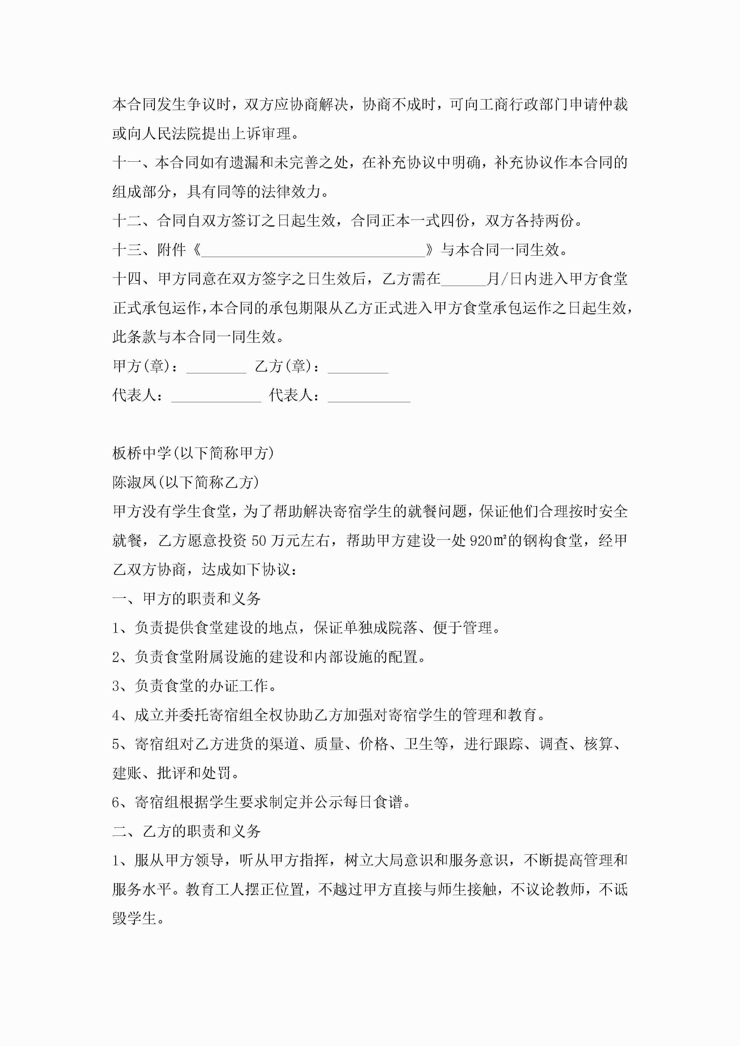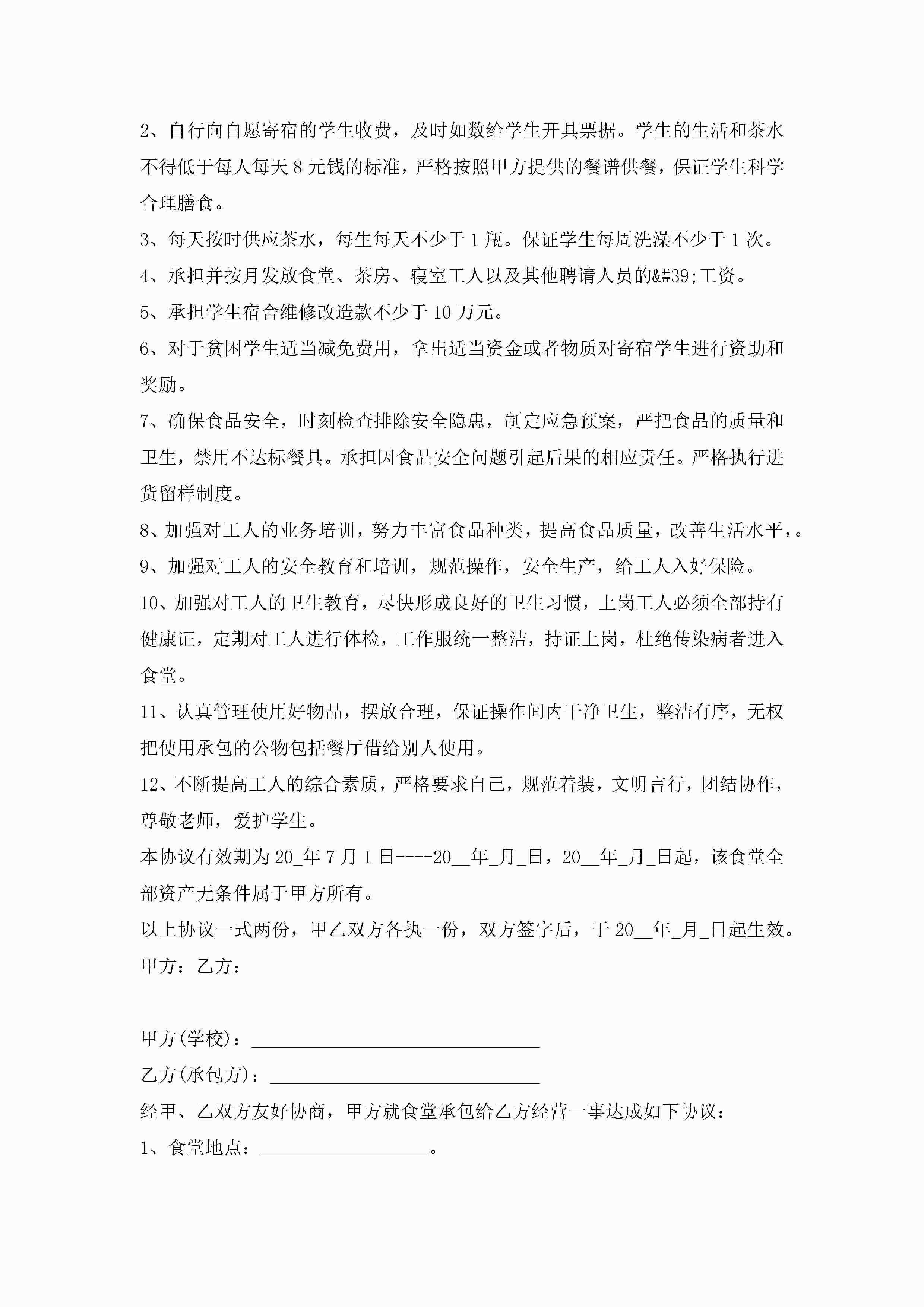 饭堂承包经营合同模板jugei3月23日 01:35发布关注254 饭堂承包经营合同模板此内容为付费资源,请付费后查看¥10.9 单篇文档限时特惠¥15个人会员开通企业会员开通立即下载无需登陆!可直接快捷下载单个模板付费资源© 版权声明THE ENDWord模板# 实用文档# 实用模板# 合同模板# 承包合同 如有问题,可点击最底部“联系我们”联系客服 分享QQ空间微博QQ好友海报分享复制链接收藏