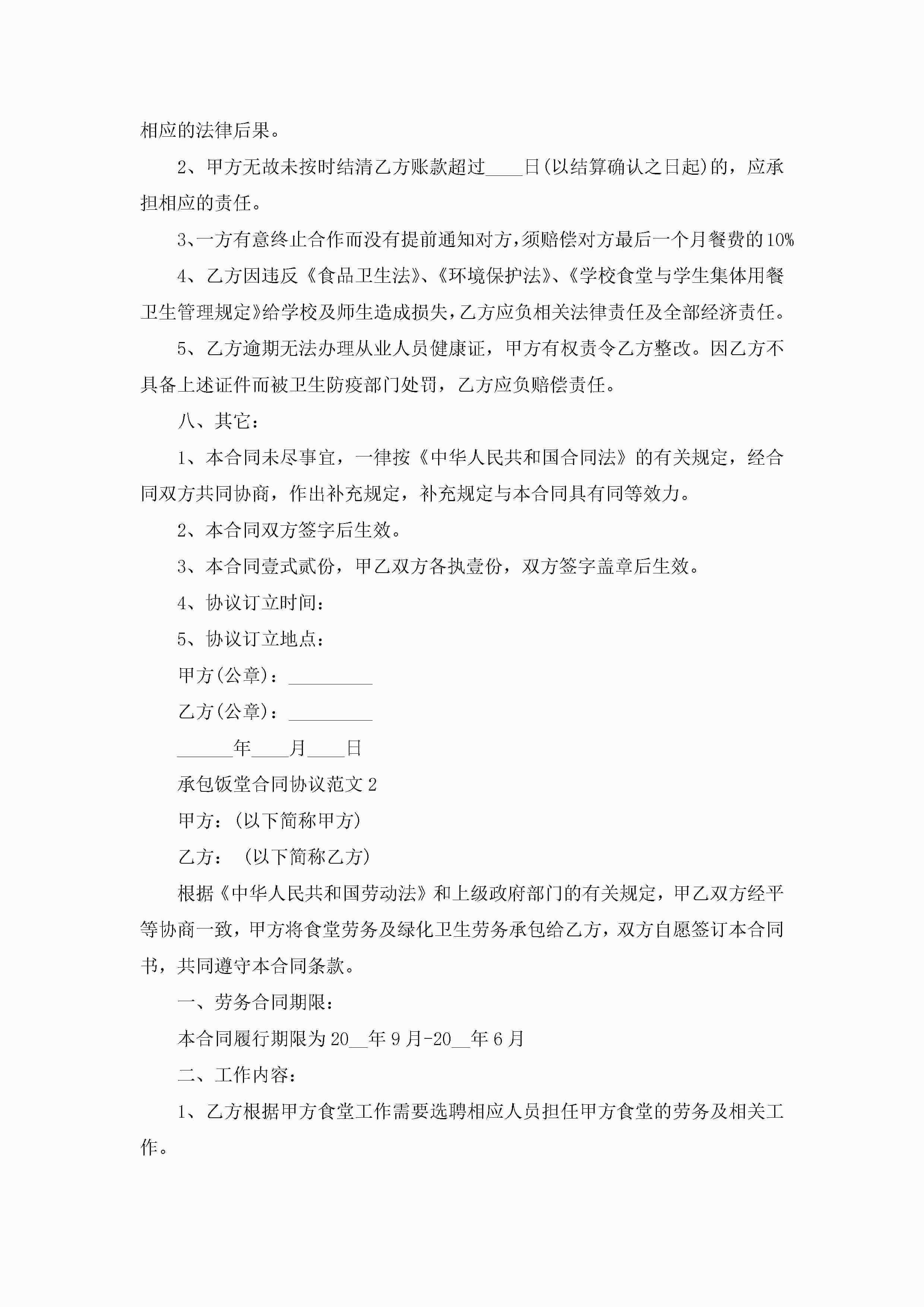 承包饭堂合同协议范文_食堂承包经营协议jugei3月23日 01:35发布关注192 承包饭堂合同协议范文_食堂承包经营协议此内容为付费资源,请付费后查看¥10.9 单篇文档限时特惠¥15个人会员开通企业会员开通立即下载无需登陆!可直接快捷下载单个模板付费资源© 版权声明THE ENDWord模板# 实用文档# 实用模板# 合同模板# 承包合同 如有问题,可点击最底部“联系我们”联系客服 分享QQ空间微博QQ好友海报分享复制链接收藏