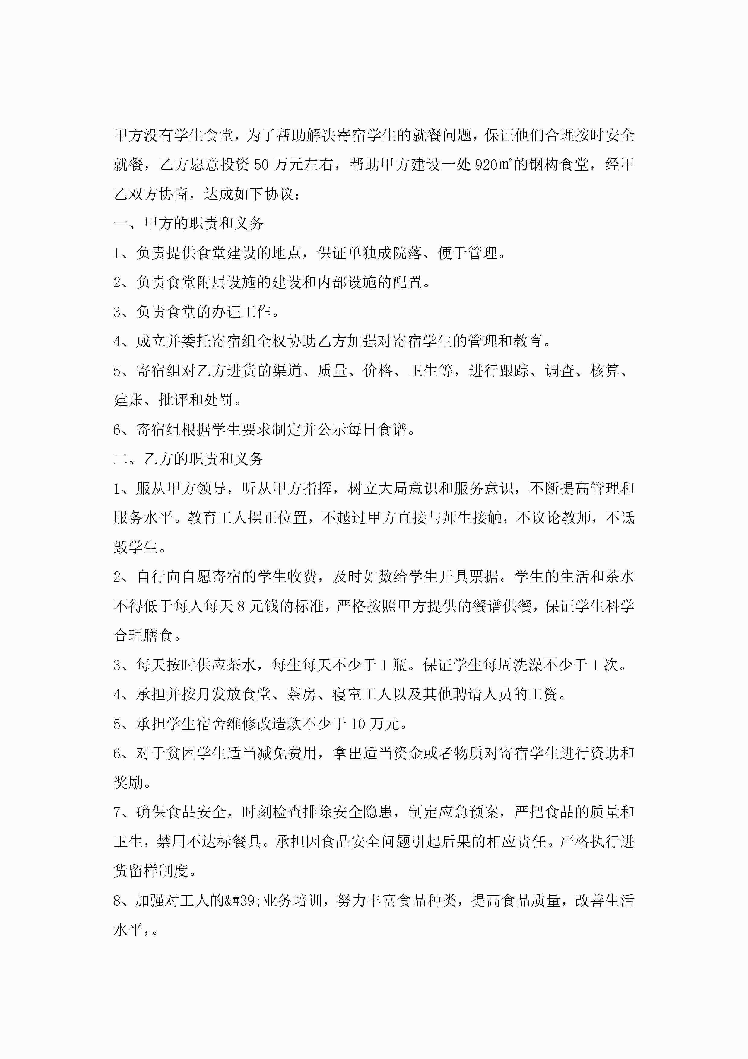 年饭堂承包合同模板jugei3月23日 01:35发布关注196 年饭堂承包合同模板此内容为付费资源,请付费后查看¥10.9 单篇文档限时特惠¥15个人会员开通企业会员开通立即下载无需登陆!可直接快捷下载单个模板付费资源© 版权声明THE ENDWord模板# 实用文档# 实用模板# 合同模板# 承包合同 如有问题,可点击最底部“联系我们”联系客服 分享QQ空间微博QQ好友海报分享复制链接收藏