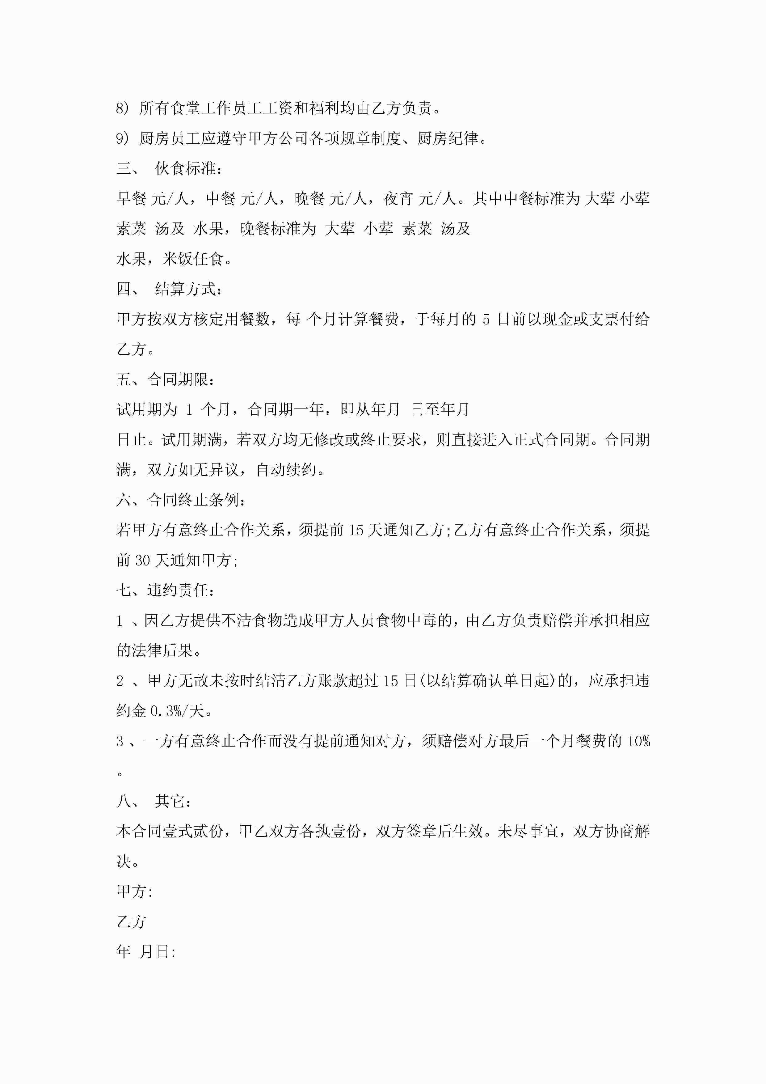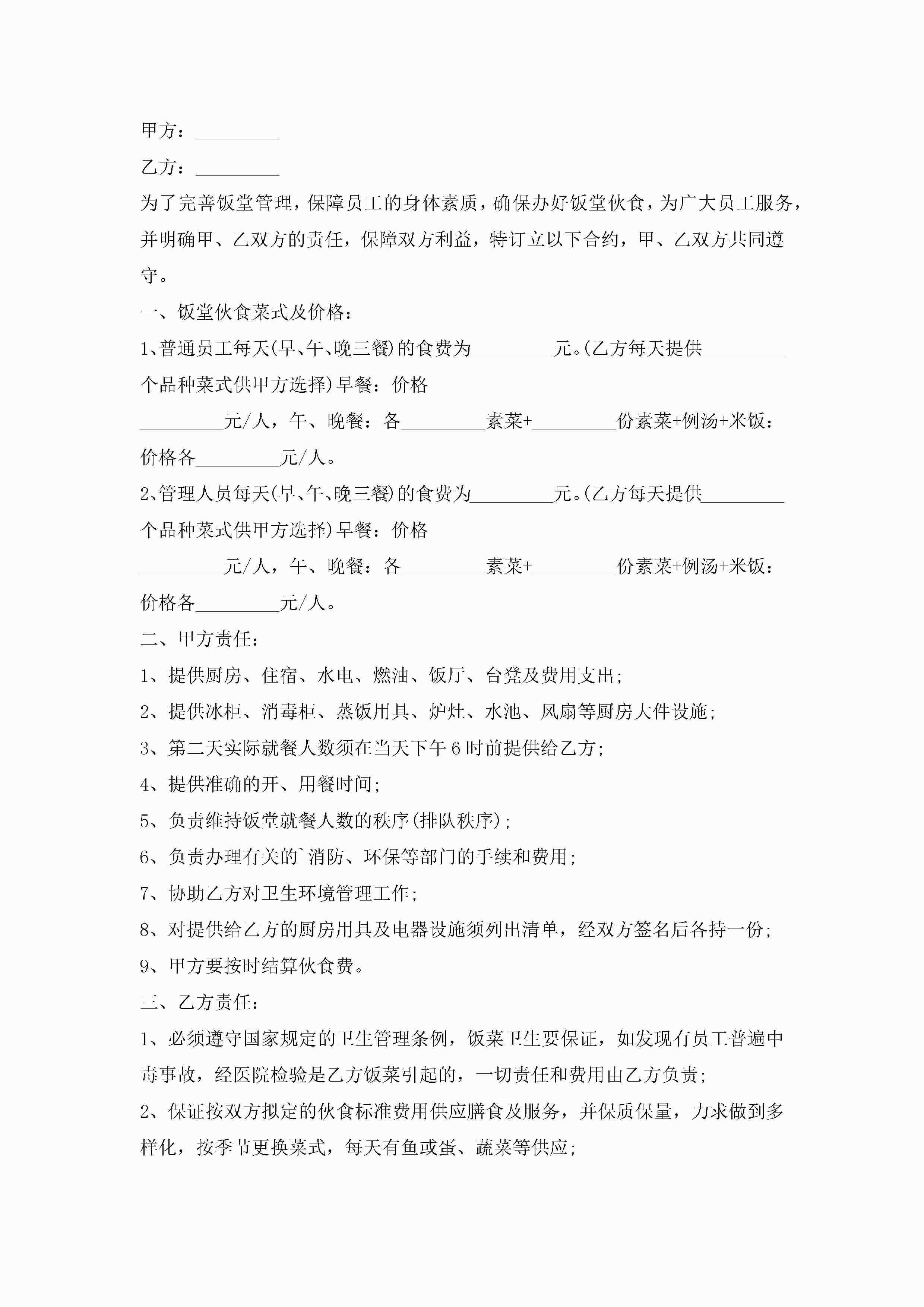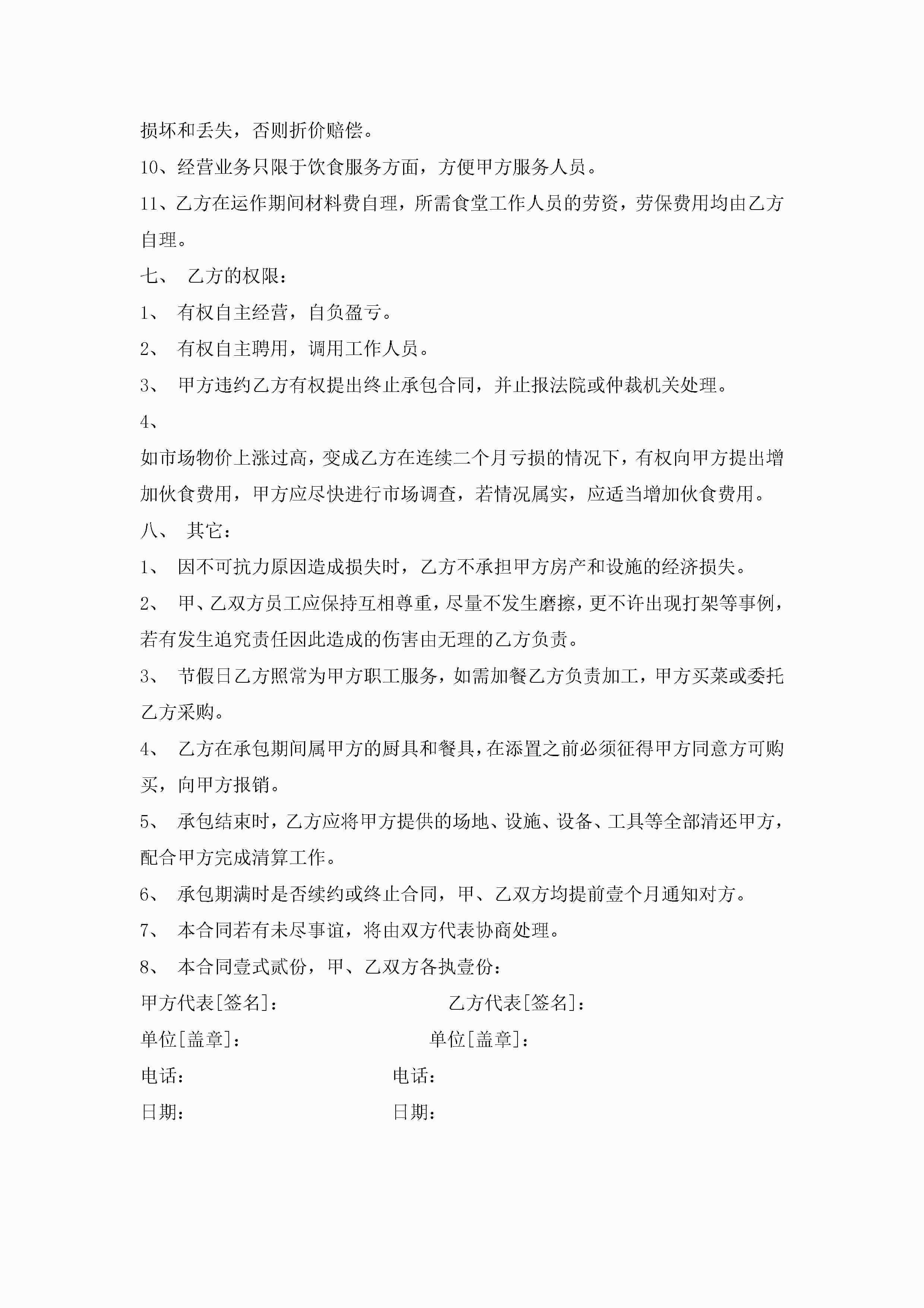 食堂饭堂承包合同范文模板jugei3月23日 01:35发布关注193 食堂饭堂承包合同范文模板此内容为付费资源,请付费后查看¥10.9 单篇文档限时特惠¥15个人会员开通企业会员开通立即下载无需登陆!可直接快捷下载单个模板付费资源© 版权声明THE ENDWord模板# 实用文档# 实用模板# 合同模板# 承包合同 如有问题,可点击最底部“联系我们”联系客服 分享QQ空间微博QQ好友海报分享复制链接收藏