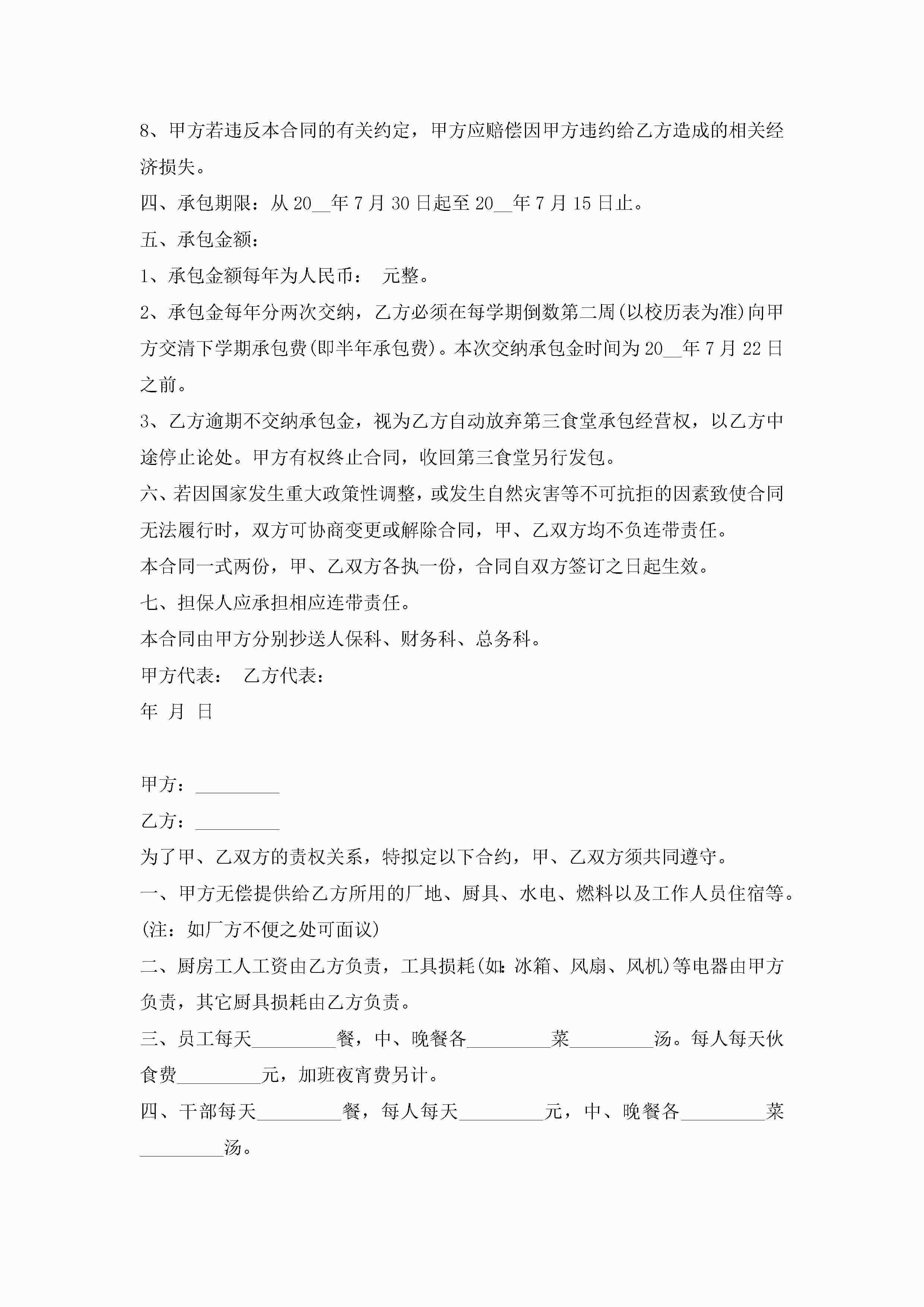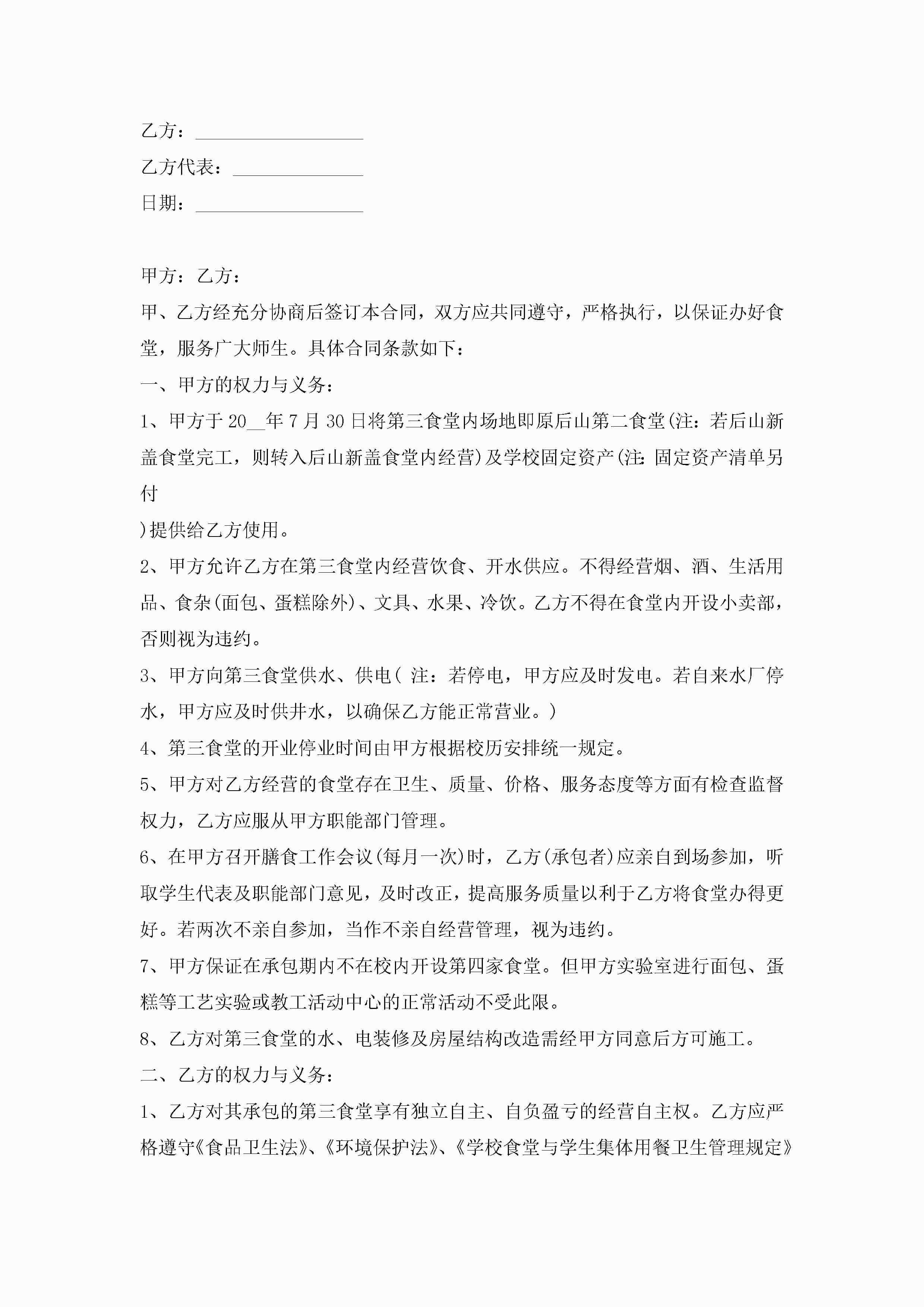食堂承包合同协议范本模板jugei3月23日 01:35发布关注200 食堂承包合同协议范本模板此内容为付费资源,请付费后查看¥10.9 单篇文档限时特惠¥15个人会员开通企业会员开通立即下载无需登陆!可直接快捷下载单个模板付费资源© 版权声明THE ENDWord模板# 实用文档# 实用模板# 合同模板# 承包合同 如有问题,可点击最底部“联系我们”联系客服 分享QQ空间微博QQ好友海报分享复制链接收藏