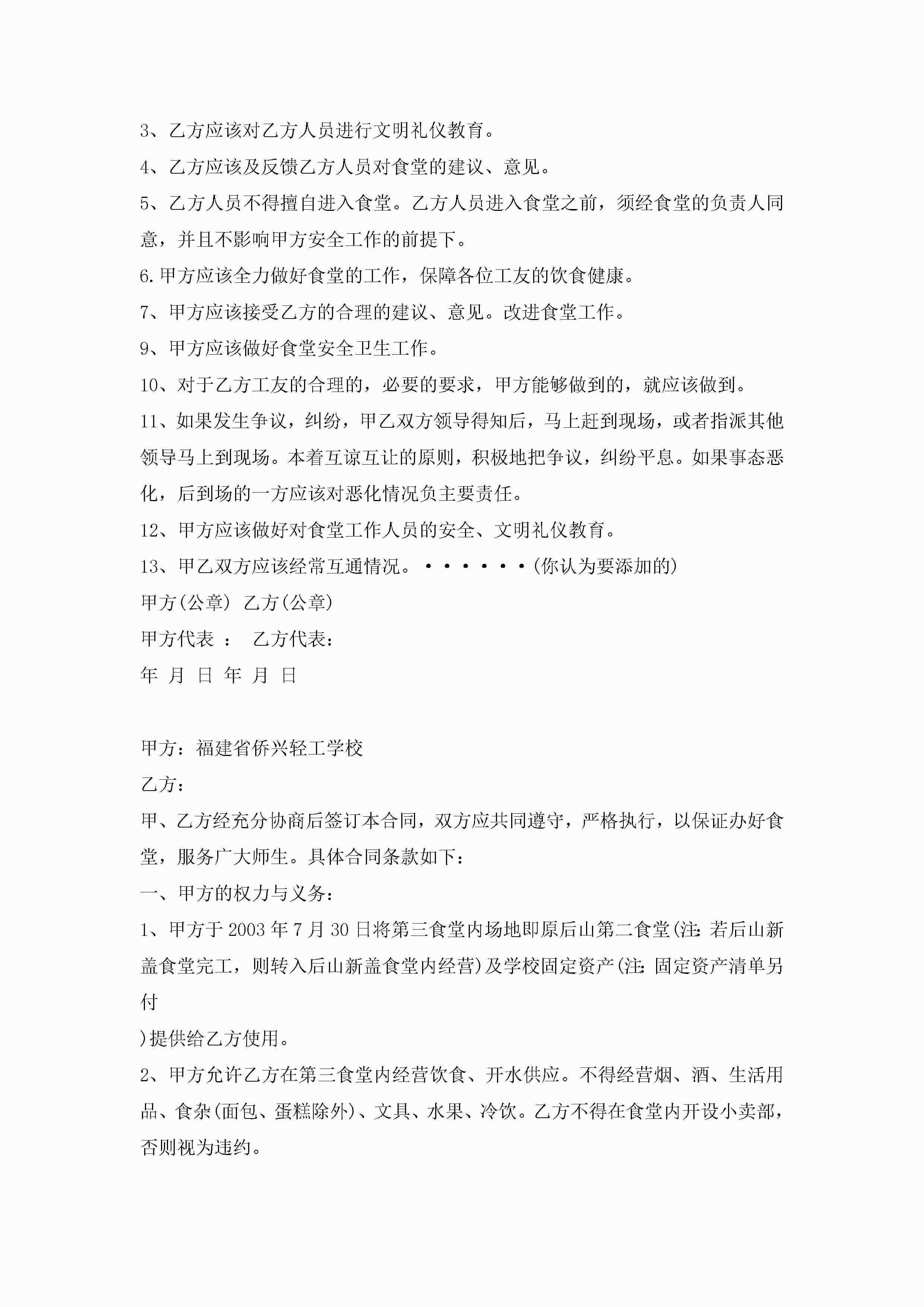 年食堂承包合同模板3篇范文jugei3月23日 01:35发布关注219 年食堂承包合同模板3篇范文此内容为付费资源,请付费后查看¥10.9 单篇文档限时特惠¥15个人会员开通企业会员开通立即下载无需登陆!可直接快捷下载单个模板付费资源© 版权声明THE ENDWord模板# 实用文档# 实用模板# 合同模板# 承包合同 如有问题,可点击最底部“联系我们”联系客服 分享QQ空间微博QQ好友海报分享复制链接收藏