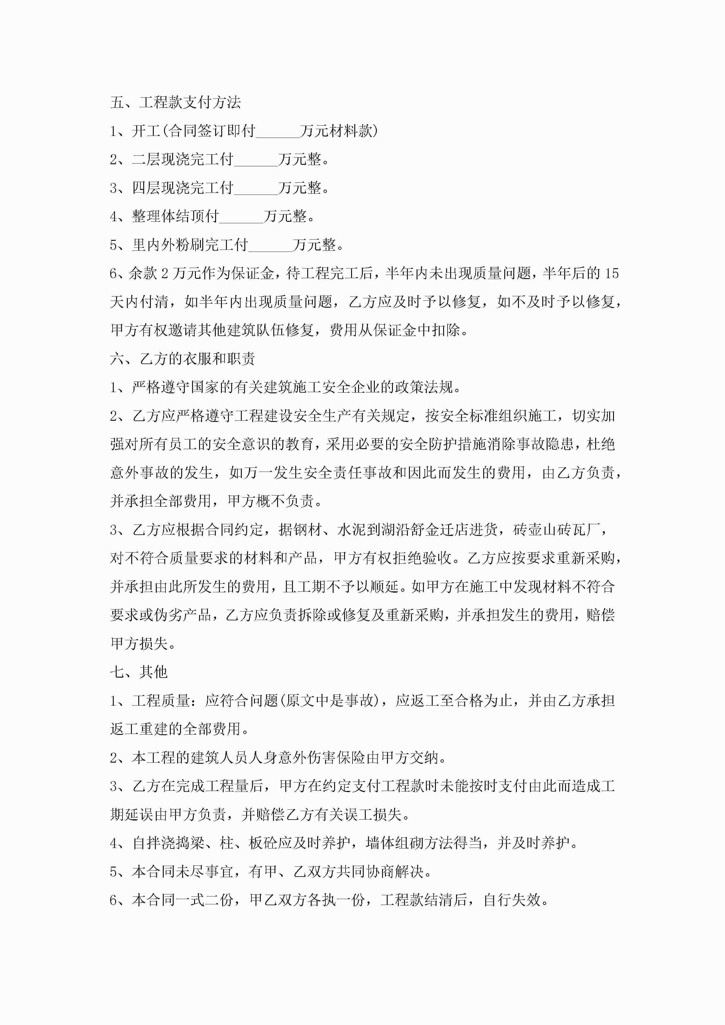 年建筑工程承包优秀合同协议书5篇大全jugei3月23日 01:35发布关注203 年建筑工程承包优秀合同协议书5篇大全此内容为付费资源,请付费后查看¥10.9 单篇文档限时特惠¥15个人会员开通企业会员开通立即下载无需登陆!可直接快捷下载单个模板付费资源© 版权声明THE ENDWord模板# 实用文档# 实用模板# 合同模板# 承包合同 如有问题,可点击最底部“联系我们”联系客服 分享QQ空间微博QQ好友海报分享复制链接收藏