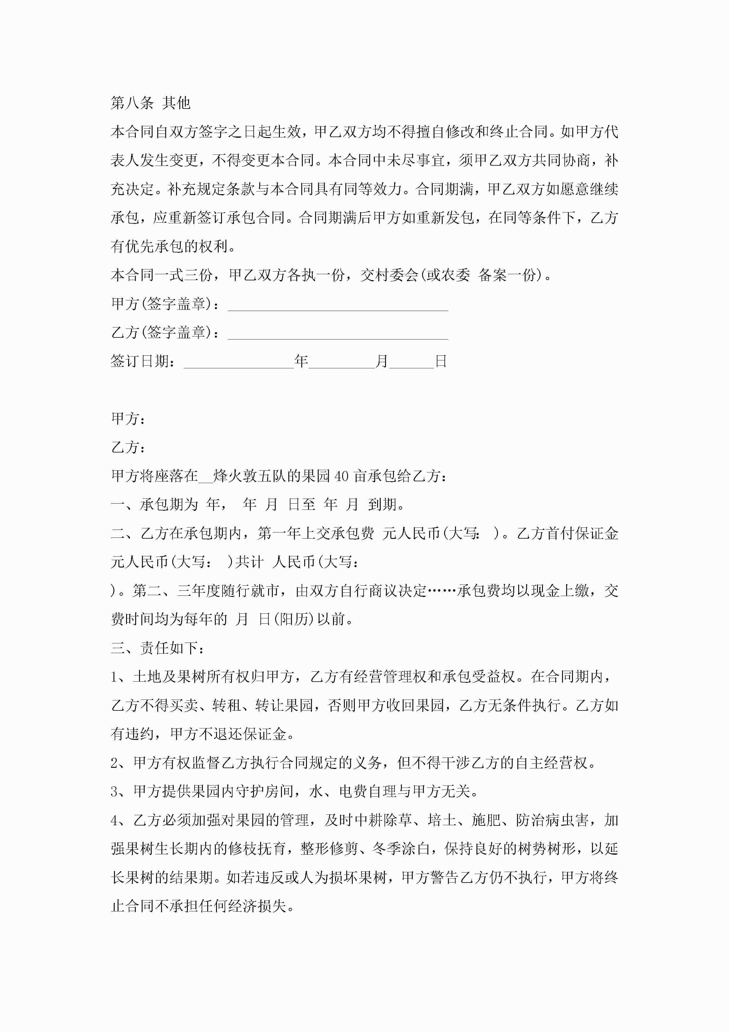 年个人果园承包合同书模板5篇大全jugei3月23日 01:35发布关注206 年个人果园承包合同书模板5篇大全此内容为付费资源,请付费后查看¥10.9 单篇文档限时特惠¥15个人会员开通企业会员开通立即下载无需登陆!可直接快捷下载单个模板付费资源© 版权声明THE ENDWord模板# 实用文档# 实用模板# 合同模板# 承包合同 如有问题,可点击最底部“联系我们”联系客服 分享QQ空间微博QQ好友海报分享复制链接收藏