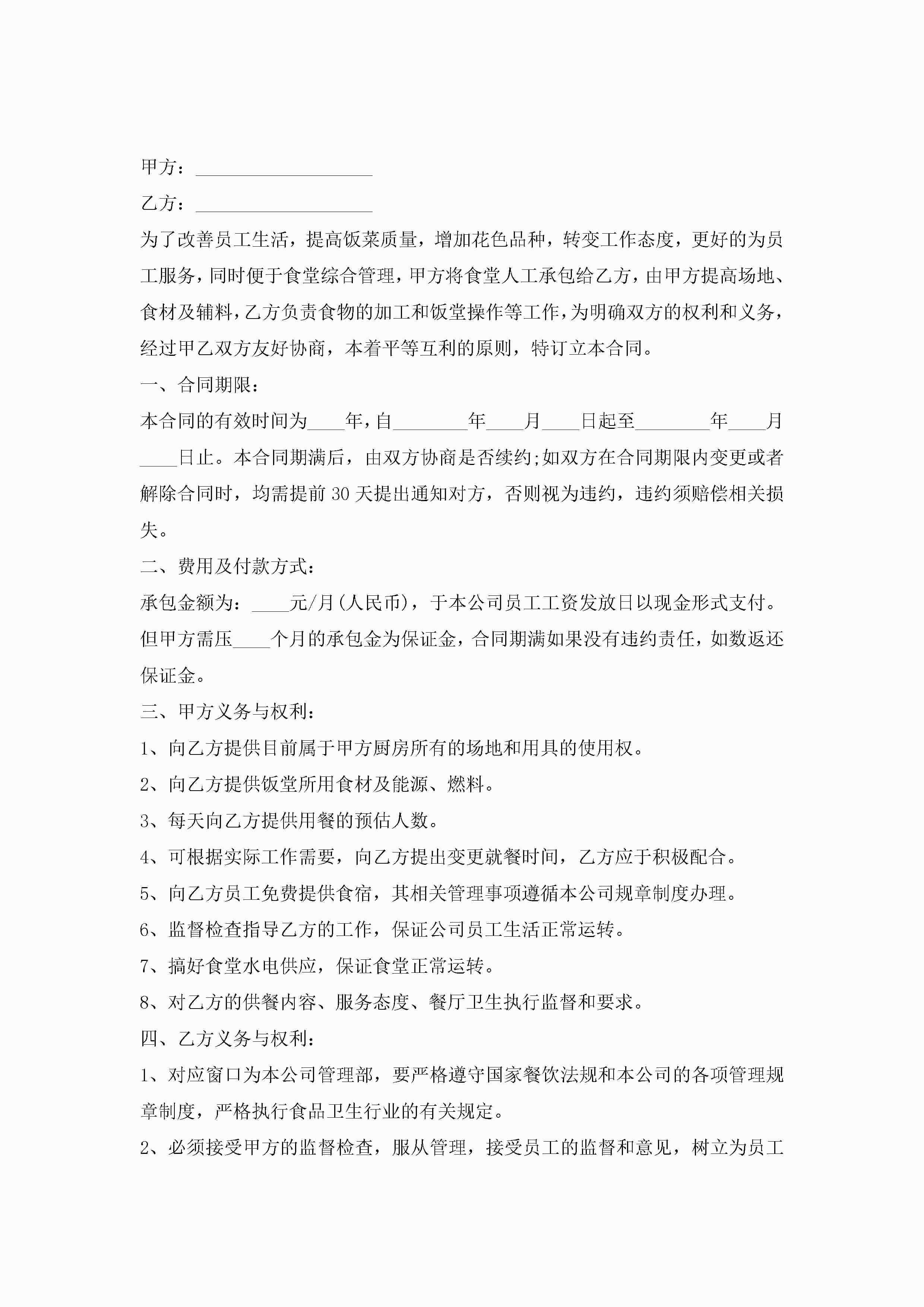 年食堂承包合同模板样本5篇最新jugei3月23日 01:35发布关注277 年食堂承包合同模板样本5篇最新此内容为付费资源,请付费后查看¥10.9 单篇文档限时特惠¥15个人会员开通企业会员开通立即下载无需登陆!可直接快捷下载单个模板付费资源© 版权声明THE ENDWord模板# 实用文档# 实用模板# 合同模板# 承包合同 如有问题,可点击最底部“联系我们”联系客服 分享QQ空间微博QQ好友海报分享复制链接收藏