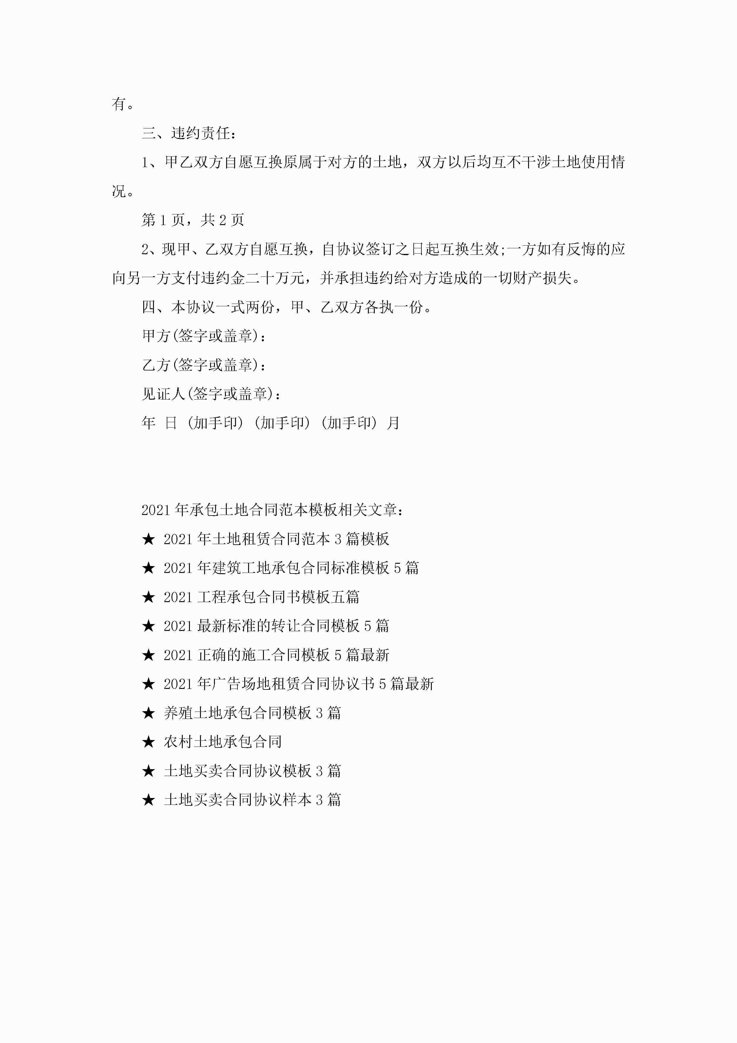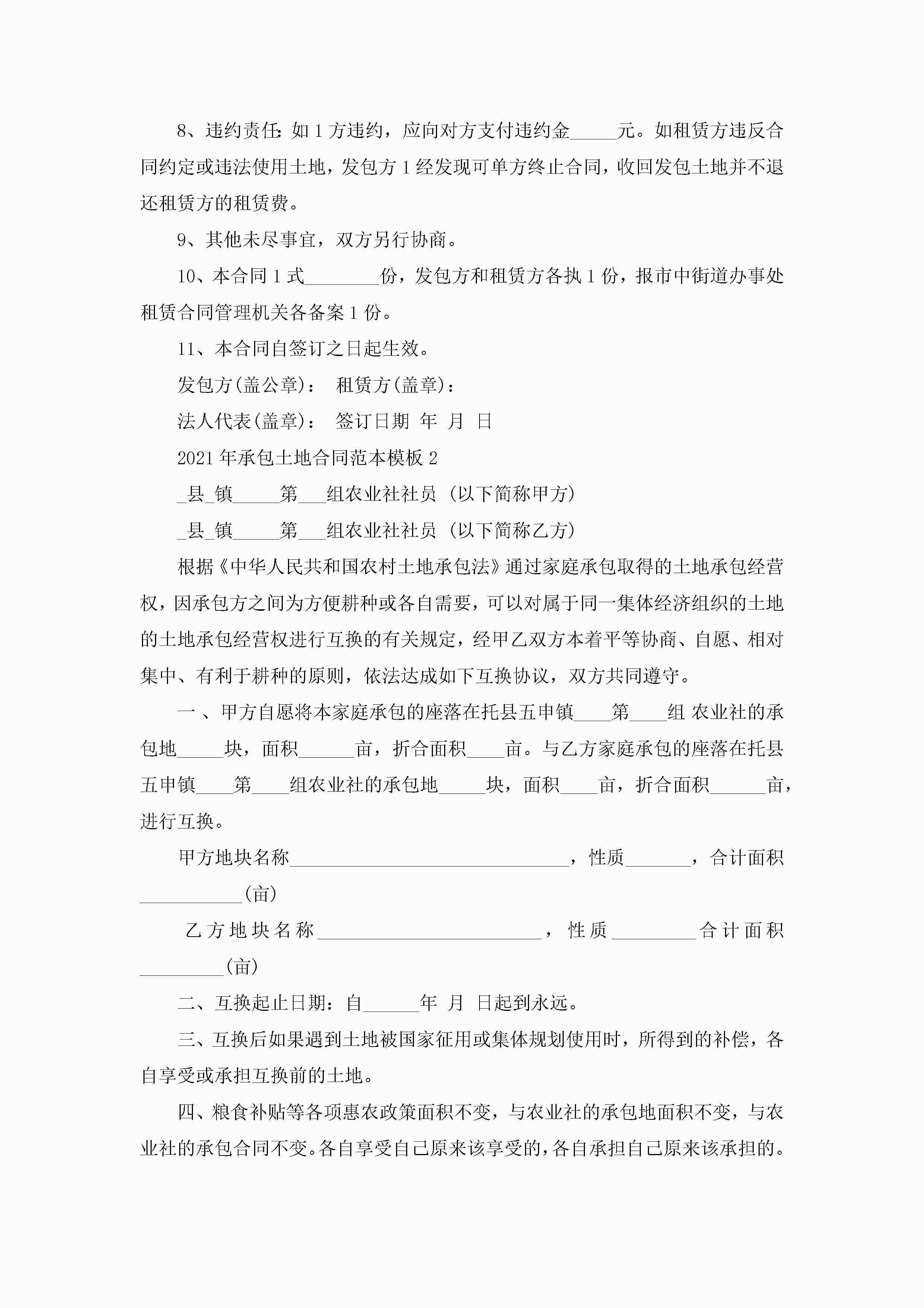 2022年承包土地合同范本模板【3篇】jugei3月23日 01:35发布关注204 2022年承包土地合同范本模板【3篇】此内容为付费资源,请付费后查看¥10.9 单篇文档限时特惠¥15个人会员开通企业会员开通立即下载无需登陆!可直接快捷下载单个模板付费资源© 版权声明THE ENDWord模板# 实用文档# 实用模板# 合同模板# 承包合同 如有问题,可点击最底部“联系我们”联系客服 分享QQ空间微博QQ好友海报分享复制链接收藏