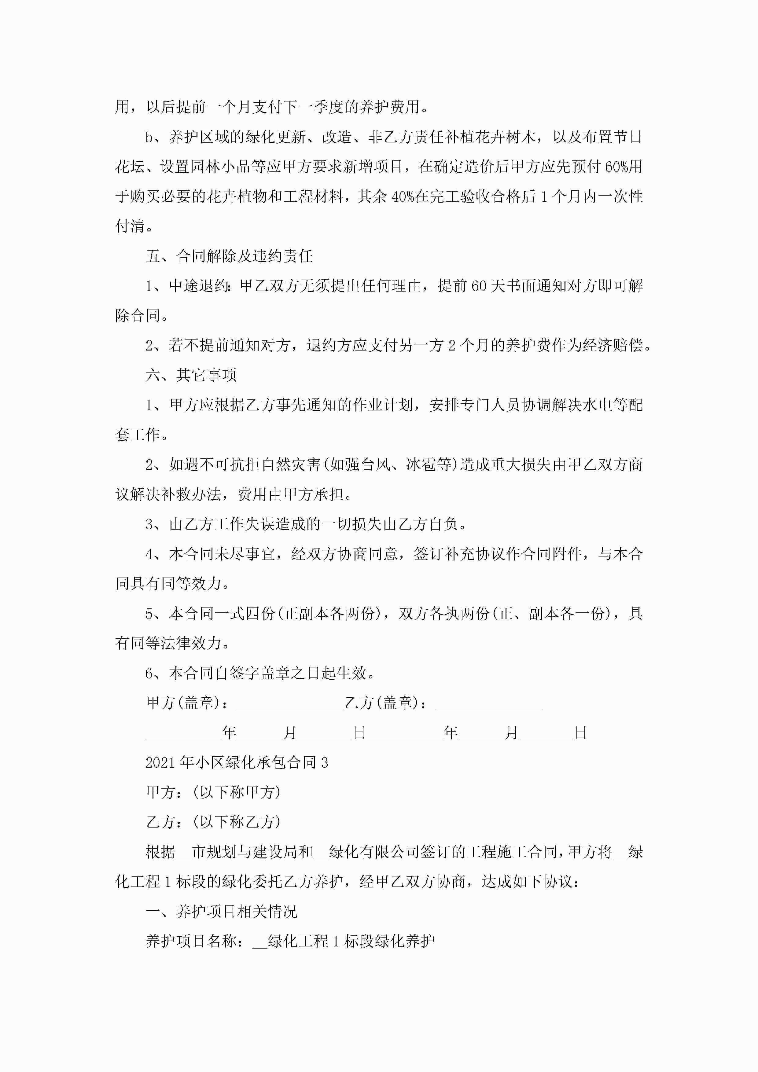 年小区绿化承包合同5篇jugei3月23日 01:35发布关注191 年小区绿化承包合同5篇此内容为付费资源,请付费后查看¥10.9 单篇文档限时特惠¥15个人会员开通企业会员开通立即下载无需登陆!可直接快捷下载单个模板付费资源© 版权声明THE ENDWord模板# 实用文档# 实用模板# 合同模板# 承包合同 如有问题,可点击最底部“联系我们”联系客服 分享QQ空间微博QQ好友海报分享复制链接收藏