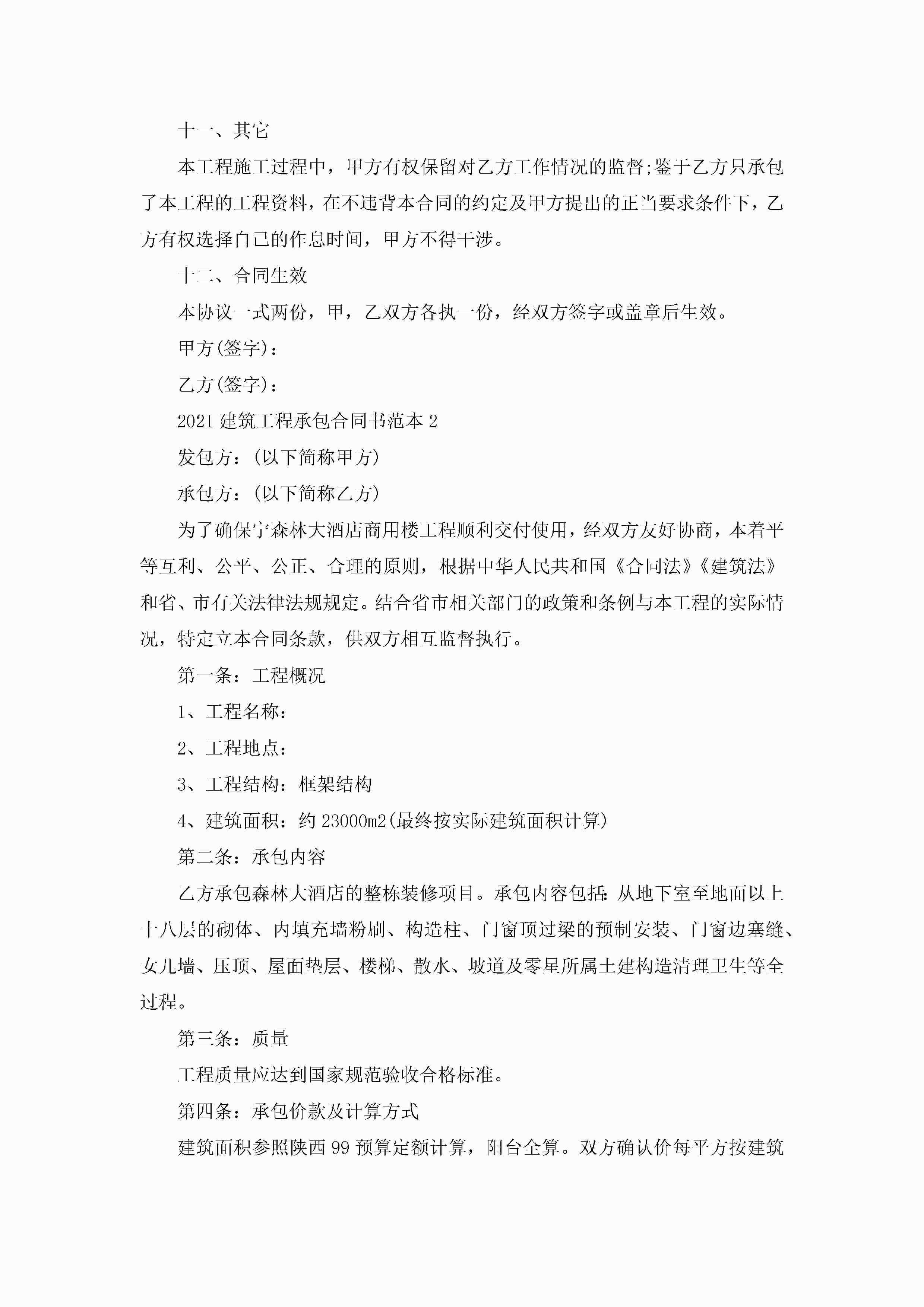 建筑工程承包合同书最新范本5篇jugei3月23日 01:35发布关注237 建筑工程承包合同书最新范本5篇此内容为付费资源,请付费后查看¥10.9 单篇文档限时特惠¥15个人会员开通企业会员开通立即下载无需登陆!可直接快捷下载单个模板付费资源© 版权声明THE ENDWord模板# 实用文档# 实用模板# 合同模板# 承包合同 如有问题,可点击最底部“联系我们”联系客服 分享QQ空间微博QQ好友海报分享复制链接收藏