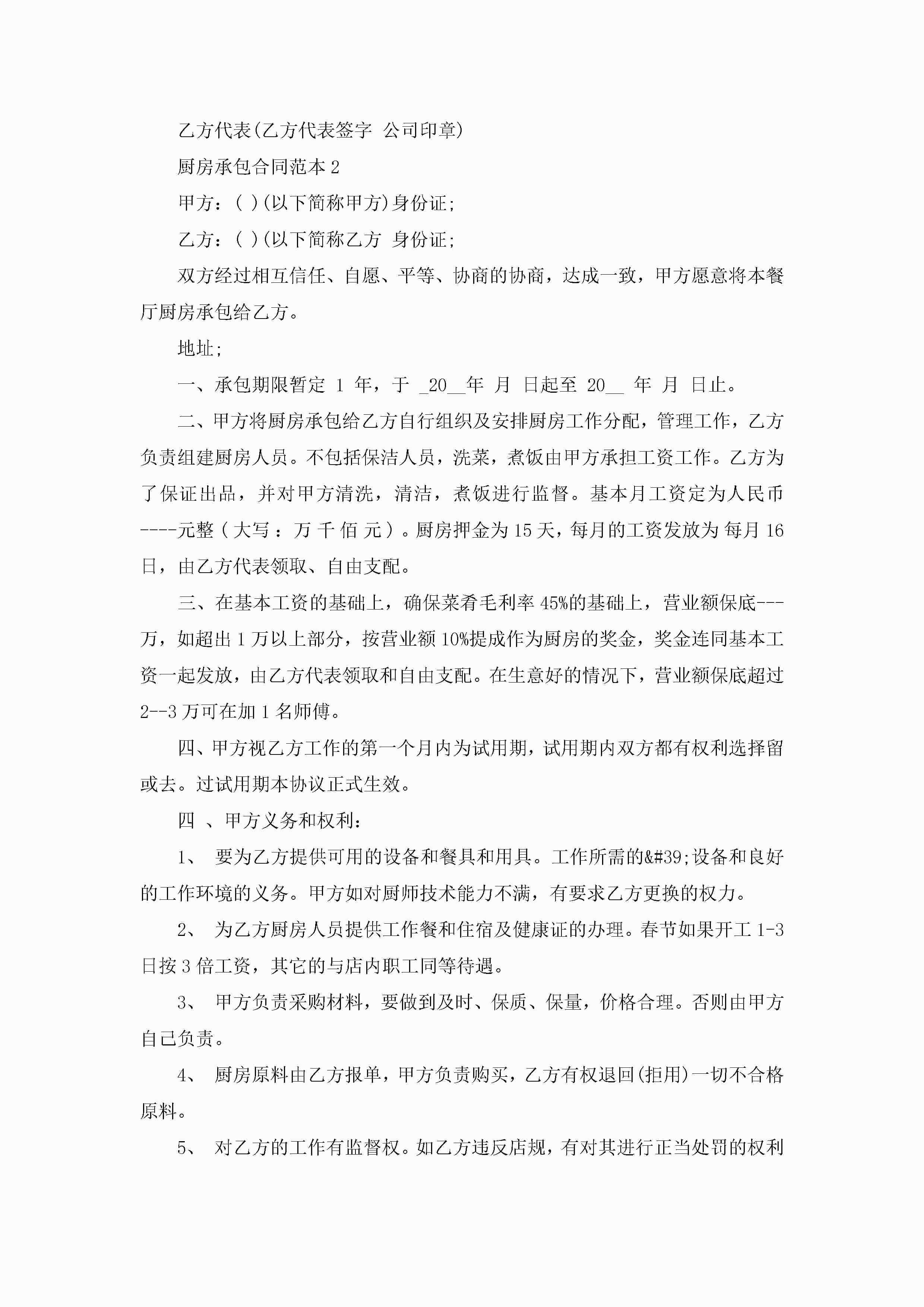 厨房承包合同范本5篇jugei3月23日 01:35发布关注188 厨房承包合同范本5篇此内容为付费资源,请付费后查看¥10.9 单篇文档限时特惠¥15个人会员开通企业会员开通立即下载无需登陆!可直接快捷下载单个模板付费资源© 版权声明THE ENDWord模板# 实用文档# 实用模板# 合同模板# 承包合同 如有问题,可点击最底部“联系我们”联系客服 分享QQ空间微博QQ好友海报分享复制链接收藏