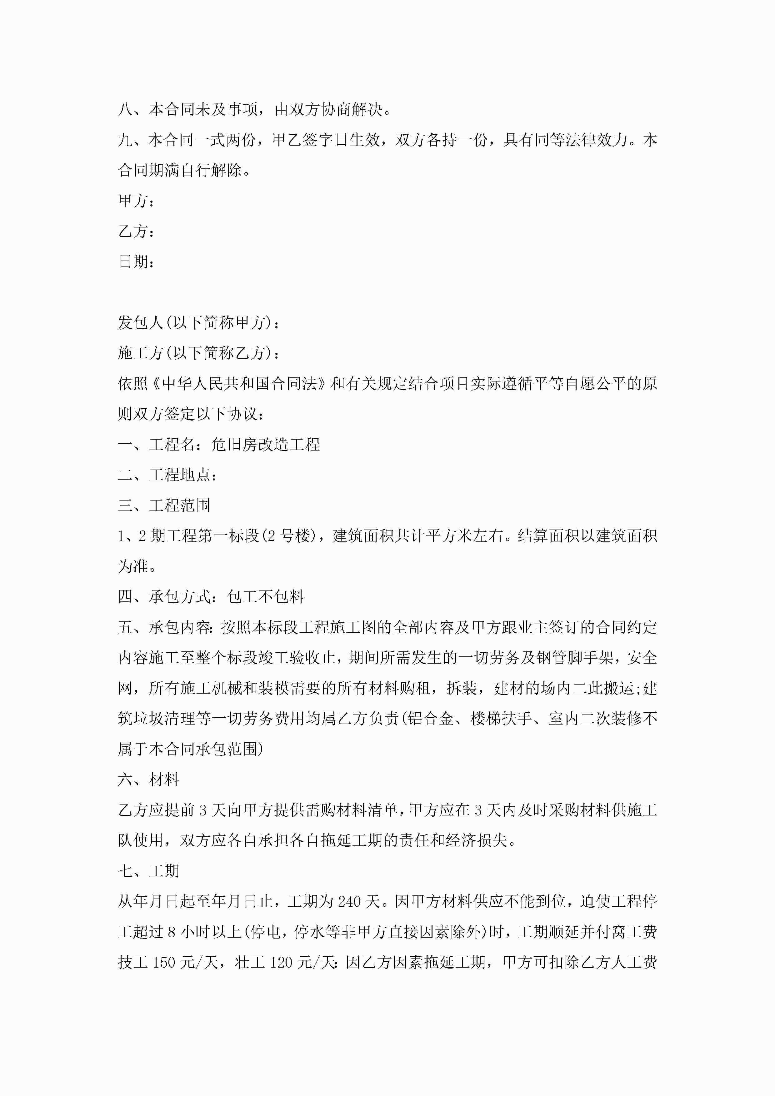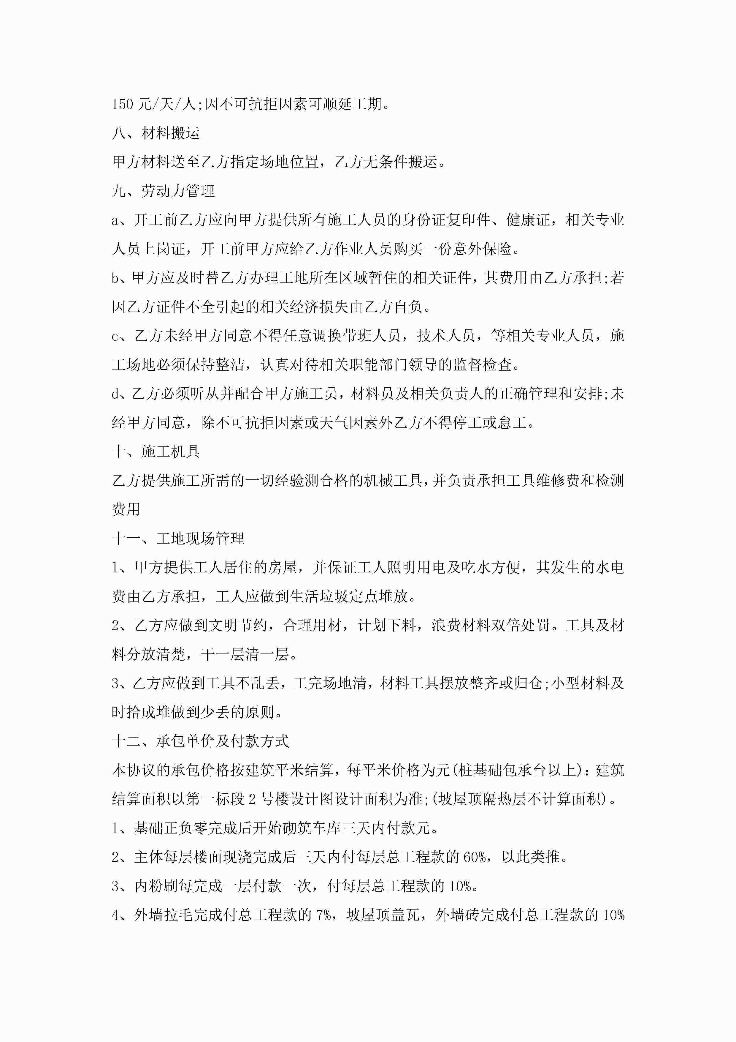 劳务工作承包合同怎么写范文jugei3月23日 01:35发布关注189 劳务工作承包合同怎么写范文此内容为付费资源,请付费后查看¥10.9 单篇文档限时特惠¥15个人会员开通企业会员开通立即下载无需登陆!可直接快捷下载单个模板付费资源© 版权声明THE ENDWord模板# 实用文档# 实用模板# 合同模板# 承包合同 如有问题,可点击最底部“联系我们”联系客服 分享QQ空间微博QQ好友海报分享复制链接收藏