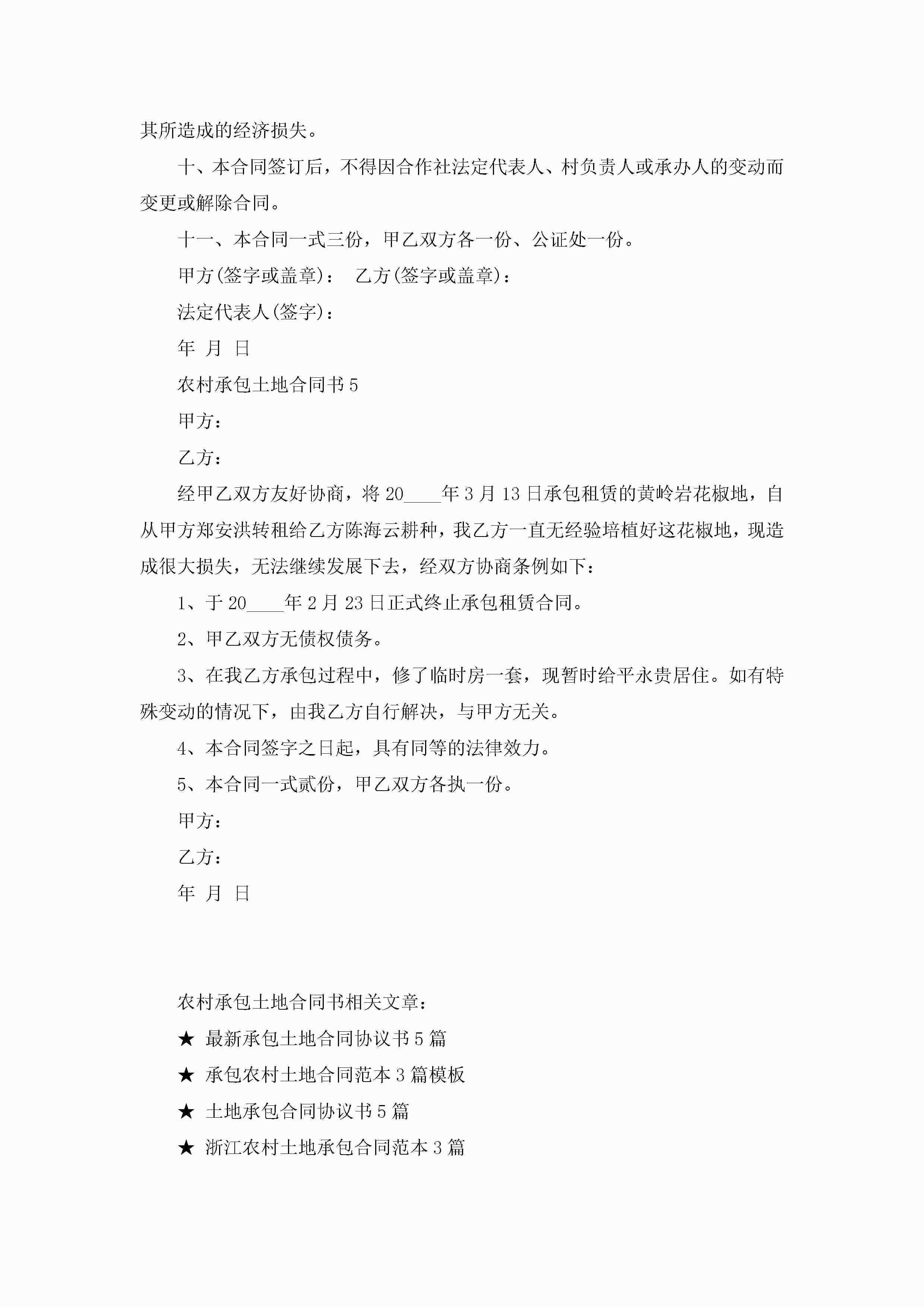 农村承包土地合同书5篇jugei3月23日 01:35发布关注188 农村承包土地合同书5篇此内容为付费资源,请付费后查看¥10.9 单篇文档限时特惠¥15个人会员开通企业会员开通立即下载无需登陆!可直接快捷下载单个模板付费资源© 版权声明THE ENDWord模板# 实用文档# 实用模板# 合同模板# 承包合同 如有问题,可点击最底部“联系我们”联系客服 分享QQ空间微博QQ好友海报分享复制链接收藏
