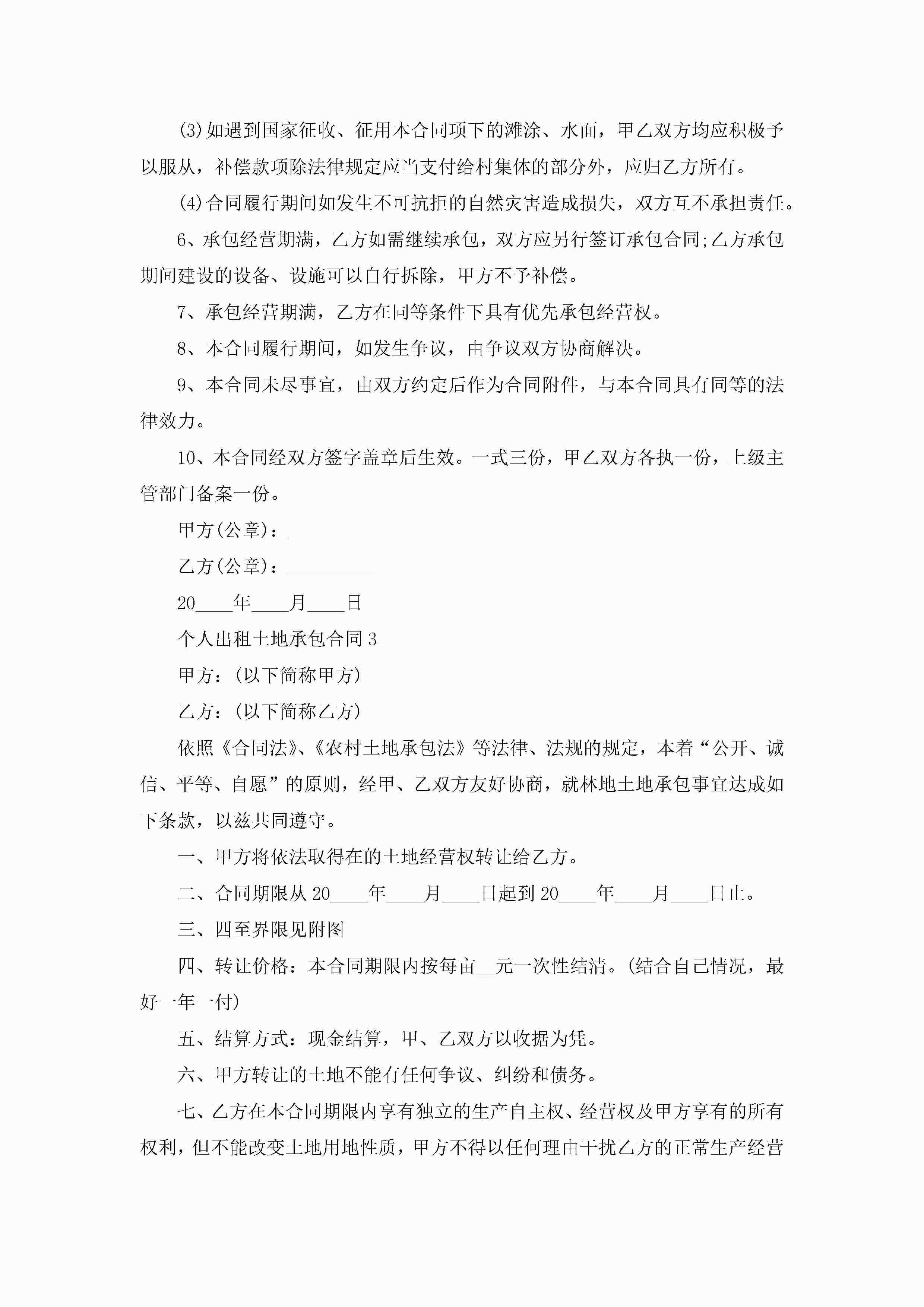 个人出租土地承包合同5篇jugei3月23日 01:35发布关注186 个人出租土地承包合同5篇此内容为付费资源,请付费后查看¥10.9 单篇文档限时特惠¥15个人会员开通企业会员开通立即下载无需登陆!可直接快捷下载单个模板付费资源© 版权声明THE ENDWord模板# 实用文档# 实用模板# 合同模板# 承包合同 如有问题,可点击最底部“联系我们”联系客服 分享QQ空间微博QQ好友海报分享复制链接收藏
