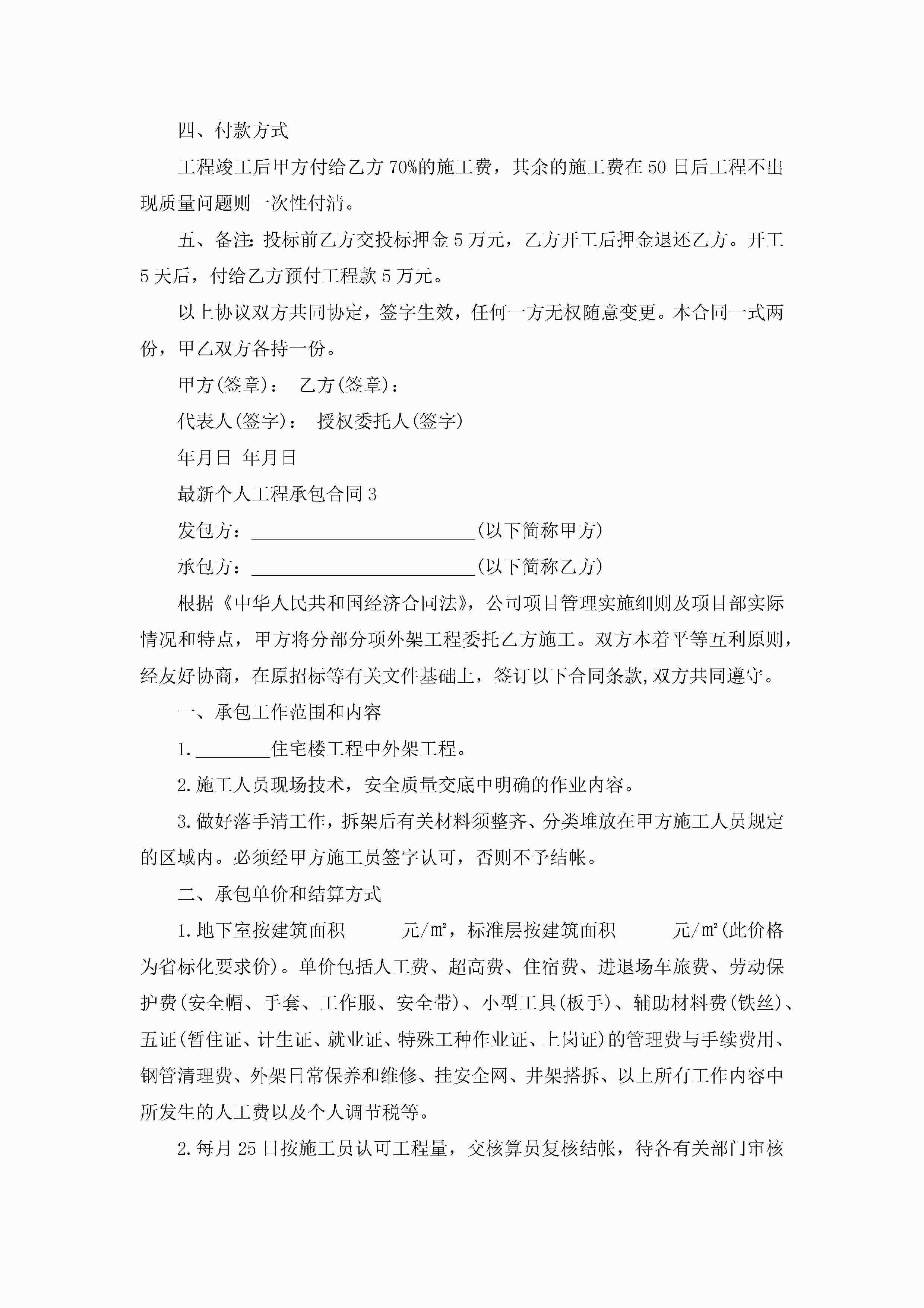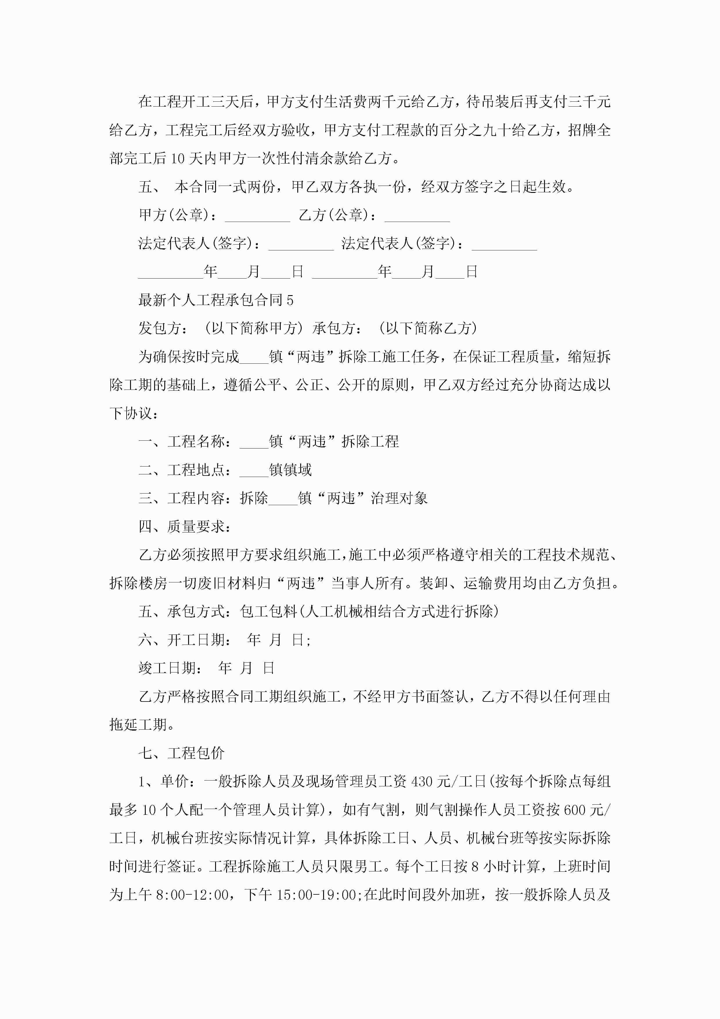 最新个人工程承包合同5篇jugei3月23日 01:35发布关注262 最新个人工程承包合同5篇此内容为付费资源,请付费后查看¥10.9 单篇文档限时特惠¥15个人会员开通企业会员开通立即下载无需登陆!可直接快捷下载单个模板付费资源© 版权声明THE ENDWord模板# 实用文档# 实用模板# 合同模板# 承包合同 如有问题,可点击最底部“联系我们”联系客服 分享QQ空间微博QQ好友海报分享复制链接收藏