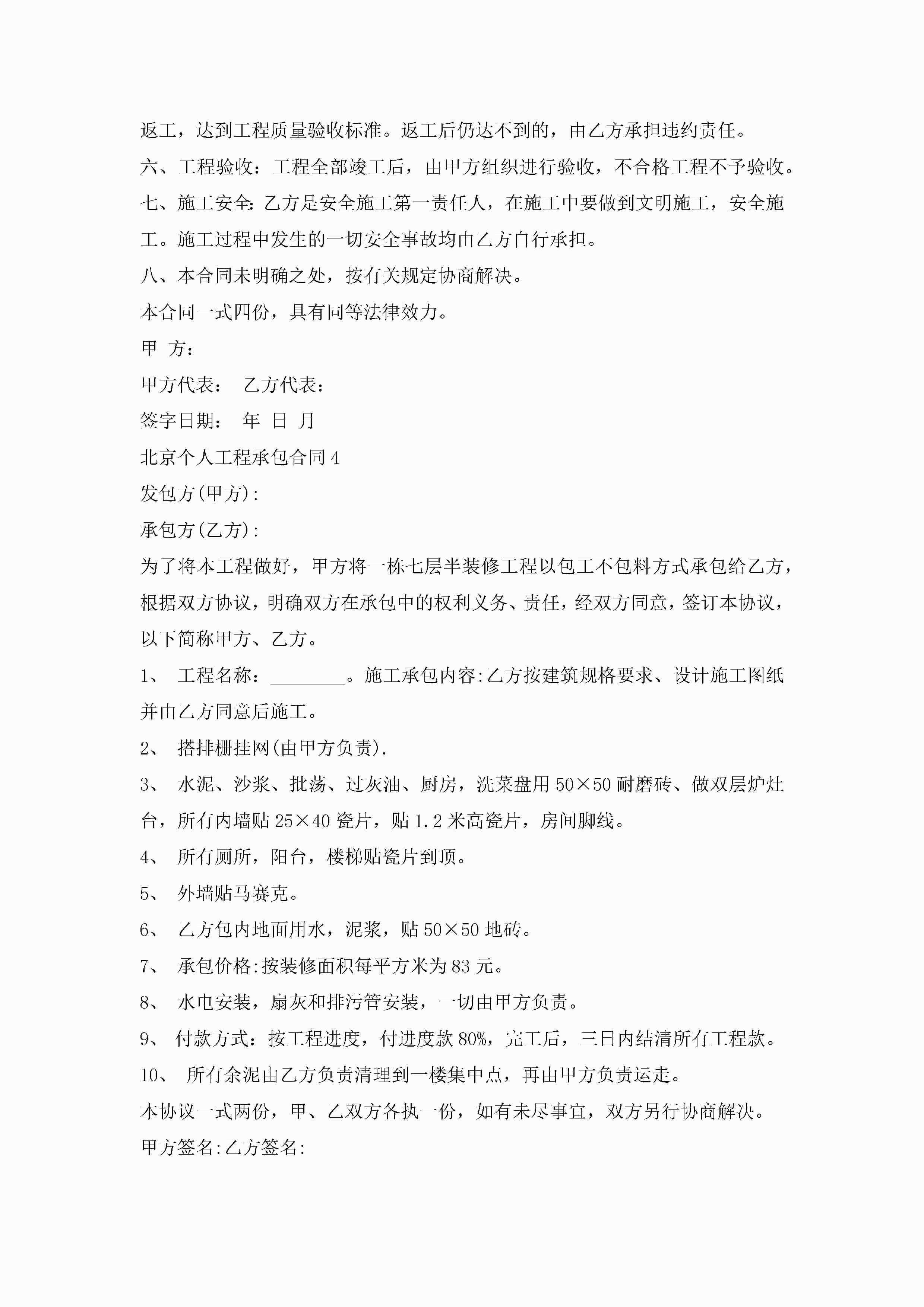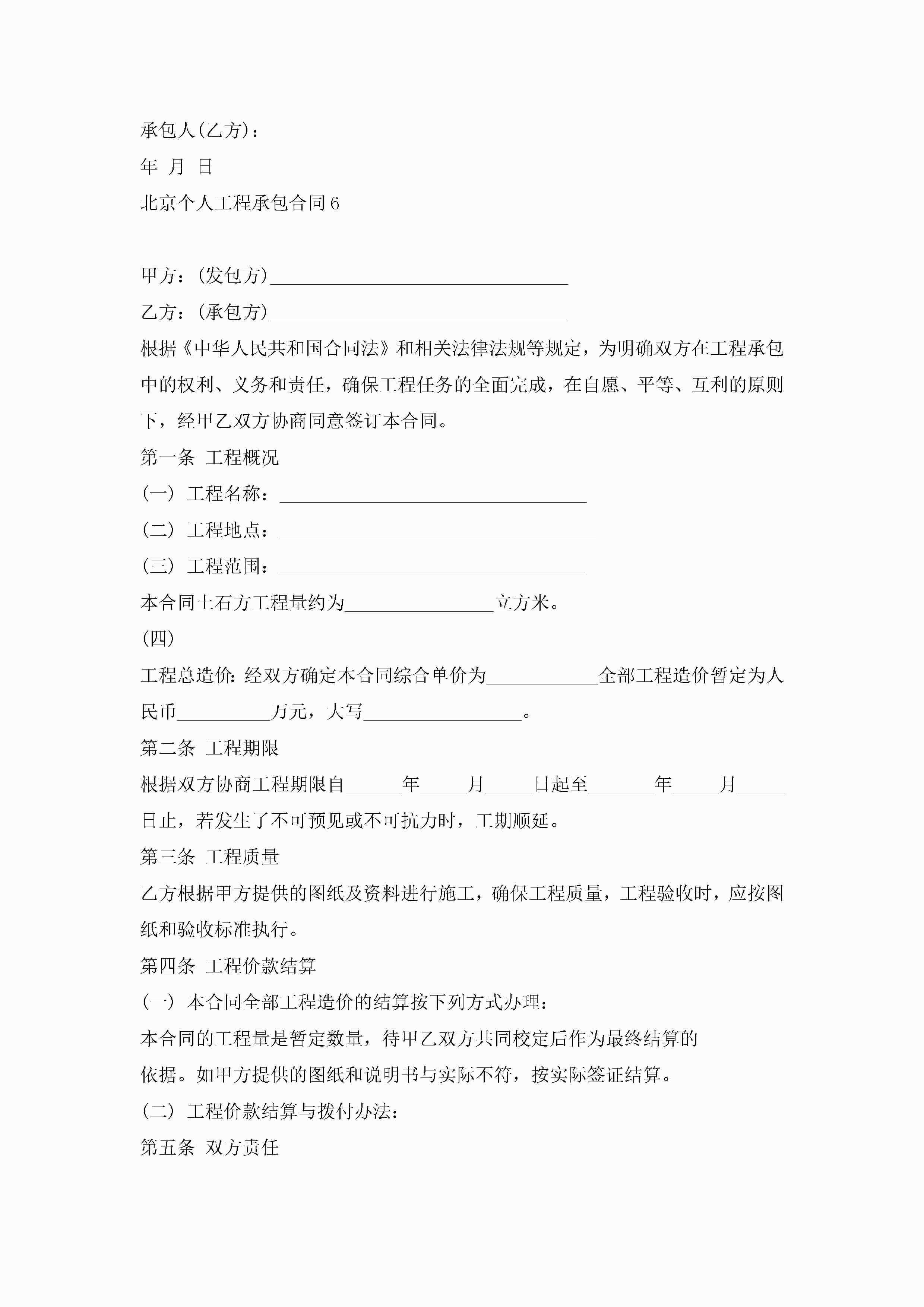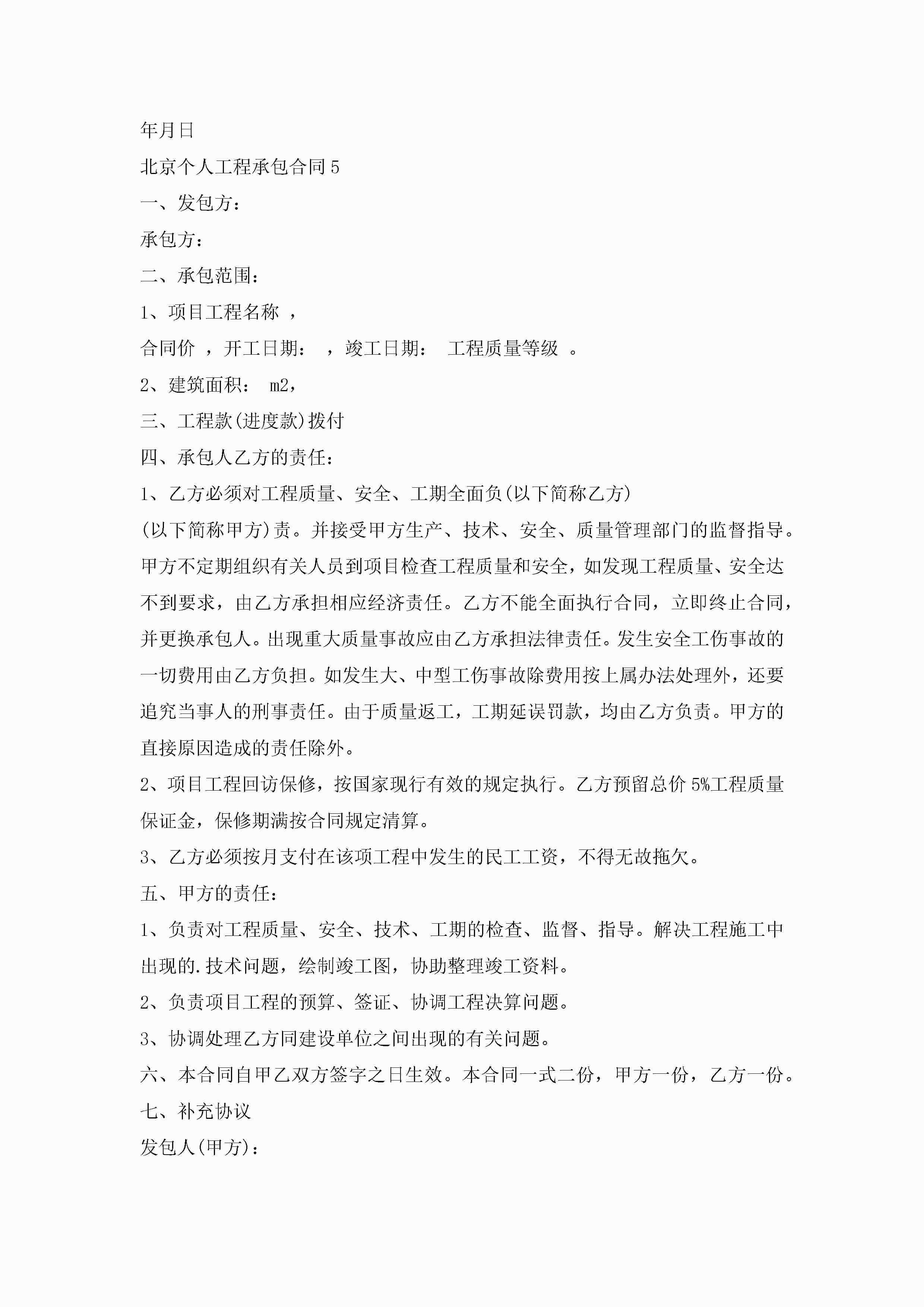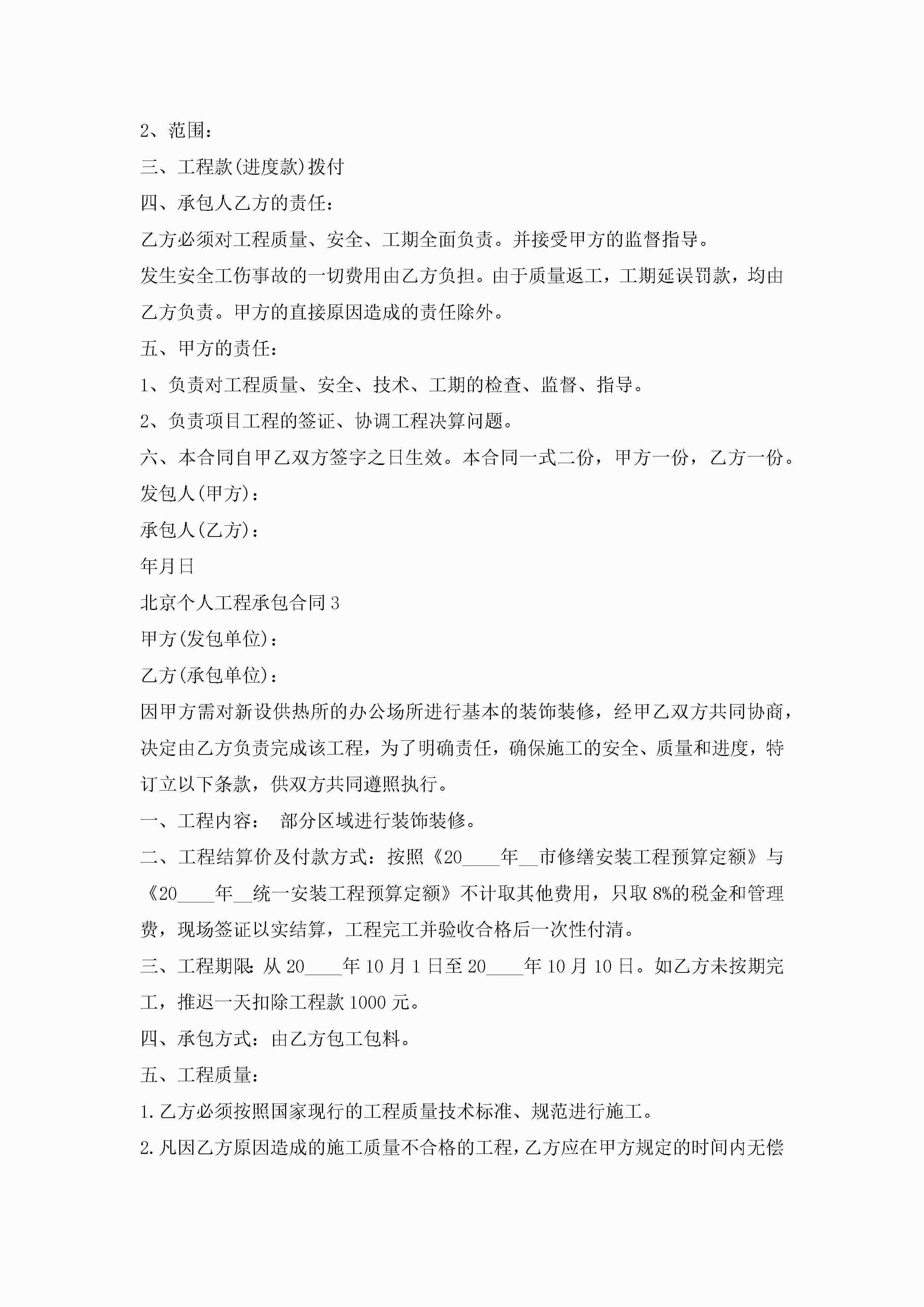 北京个人工程承包合同6篇jugei3月23日 01:35发布关注274 北京个人工程承包合同6篇此内容为付费资源,请付费后查看¥10.9 单篇文档限时特惠¥15个人会员开通企业会员开通立即下载无需登陆!可直接快捷下载单个模板付费资源© 版权声明THE ENDWord模板# 实用文档# 实用模板# 合同模板# 承包合同 如有问题,可点击最底部“联系我们”联系客服 分享QQ空间微博QQ好友海报分享复制链接收藏
