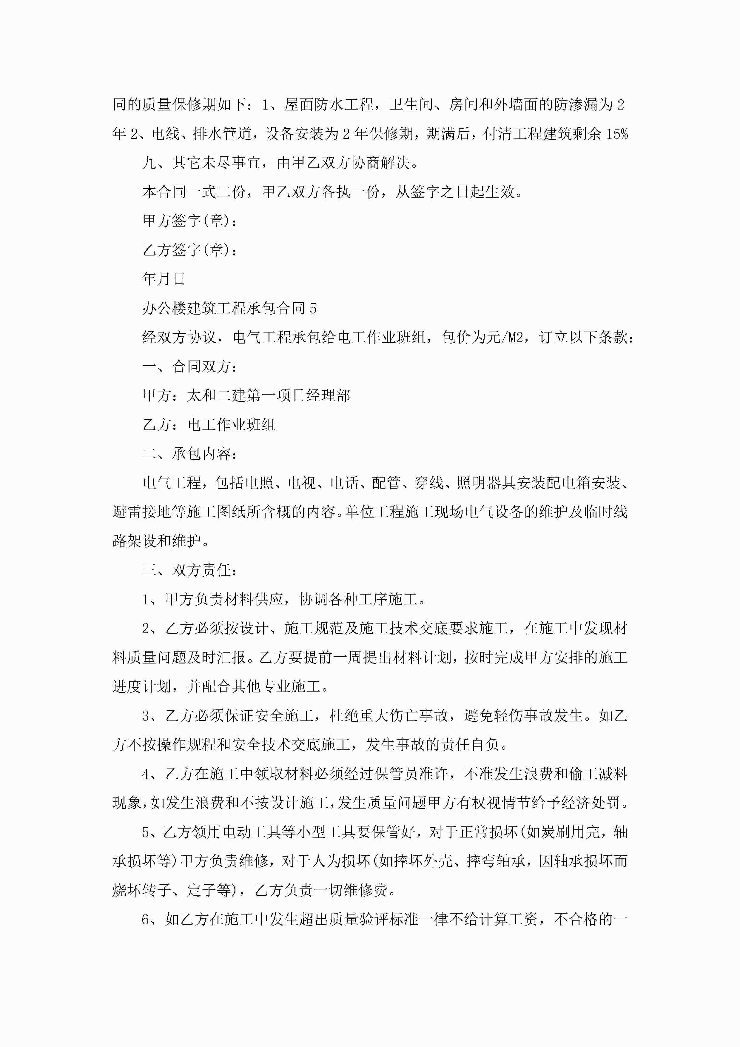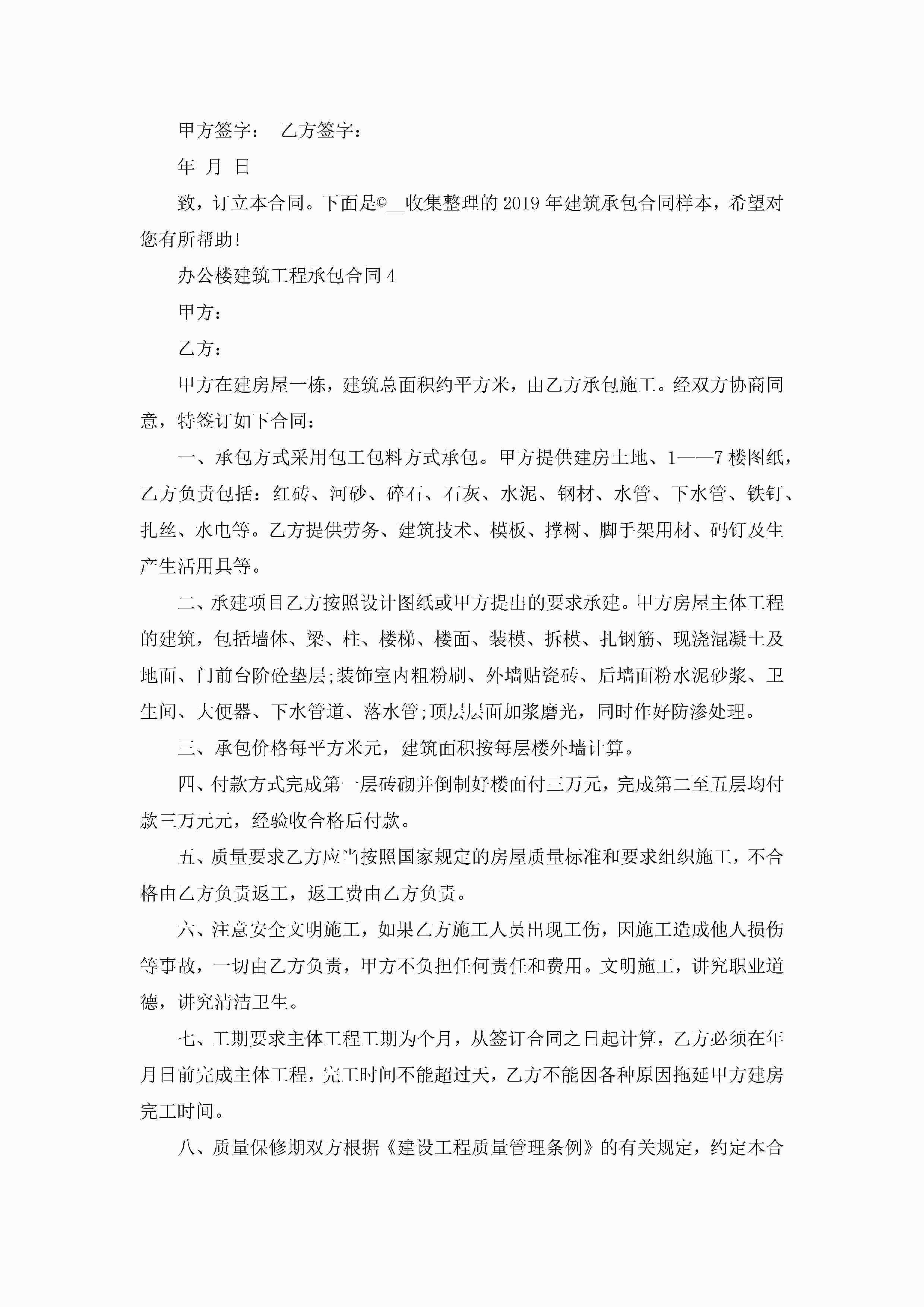 关于办公楼建筑工程承包合同5篇jugei3月23日 01:35发布关注220 关于办公楼建筑工程承包合同5篇此内容为付费资源,请付费后查看¥10.9 单篇文档限时特惠¥15个人会员开通企业会员开通立即下载无需登陆!可直接快捷下载单个模板付费资源© 版权声明THE ENDWord模板# 实用文档# 实用模板# 合同模板# 承包合同 如有问题,可点击最底部“联系我们”联系客服 分享QQ空间微博QQ好友海报分享复制链接收藏